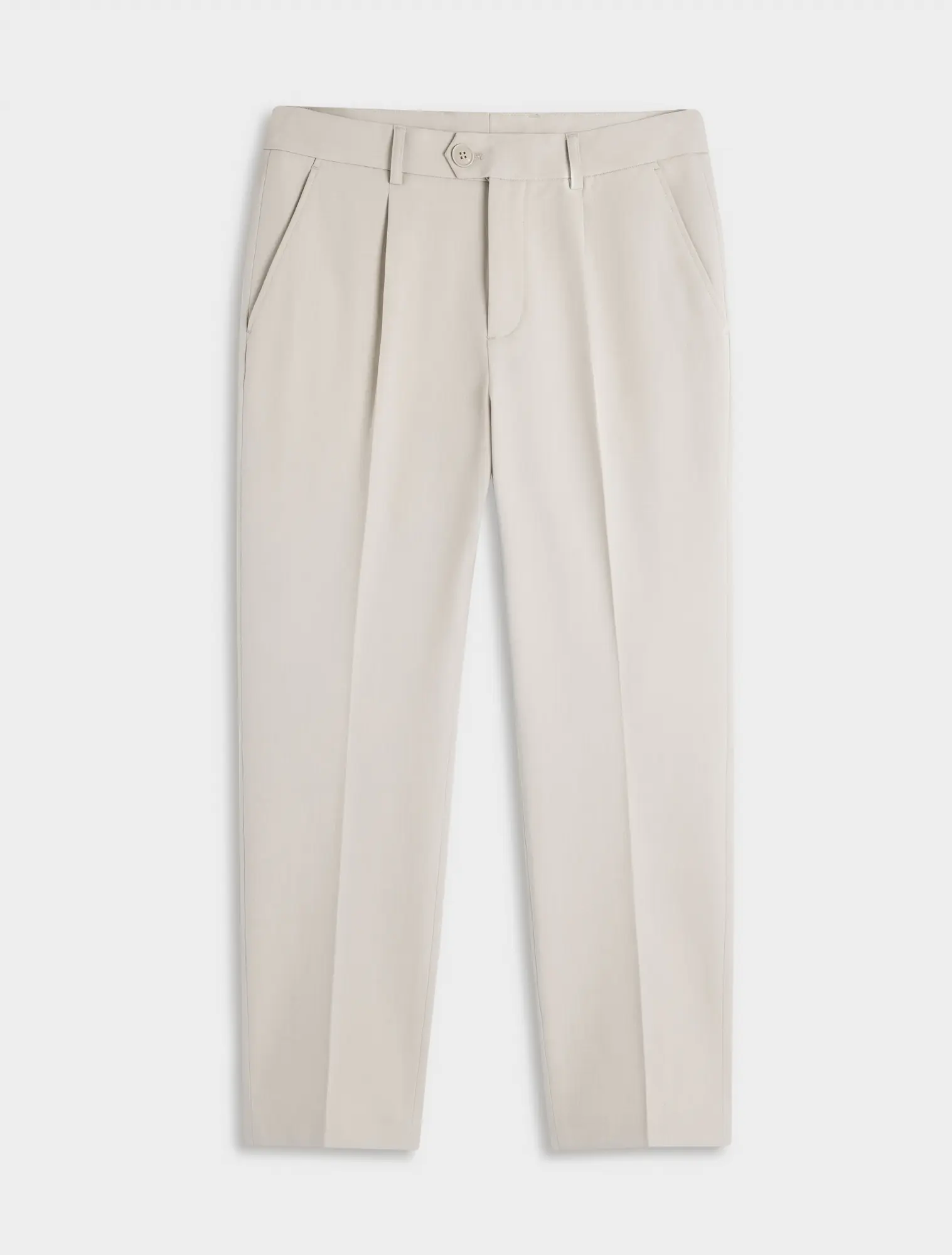 Phom quần carot, ống ngắn trên mắt cá chân thích hợp để các chàng kết hợp cùng sneaker hoặc giày cao cổ.
