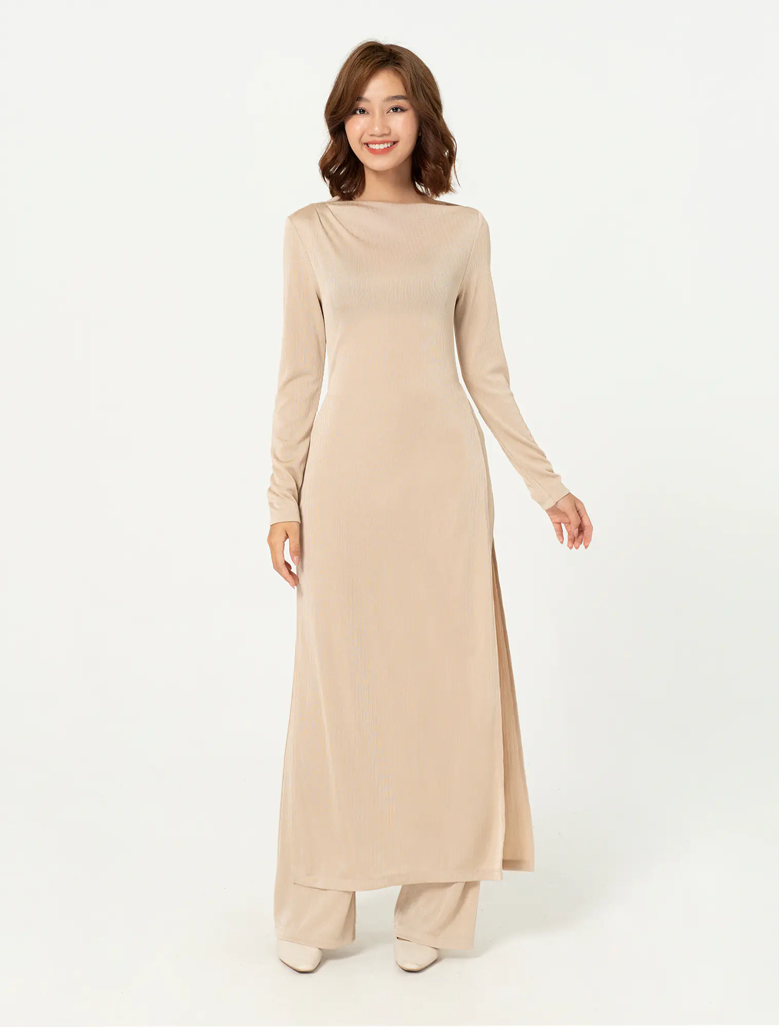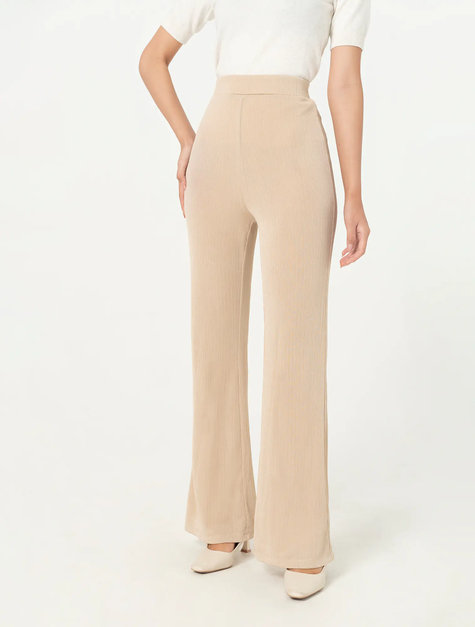 Quần dài cạp chun, dáng flare.