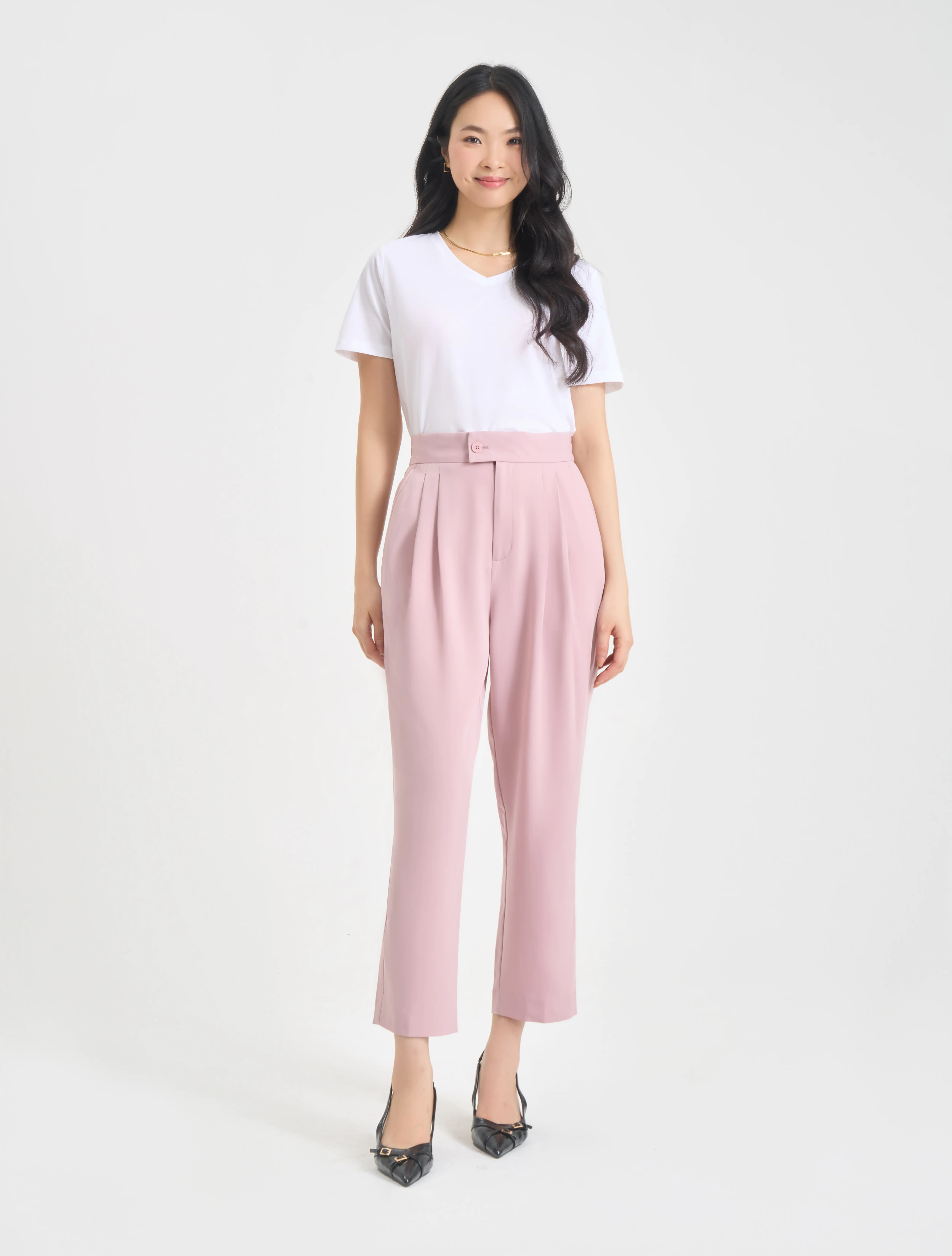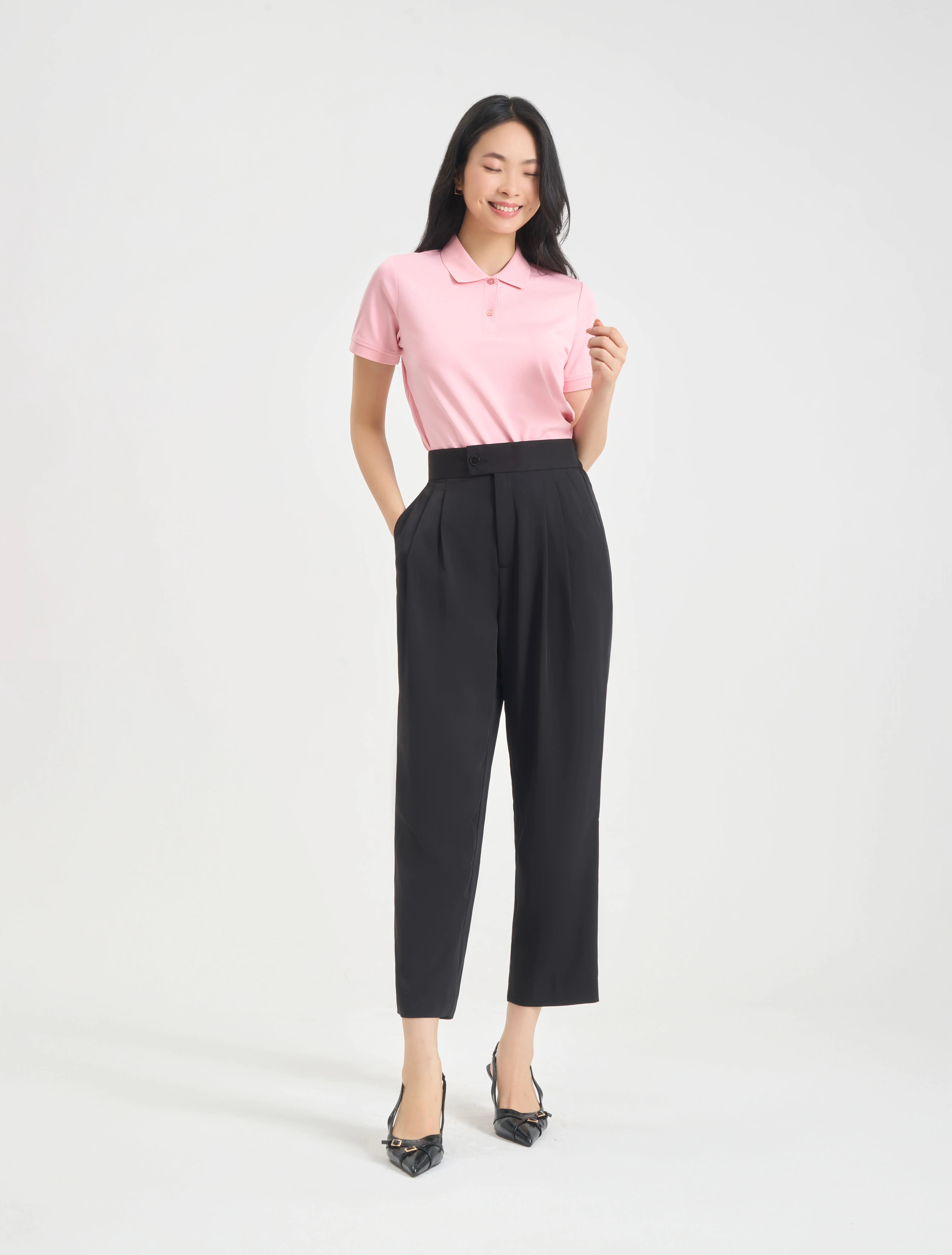 Quần dài nữ dáng chinos có chun eo, nguyên liệu poly pha, với công nghệ nano tạo cảm giác nhẹ và mát. Thiết kế với độ rộng vừa phải, phù hợp môi trường lịch sự, văn phòng, công sở.