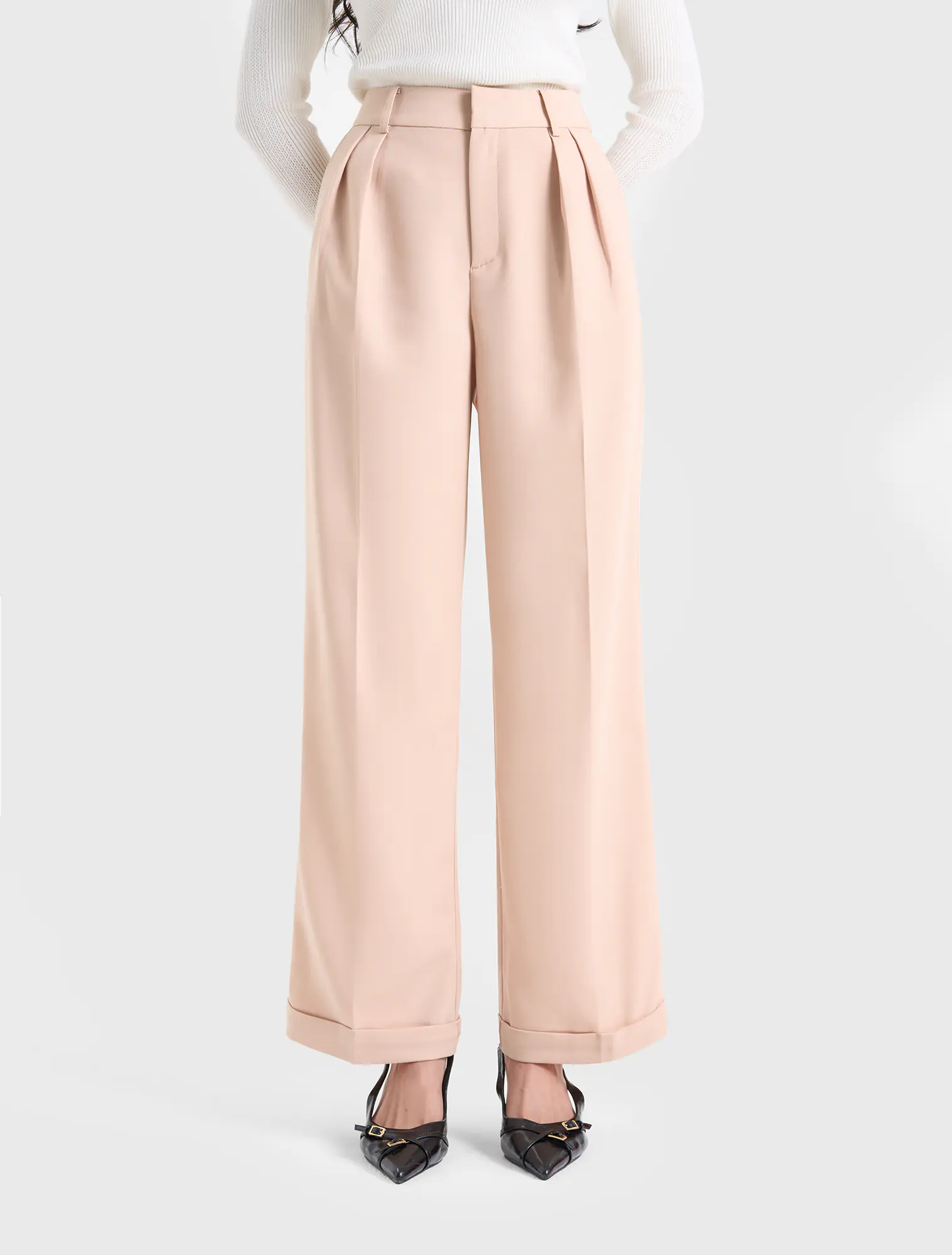 Quần dài nữ dáng suông rộng vừa, gấu lơ vê. Chất liệu mềm mại, đứng dáng. Thiết kế với độ rộng vừa phải, phù hợp môi trường lịch sự, văn phòng, công sở.