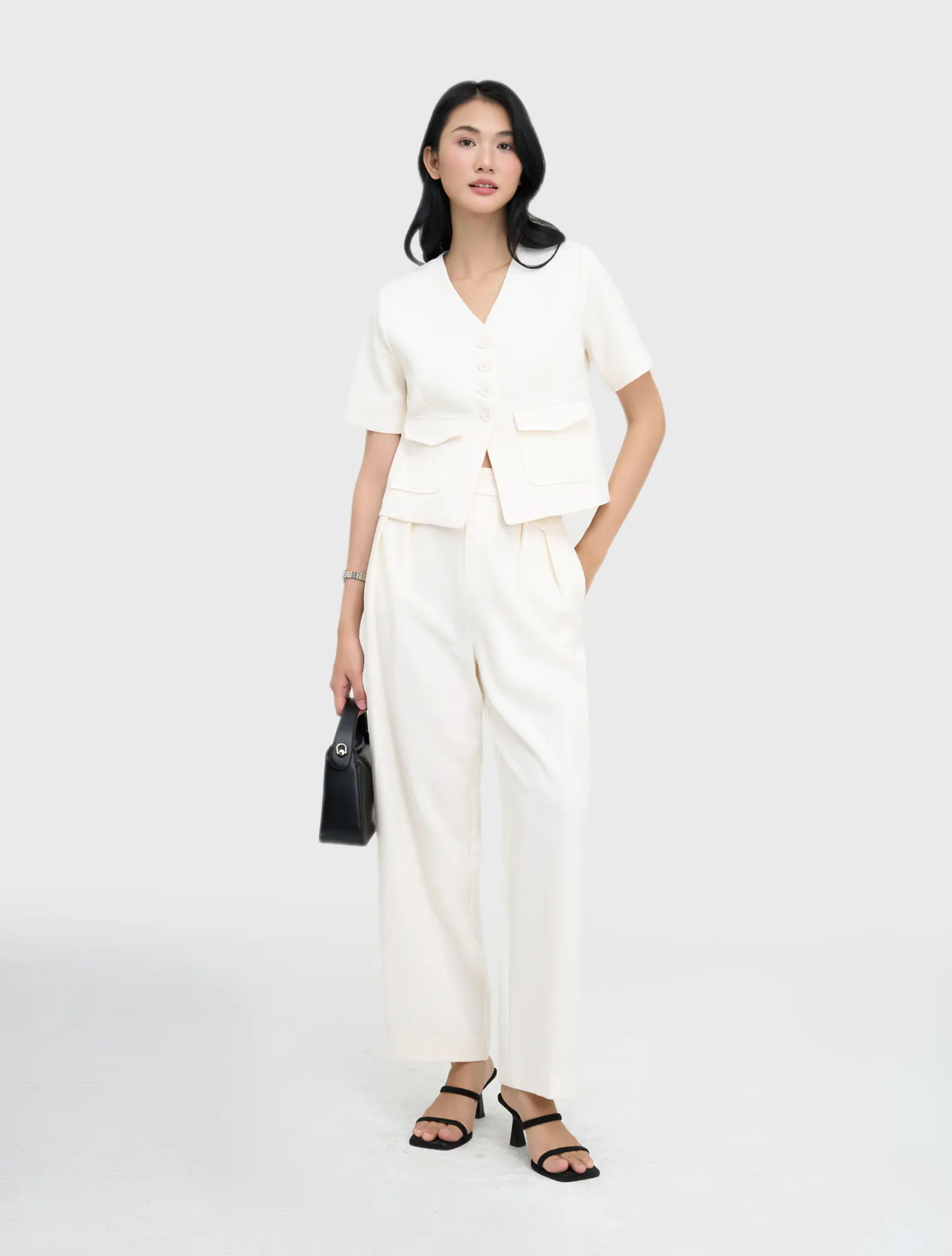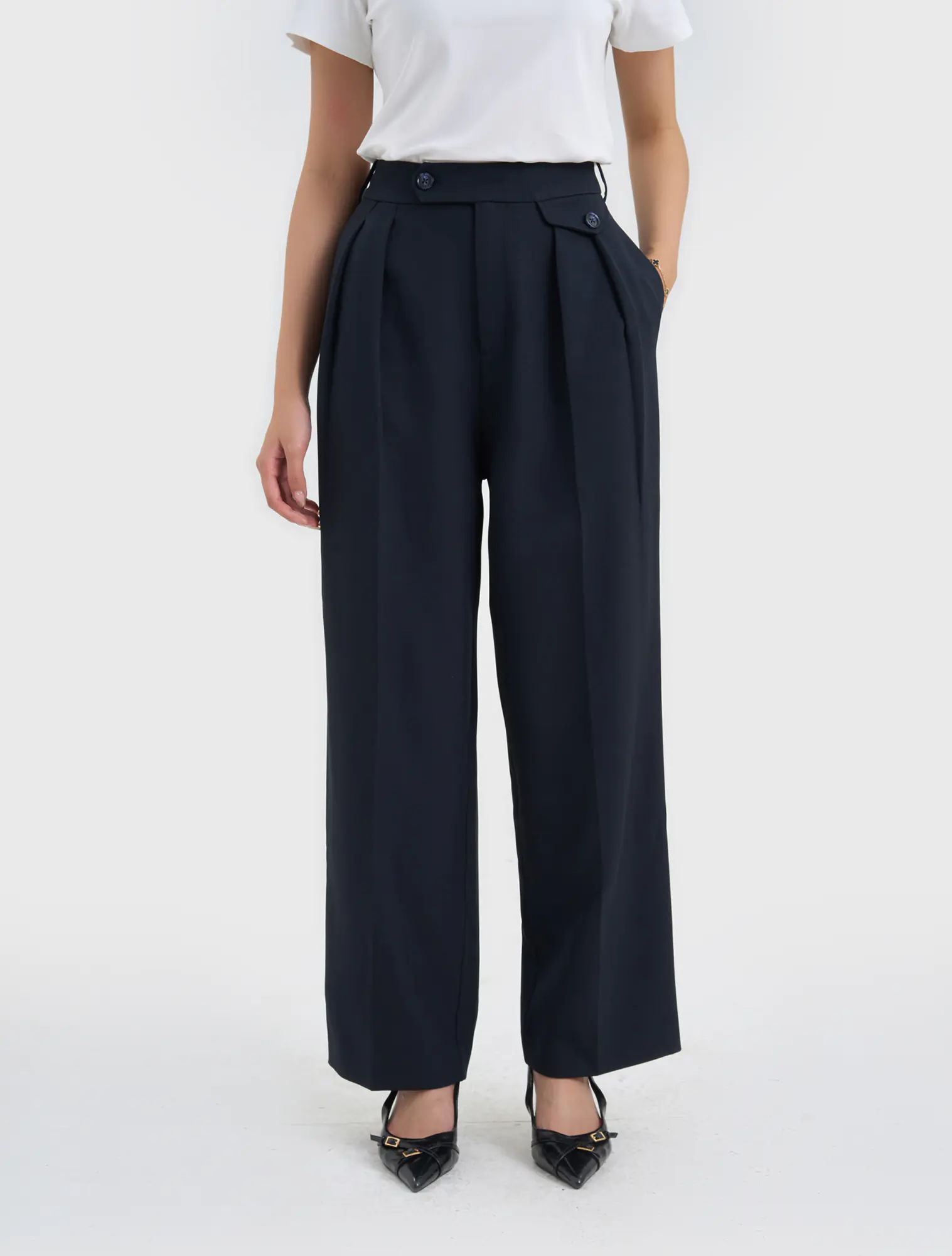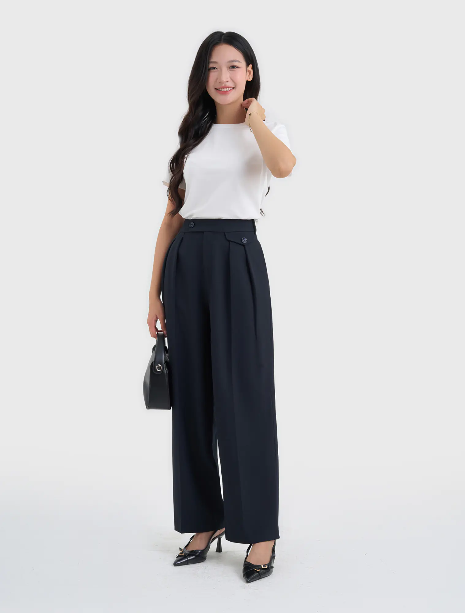 Quần dài nữ công sở, dáng suông vừa. Chất liệu poly pha mềm mại, đứng phom, phù hợp môi trường văn phòng, công sở.