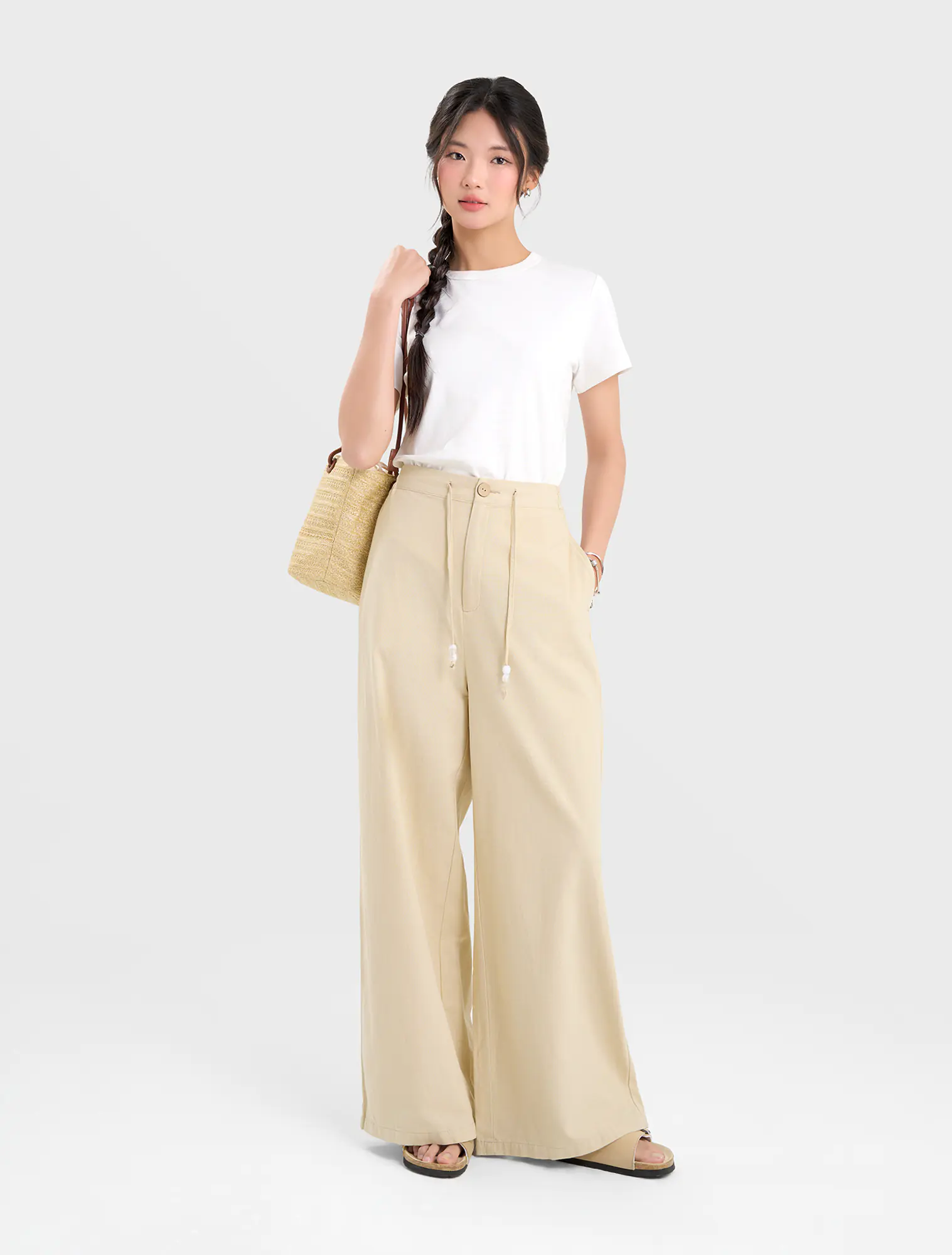 Quần dài nữ dáng suông, có chun. Chất liệu mềm mại, mịn mát. Thiết kế với độ rộng vừa phải, phù hợp đi chơi, dạo phố.