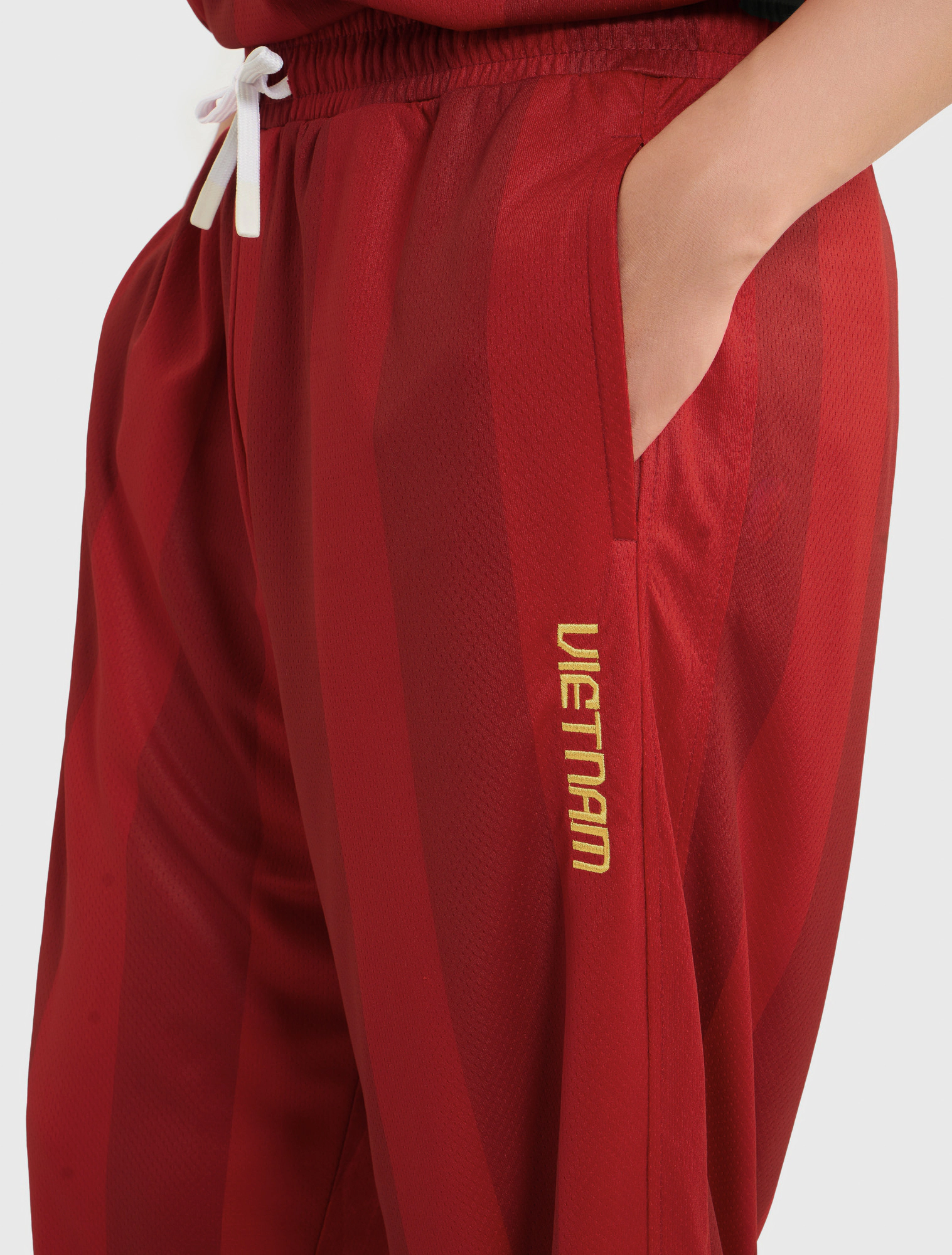 Quần dài người lớn BST “Vietnam on the Pitch” dáng relax, thiết kế thoải mái, dễ mặc, phù hợp cho hoạt động thường ngày hoặc thể thao nhẹ. Chất liệu 100% polyester mềm nhẹ, thoáng mát, nhanh khô và giữ form tốt.