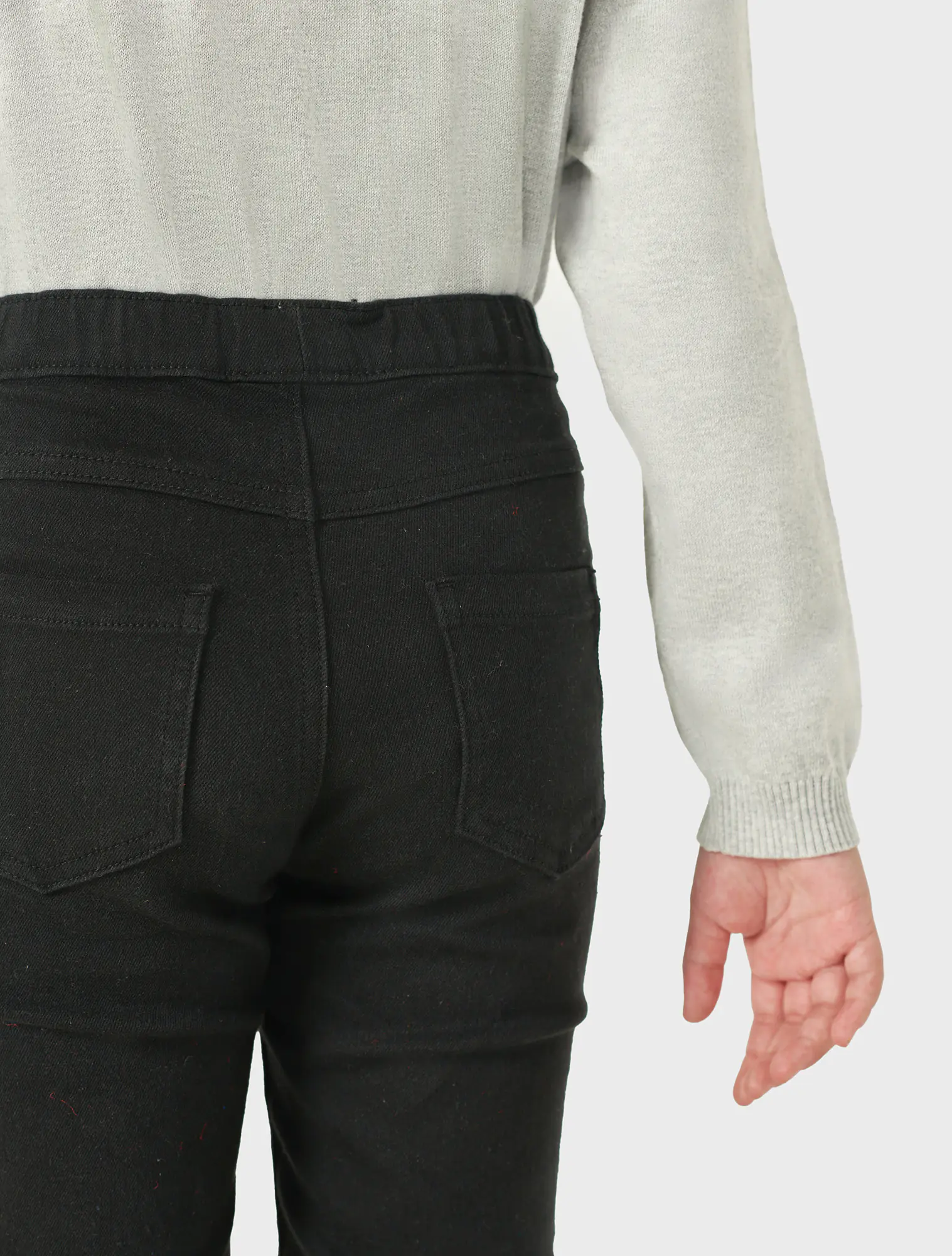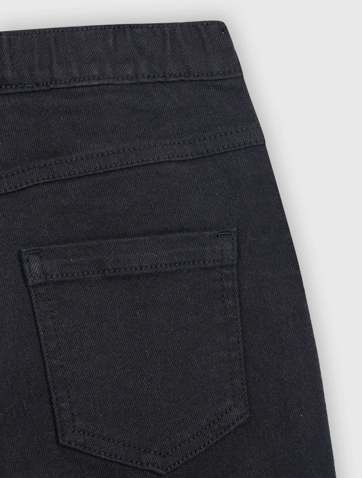 Quần jeans chất liệu cotton pha, cạp chun, moi giả, túi giả, phom ôm.