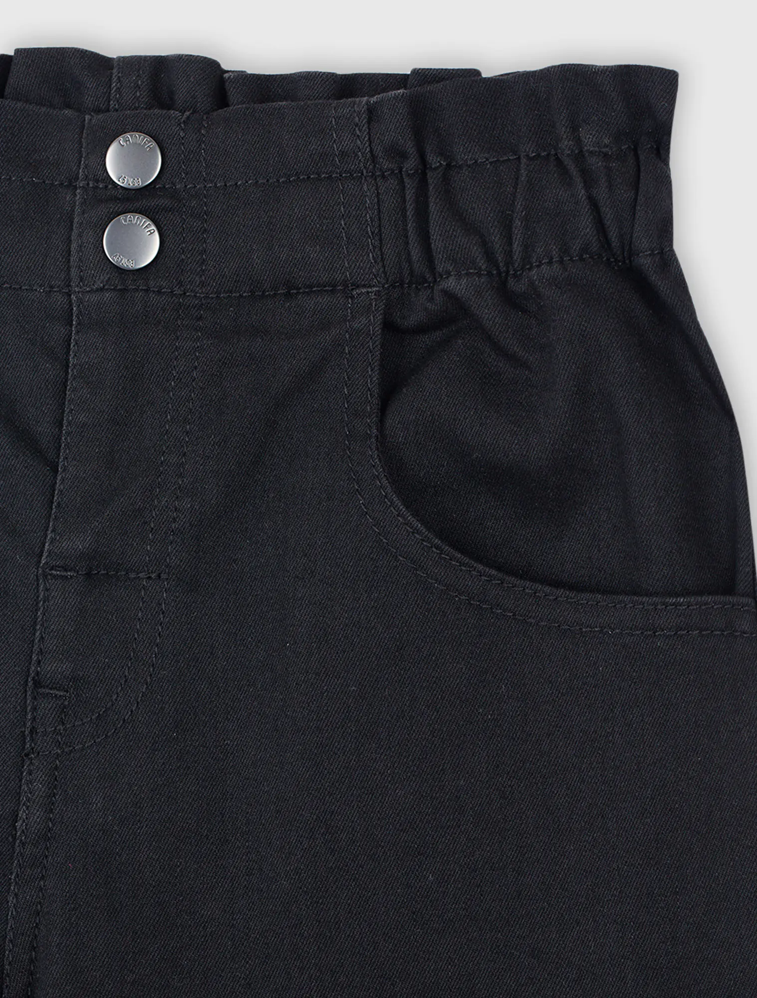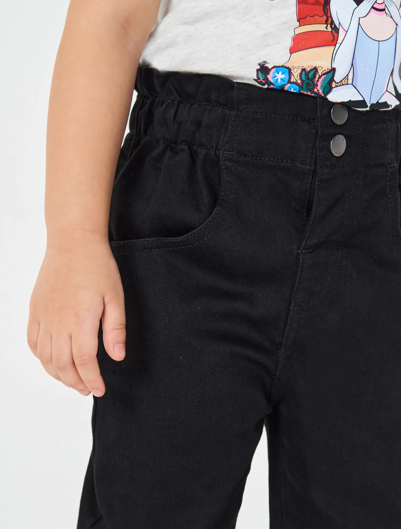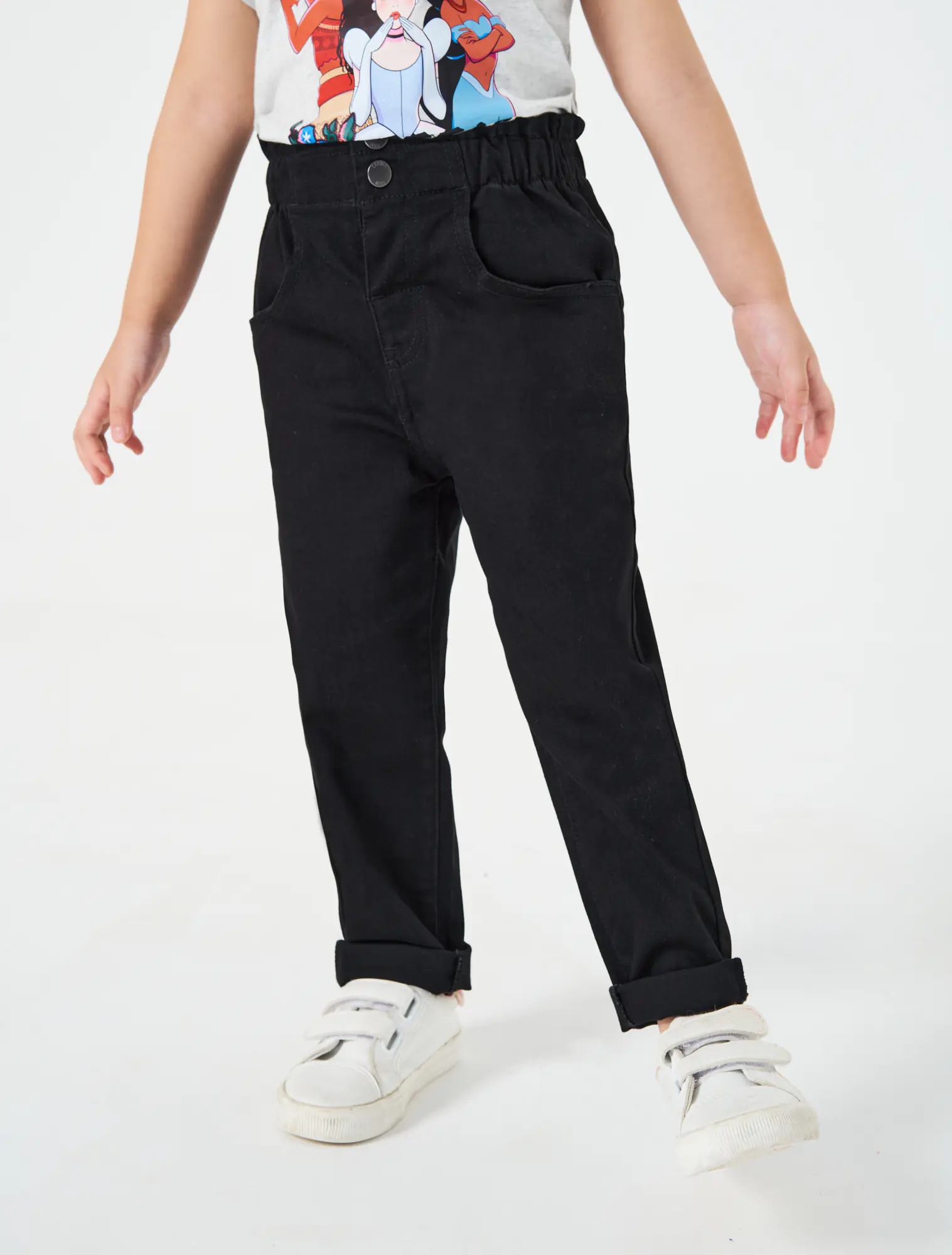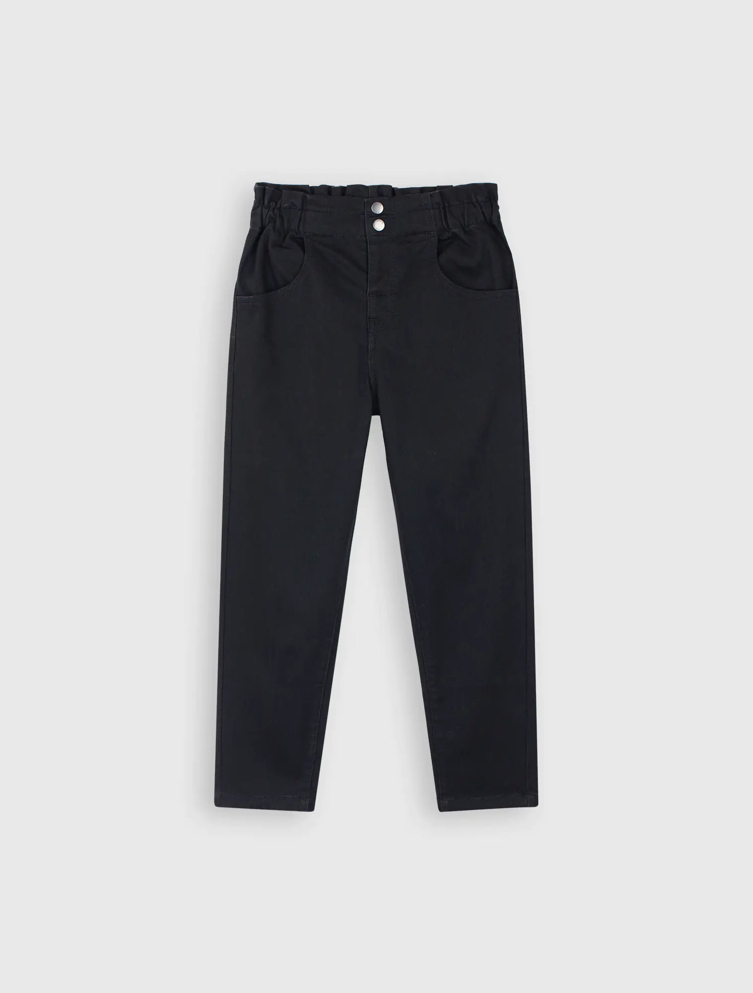 Quần jeans chất liệu cotton pha, cạp nhún chun, có khóa, phom regular.