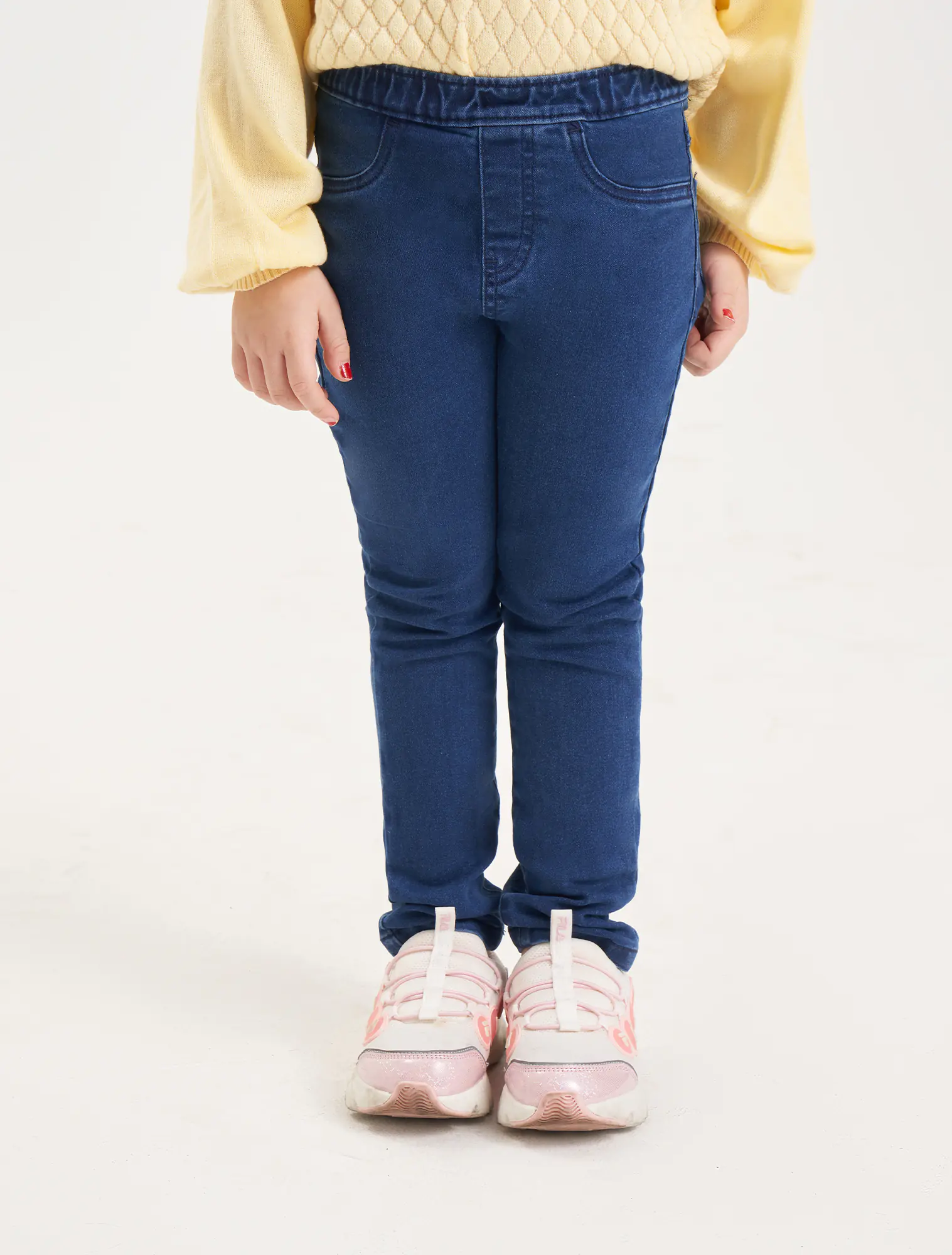 Quần jeans dáng regular fit, chất liệu co giãn.
