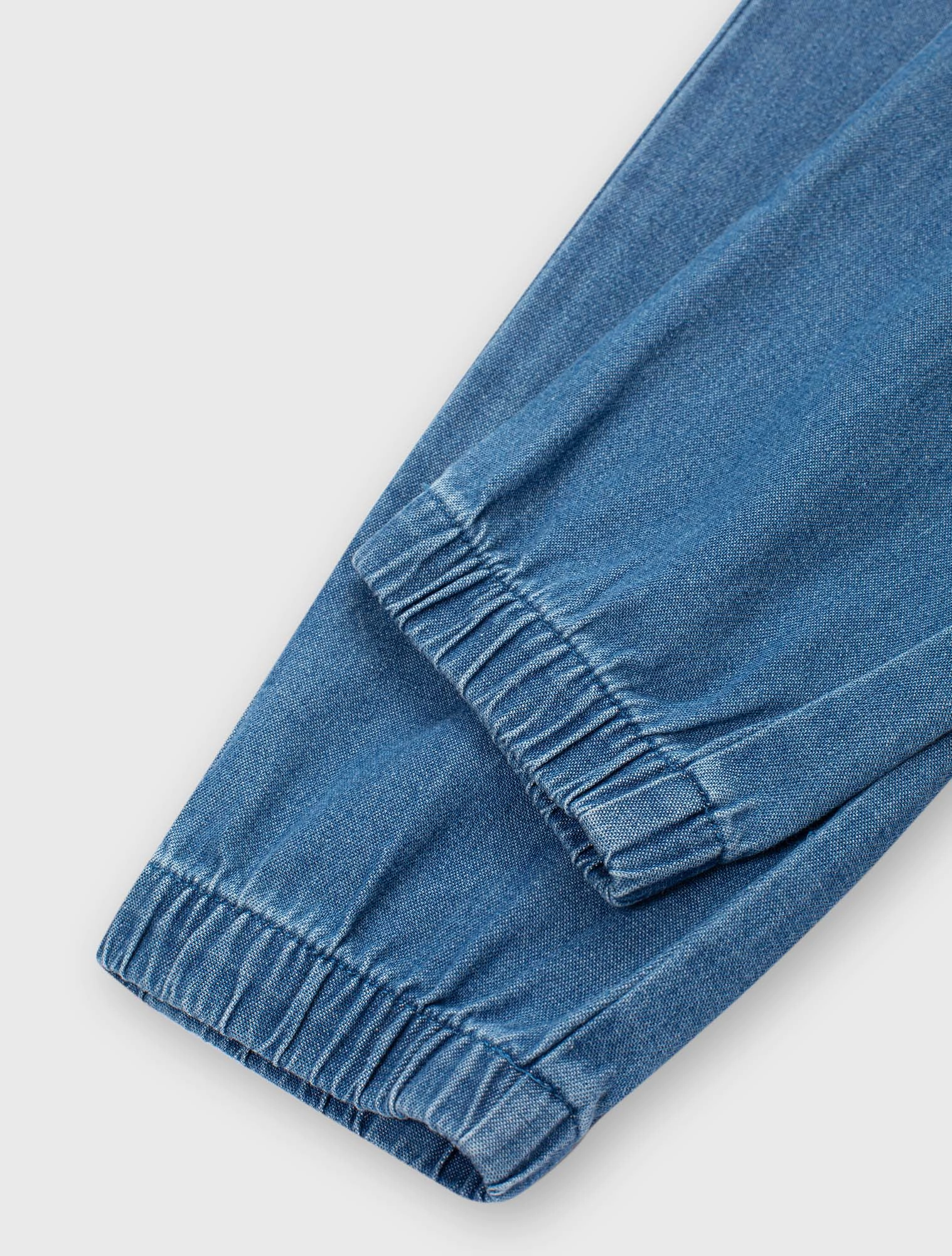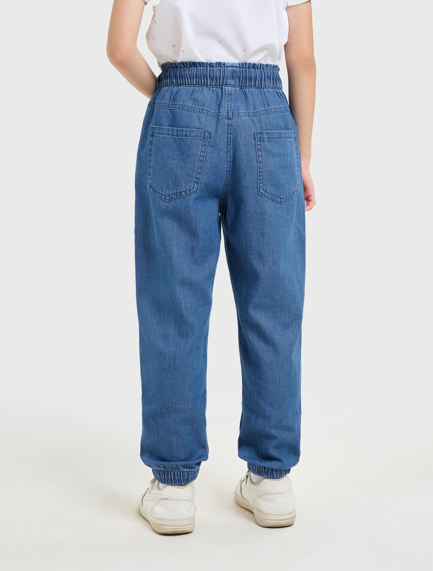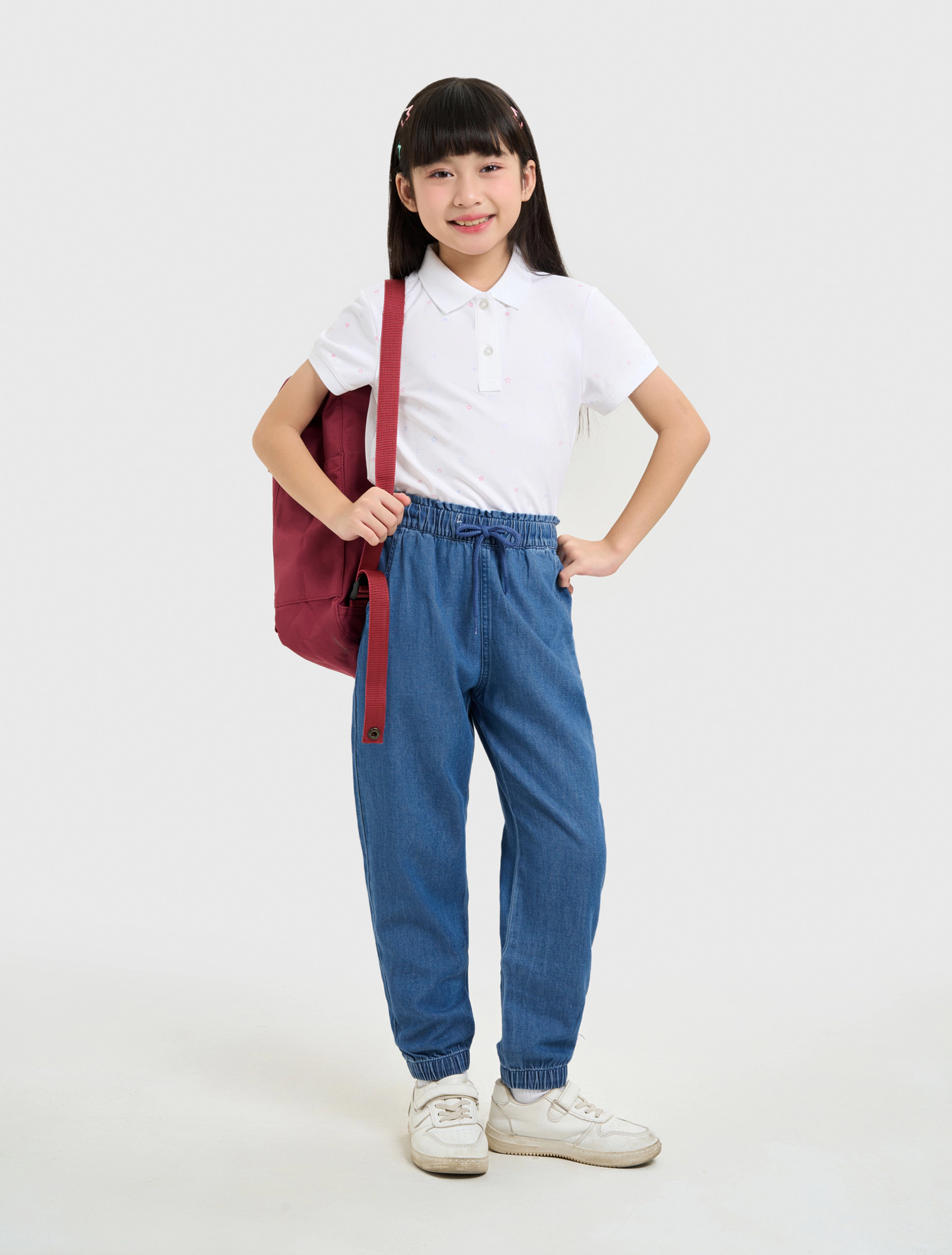Quần jeans bé gái cotton dáng suông có bo chun gấu, thiết kế năng động, dễ mặc.