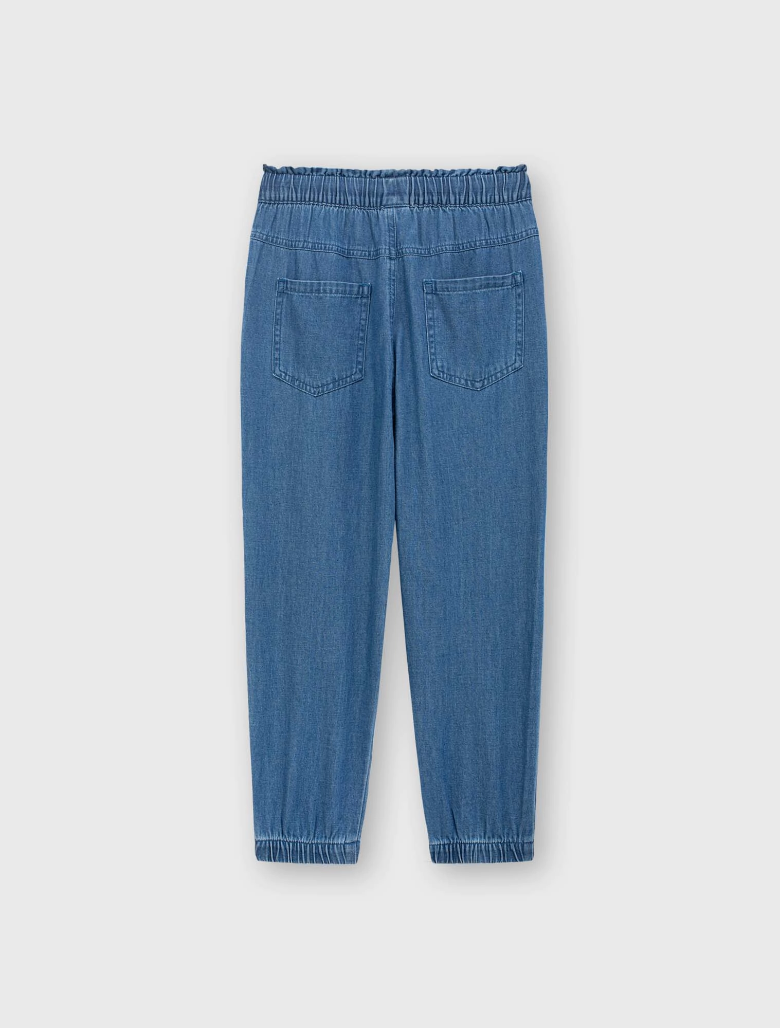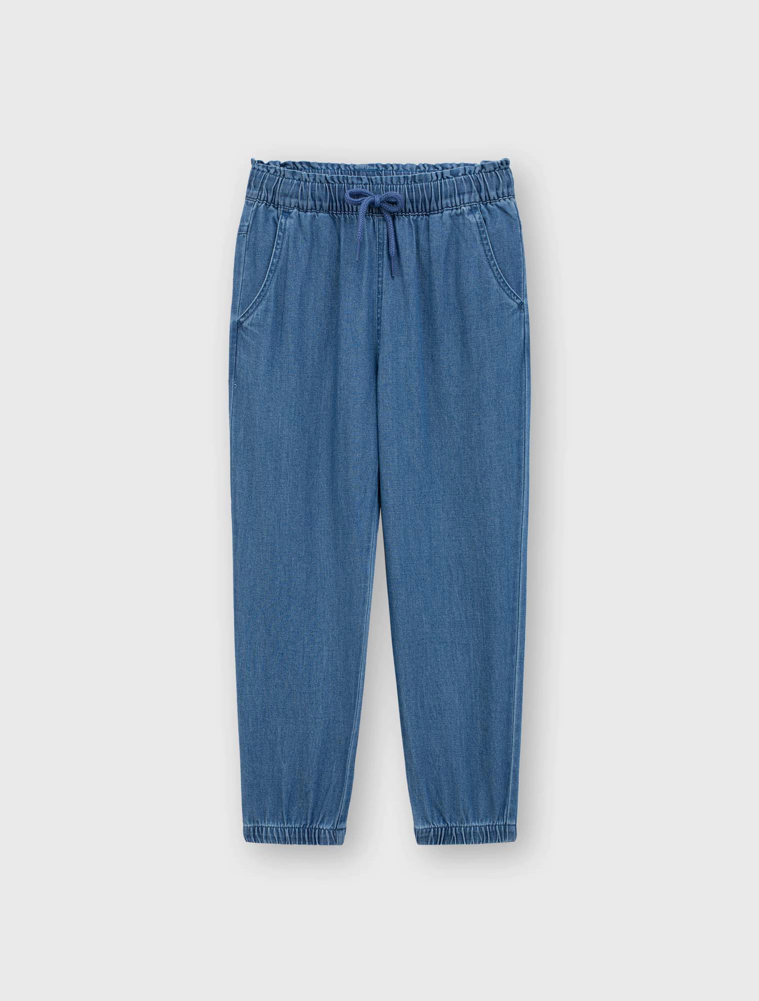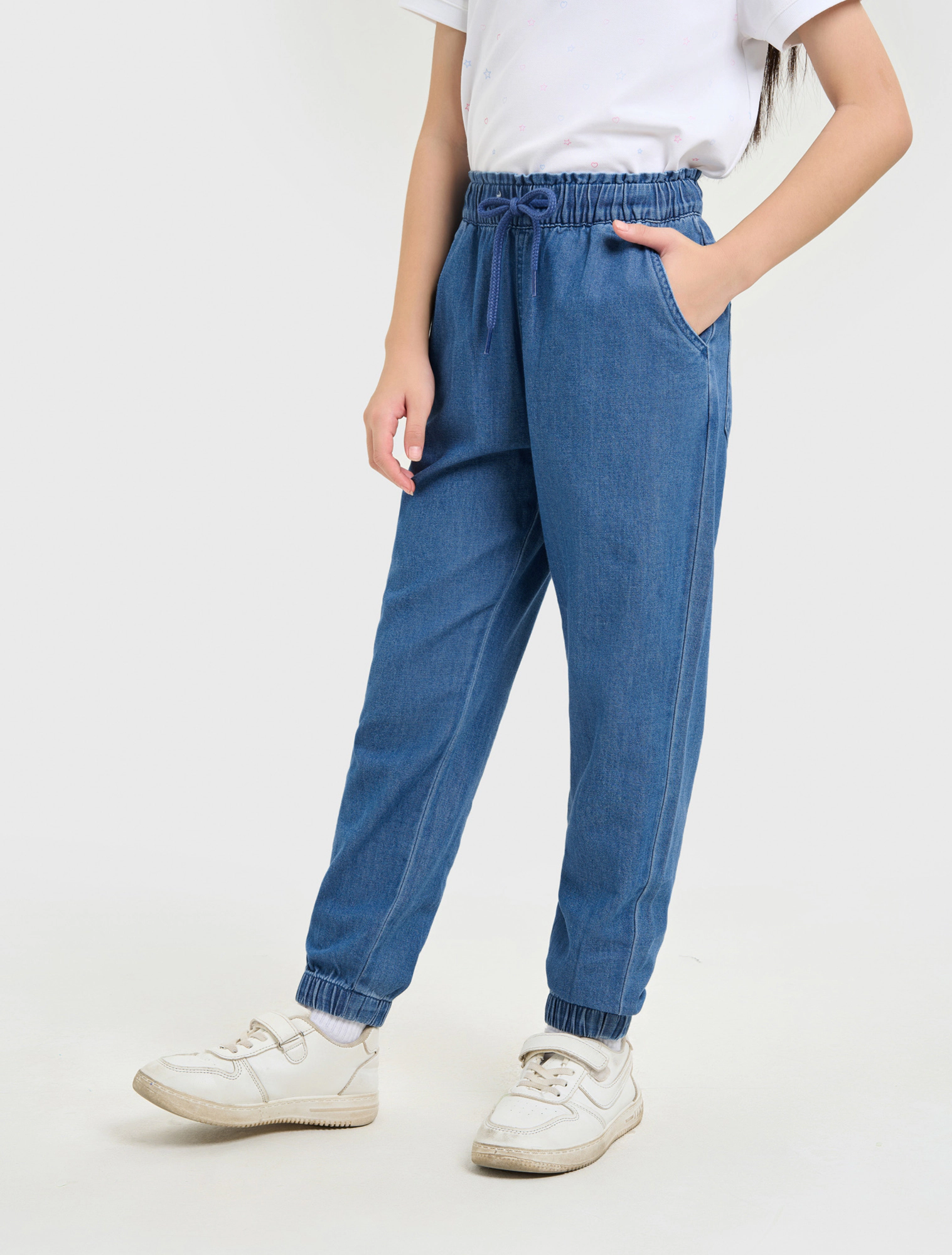 Quần jeans bé gái cotton dáng suông có bo chun gấu, thiết kế năng động, dễ mặc.