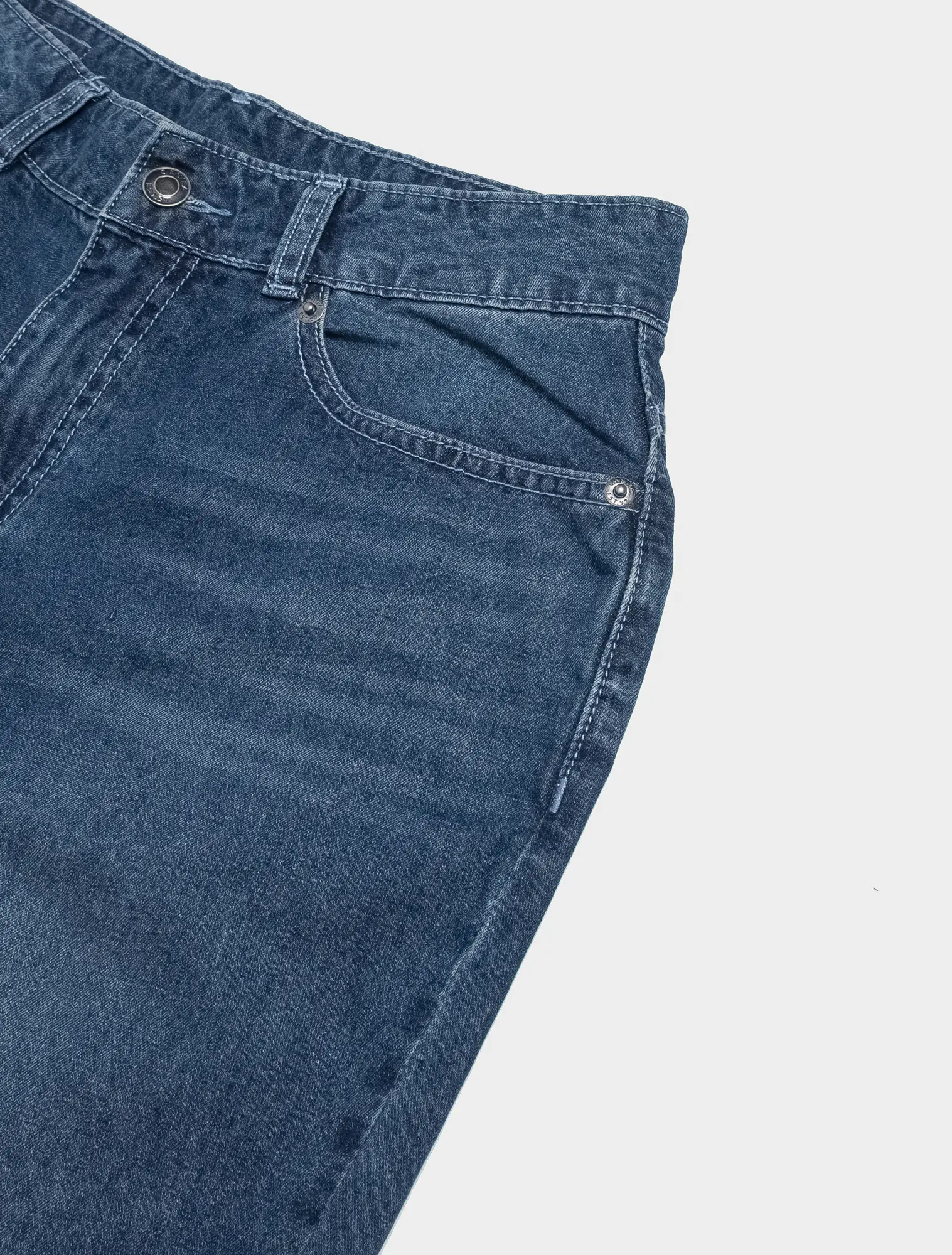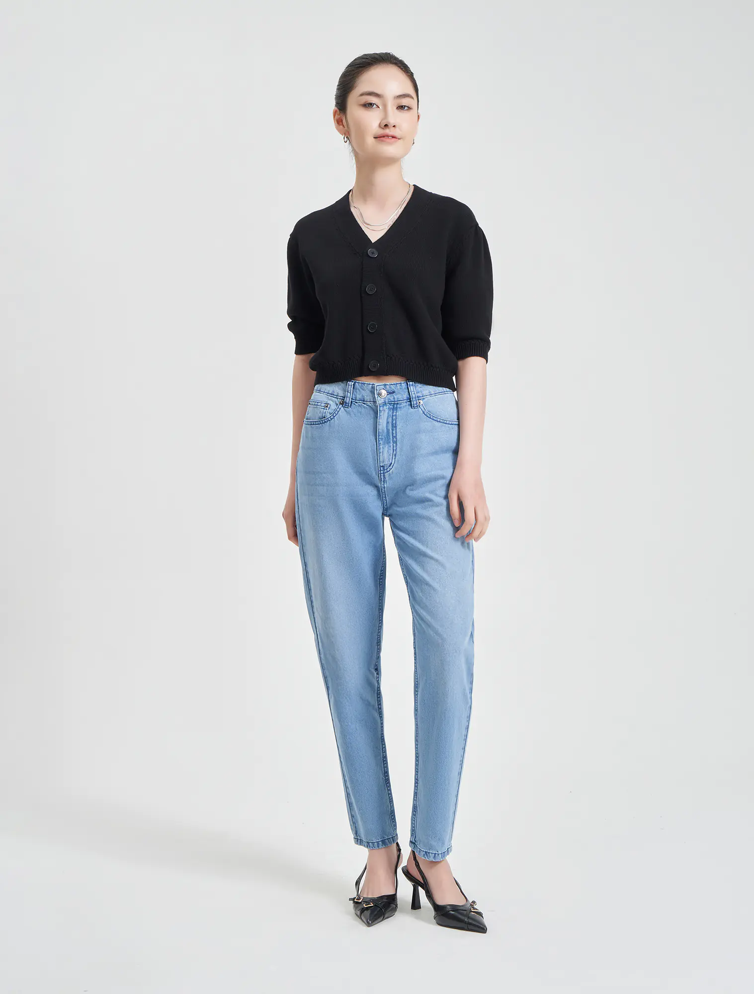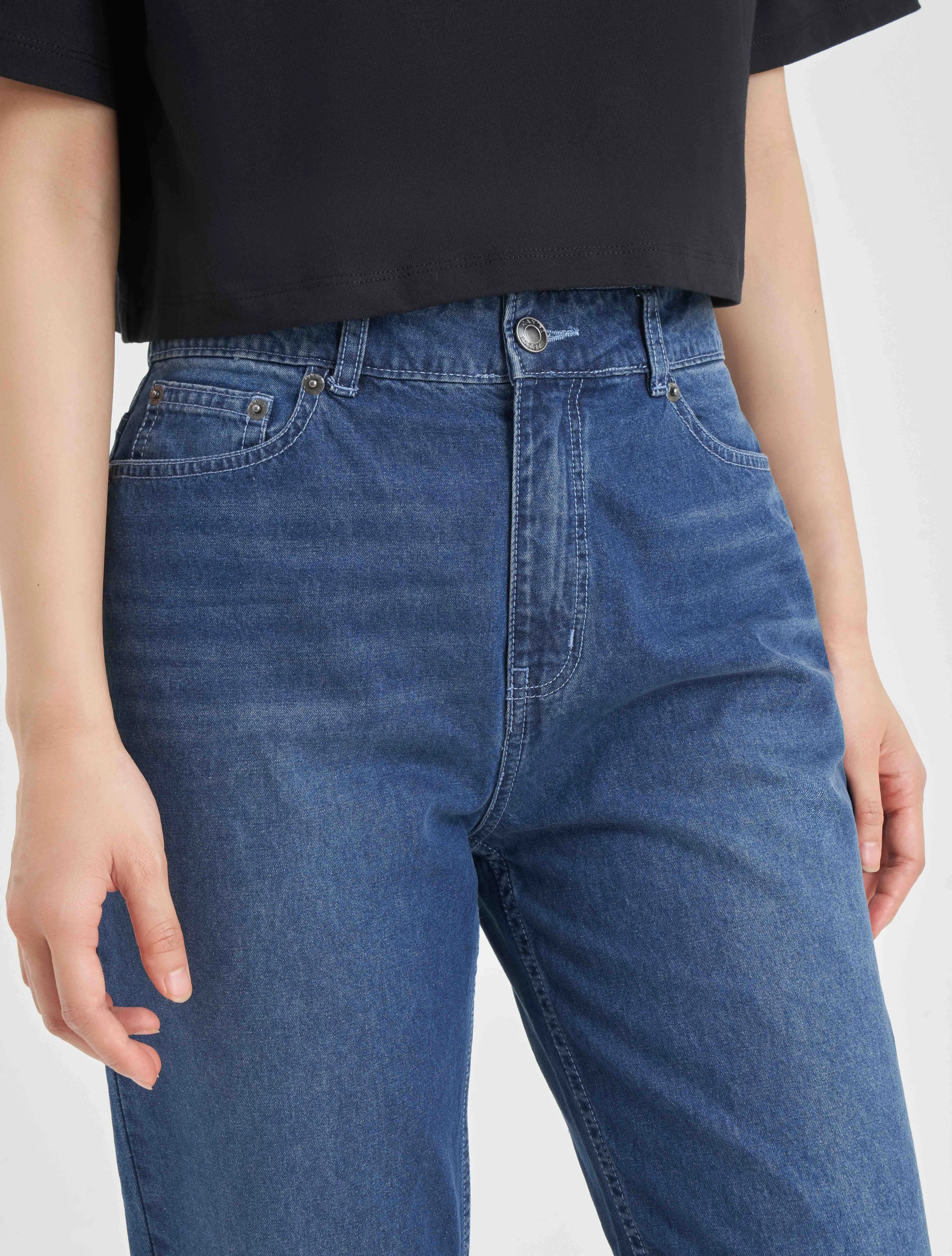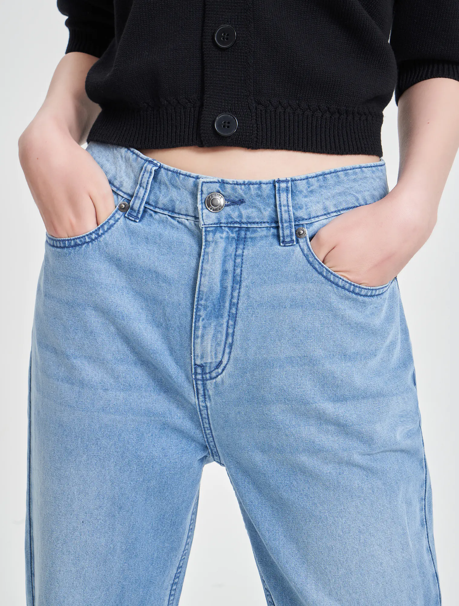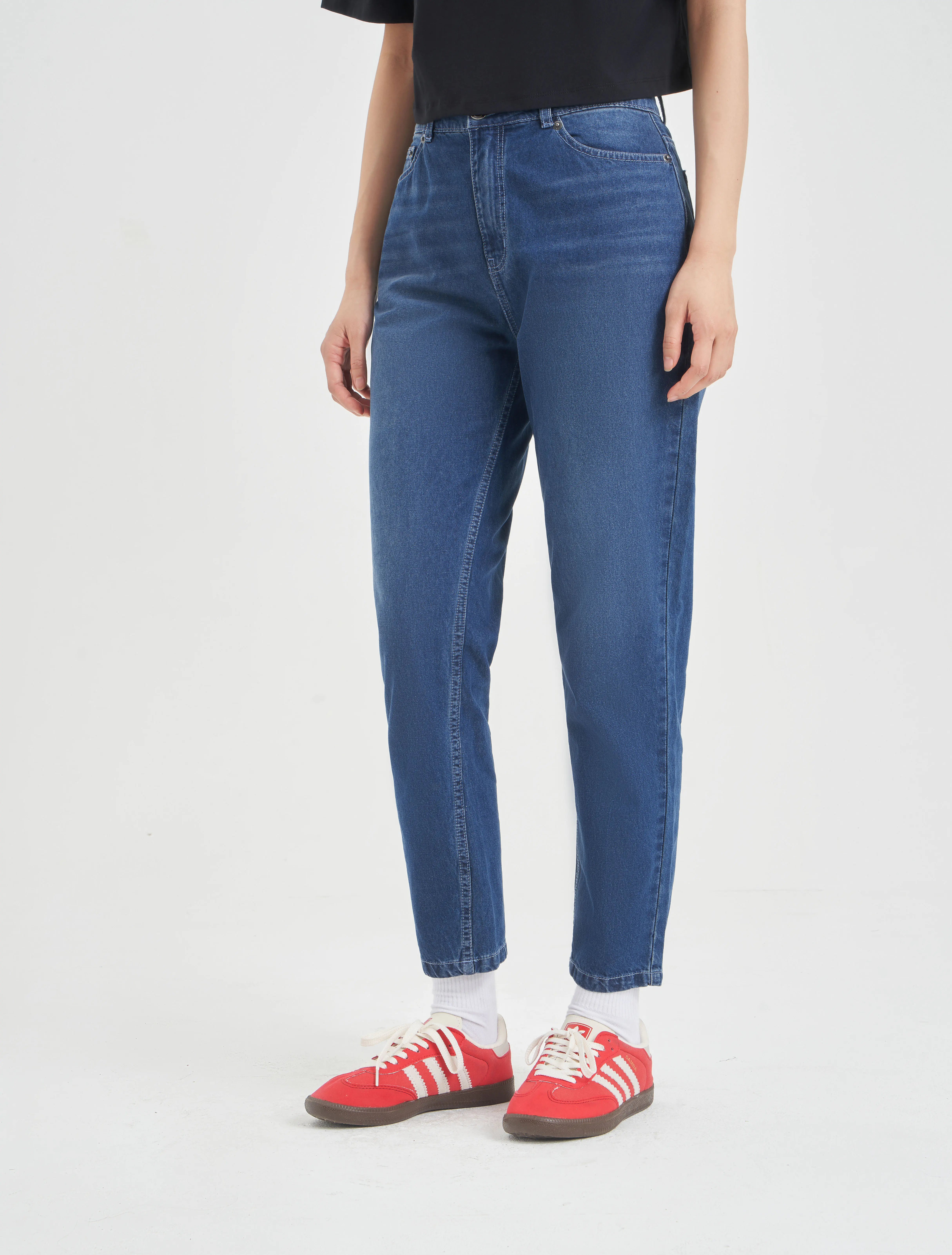 Quần denim 5 túi phom Mom Jeans một trong những dáng quần đẹp nhất cho mọi dáng người. Kiểu dáng vừa vặn với phần eo cao tạo dáng đồng hồ cát và kéo dài đôi chân của bạn. Thiết kế ống rộng dễ dàng vận động và cực kỳ thoải mái khi mặc.