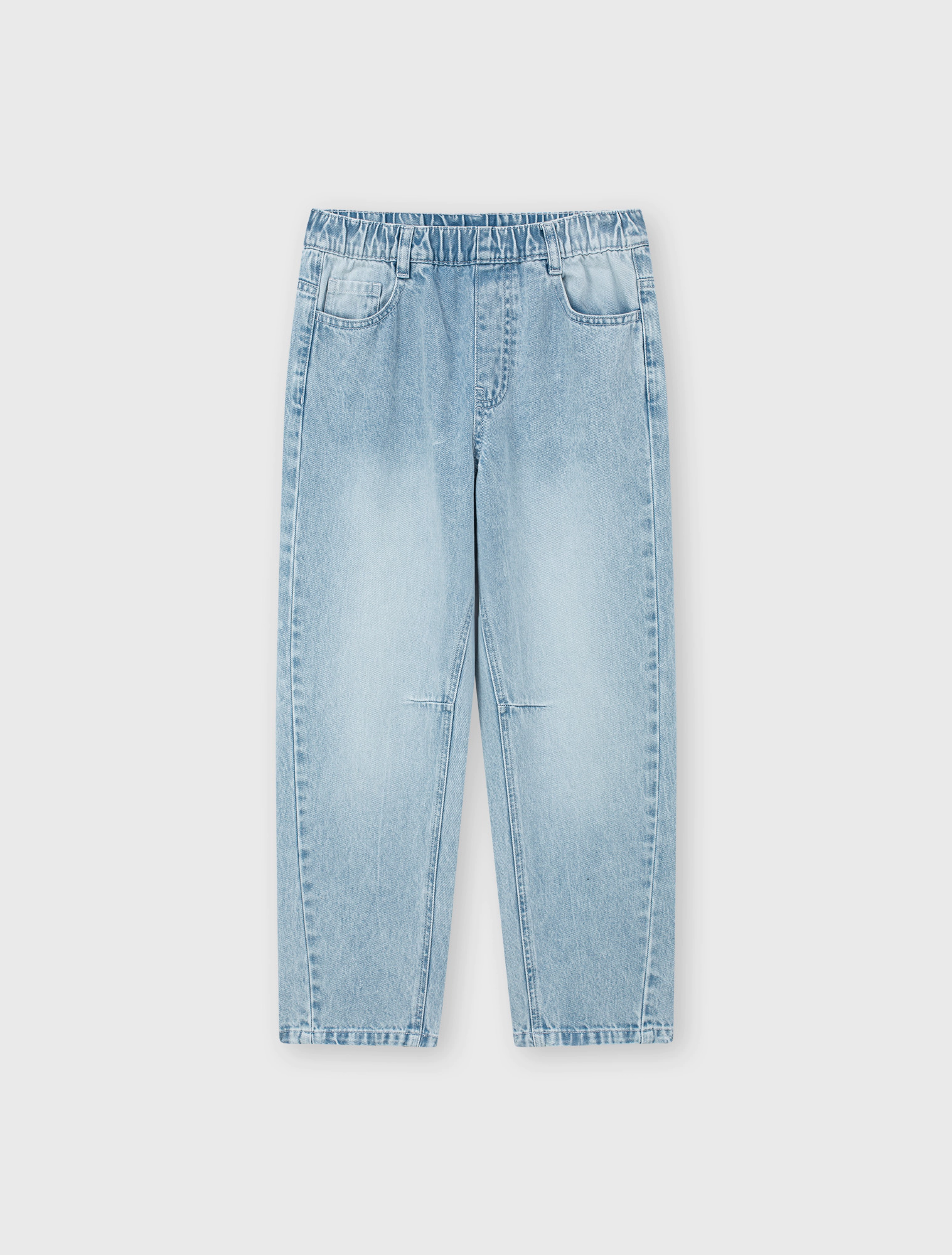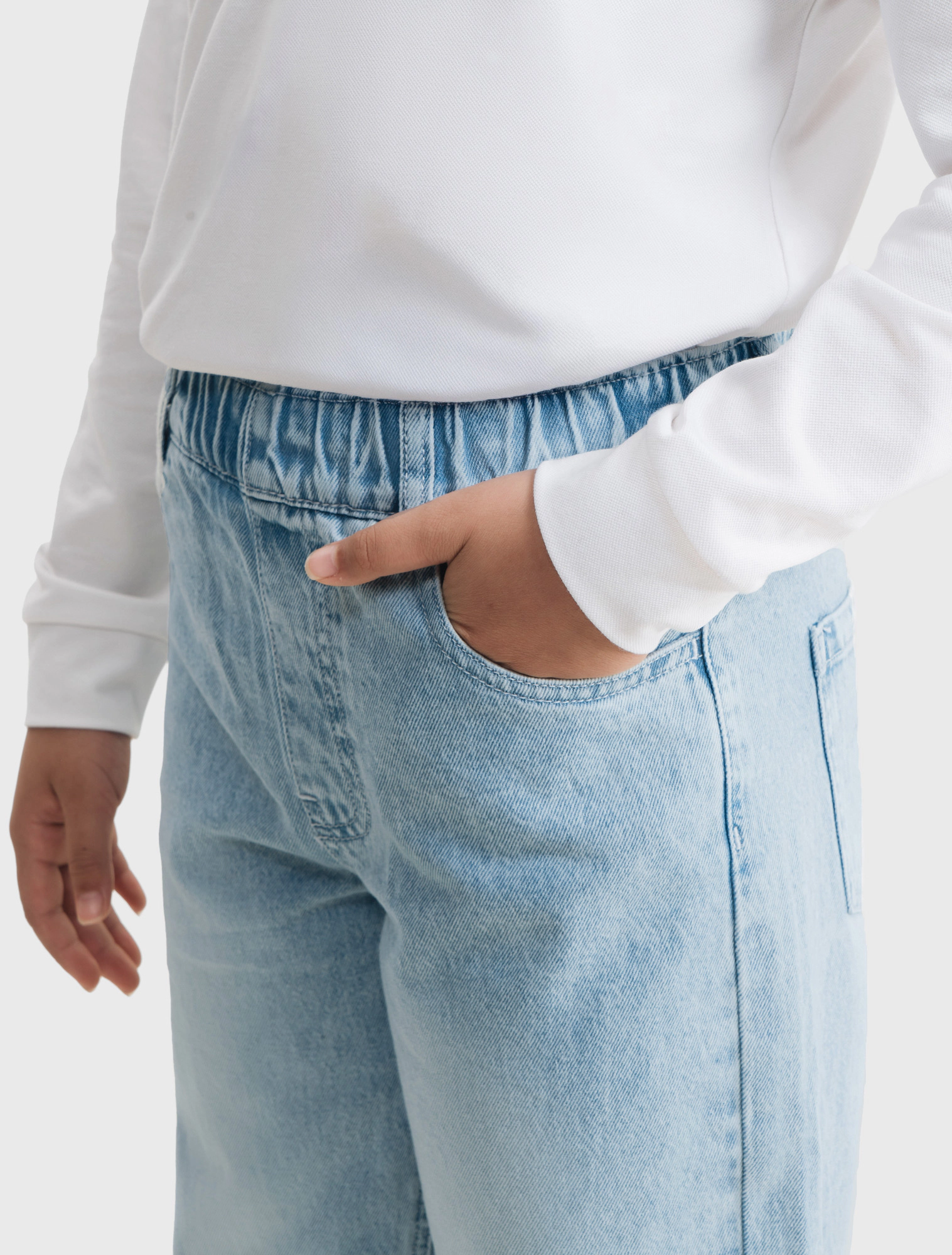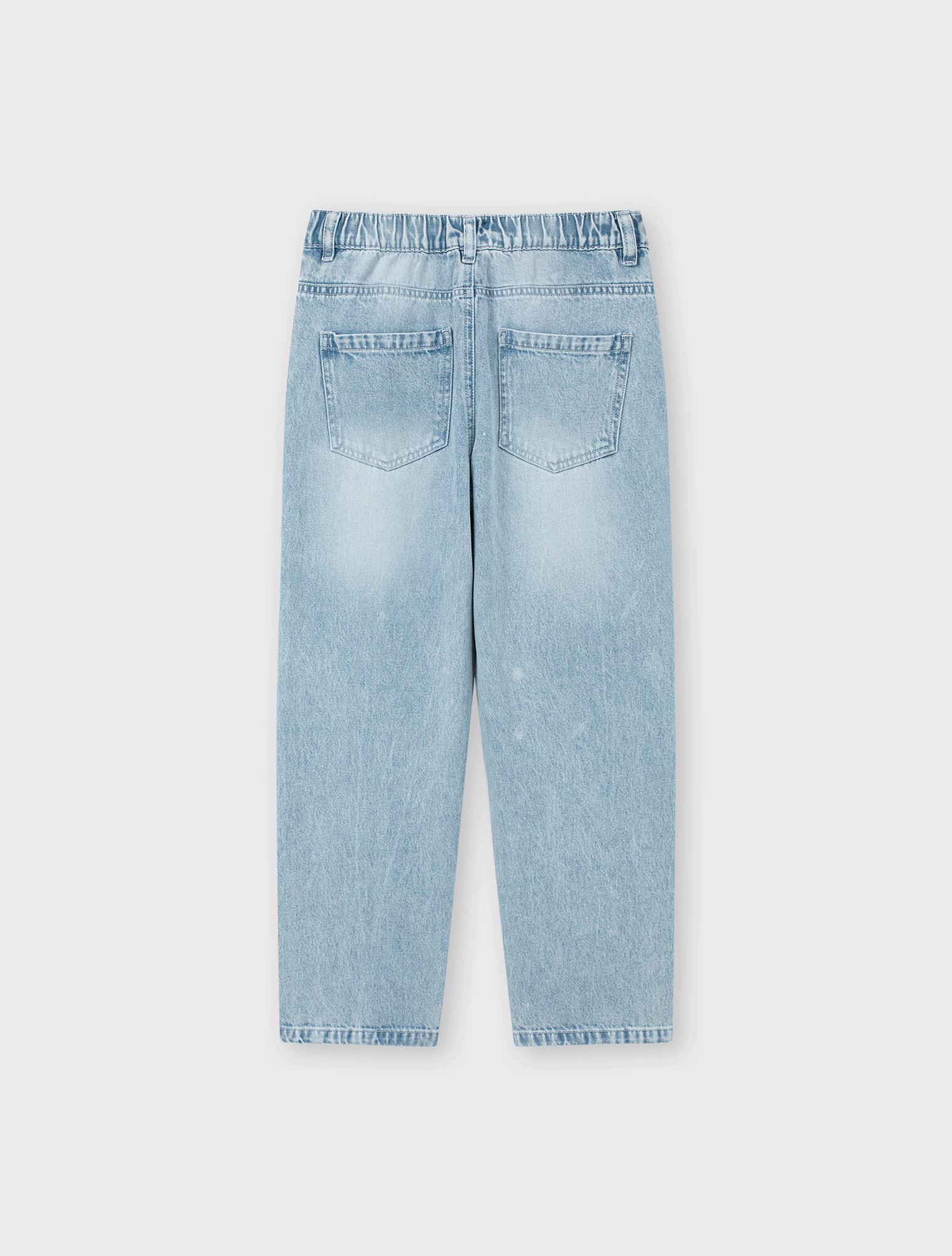 Quần jeans bé trai cotton dáng suông với thiết kể cạp bo thun bên trong, cài khuy phía trước, có túi phía trước và túi vuông phía sau.