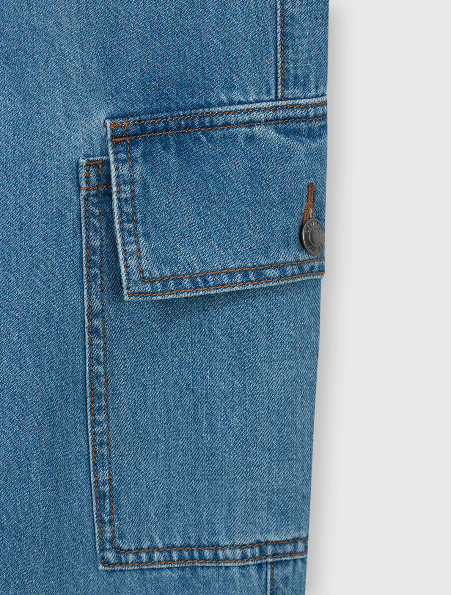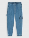 Quần jeans chất liệu 100% cotton, cạp chun luồn dây dệt, phom regular.