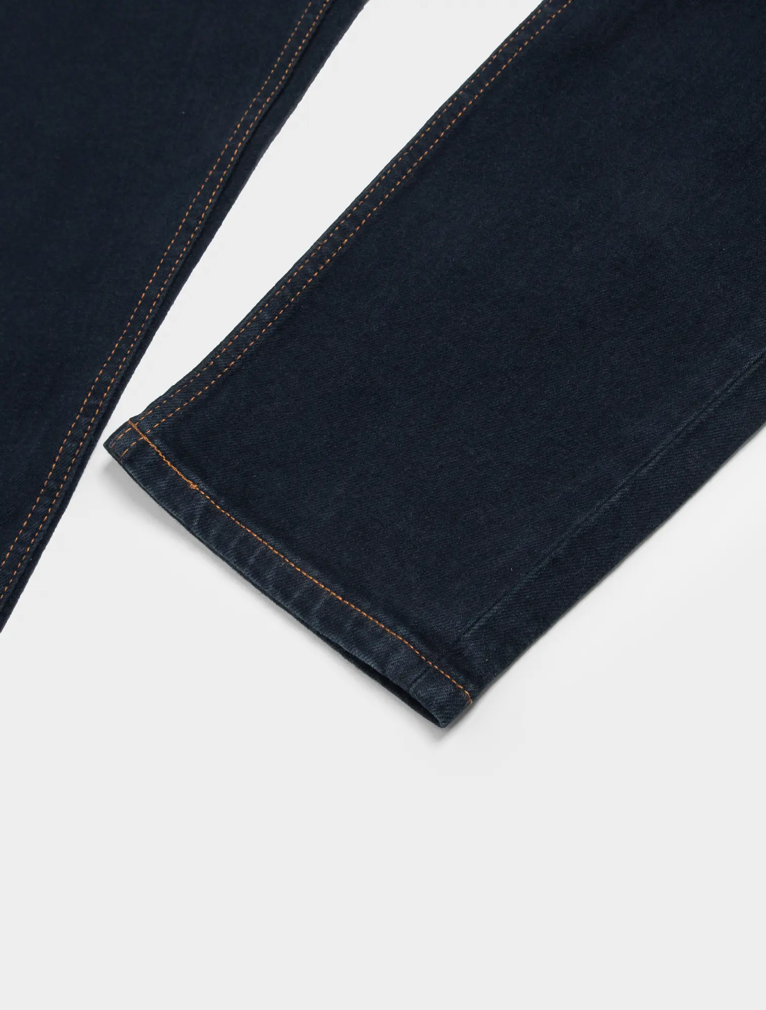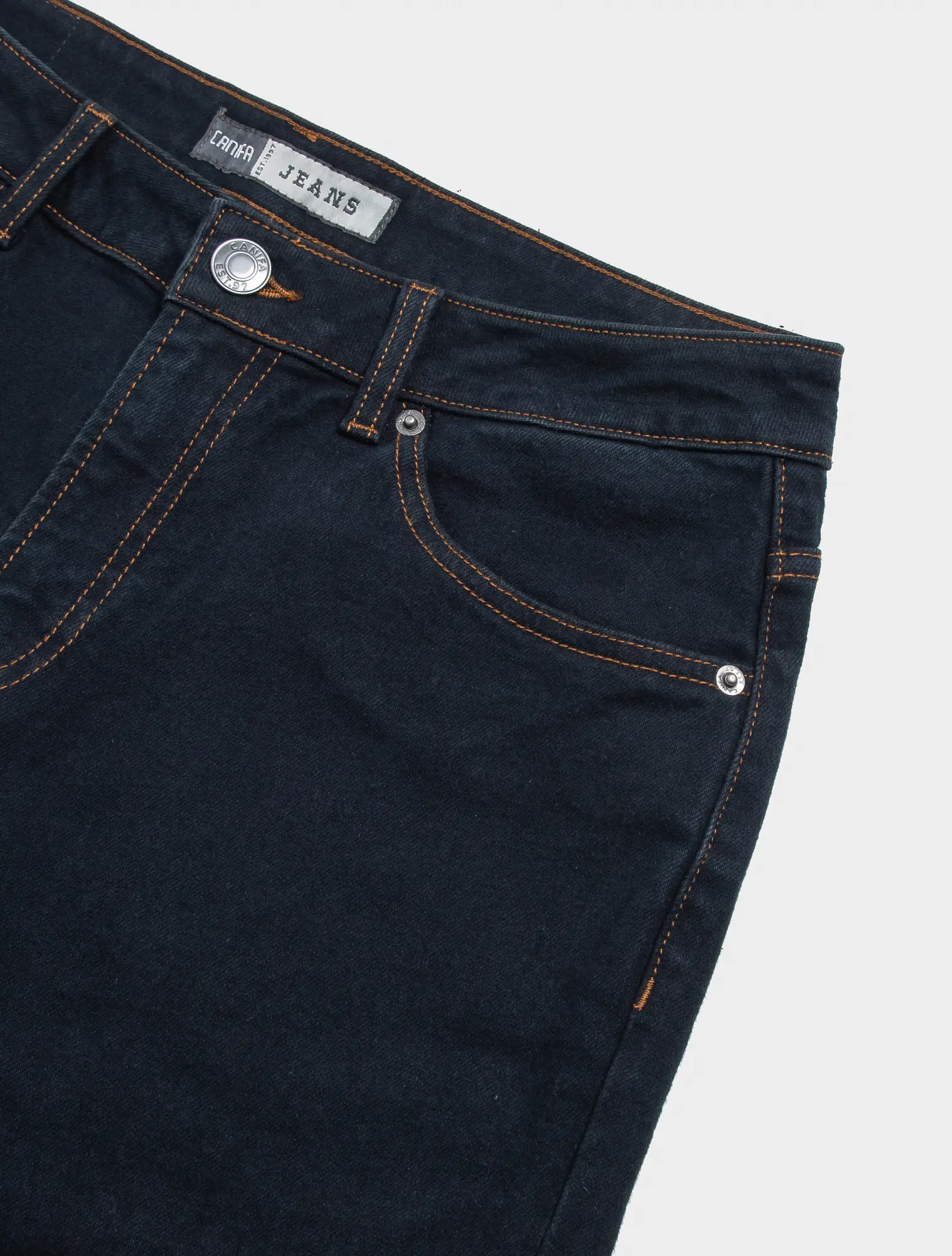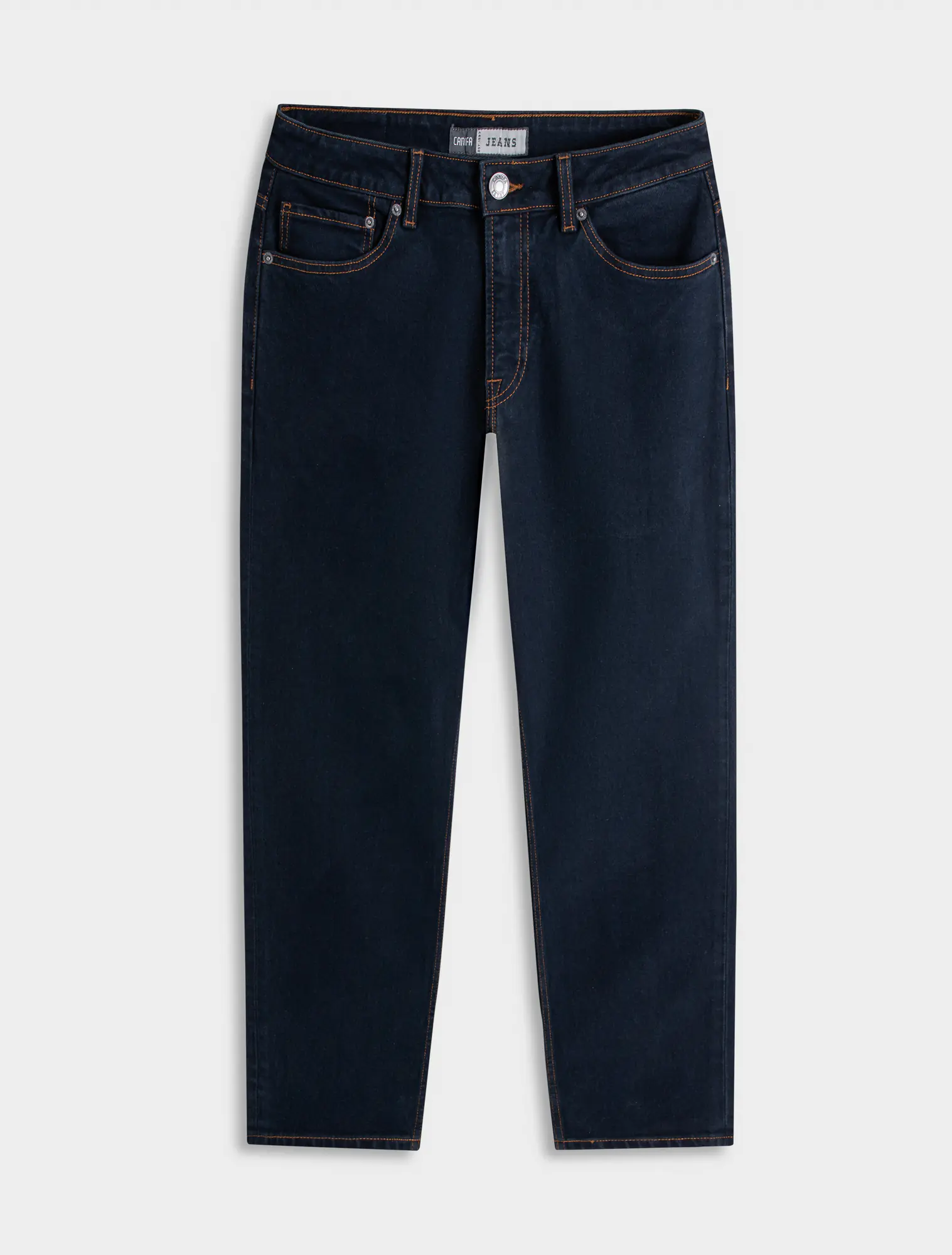 Quần jeans 5 túi, phom tapered là kiểu quần may rộng ở phần đùi, nhưng được làm côn nhỏ lại ở phần mắt cá chân.