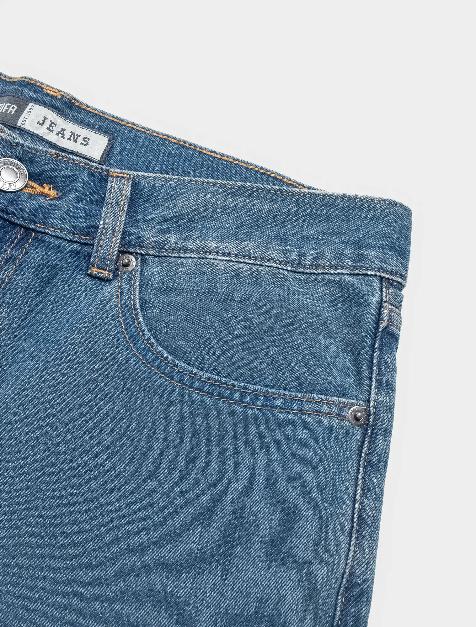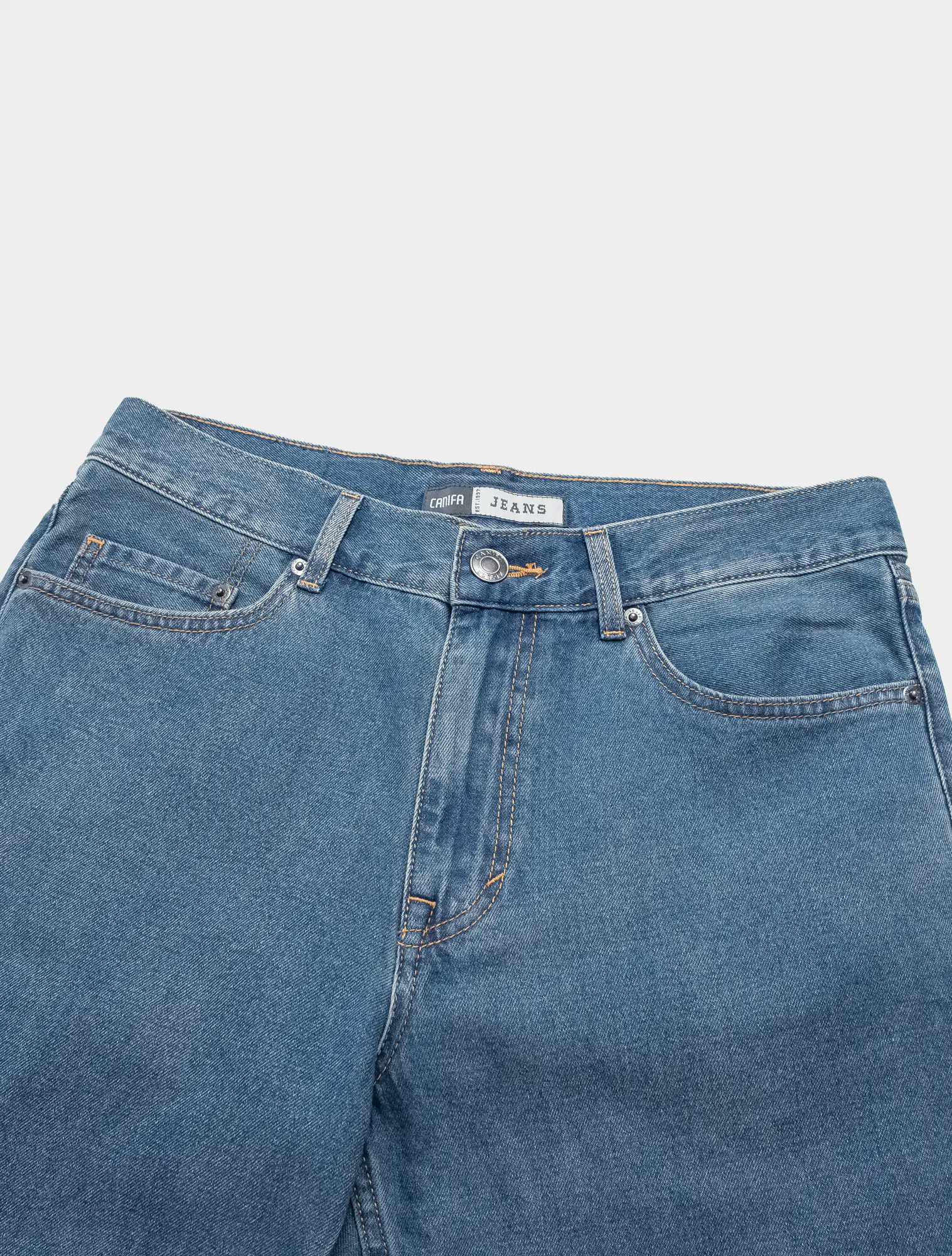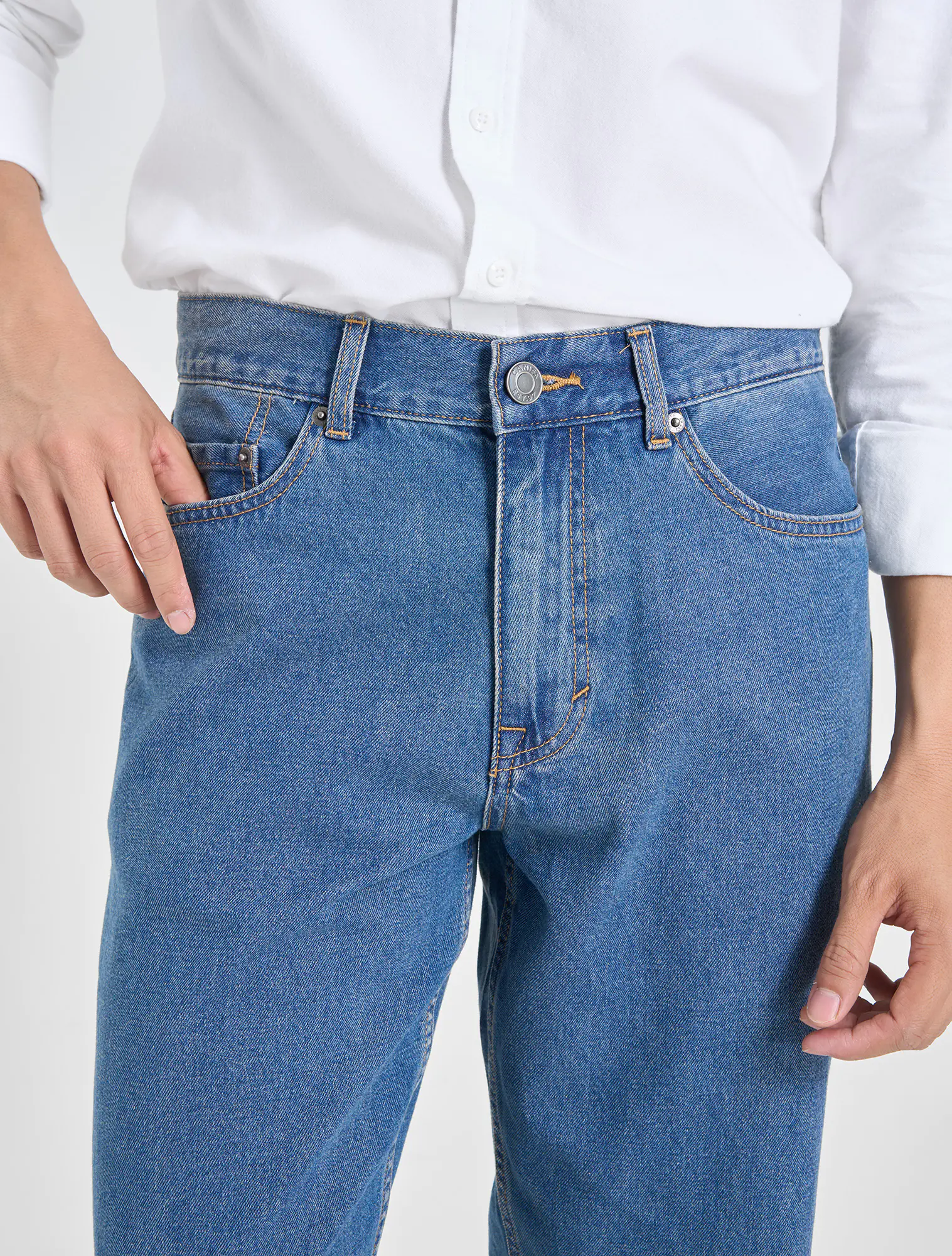 Quần jeans đen 5 túi, phom relaxed là kiểu dáng được may khá rộng rãi, thoải mái, kích thước quần lớn hơn một chút so với những kiểu dáng cơ bản khác như regular nhưng cũng không rộng thùng thình như oversize. Phom dáng này tạo sự thoải mái cho người mặc và có thể phù hợp với mọi vóc dáng.