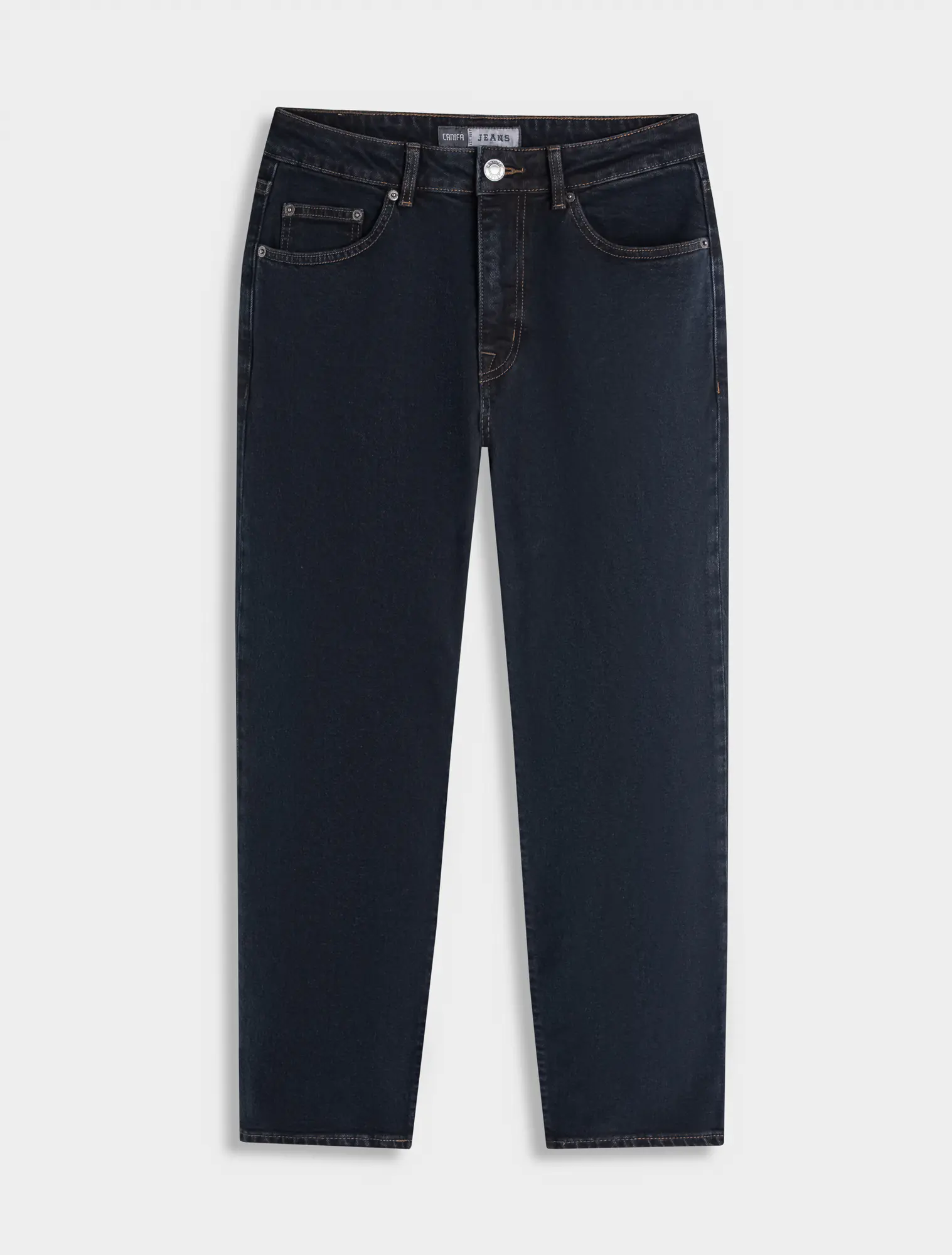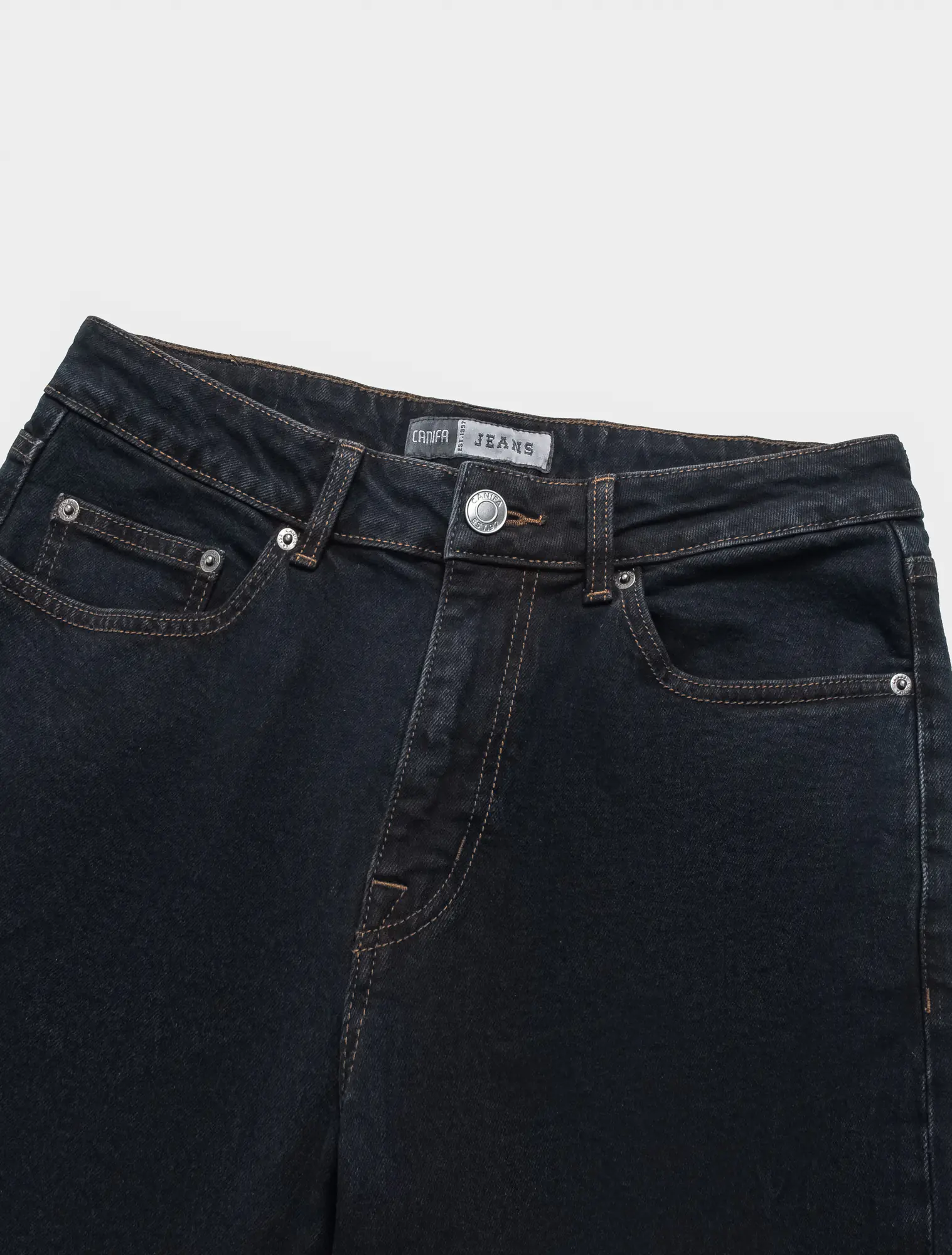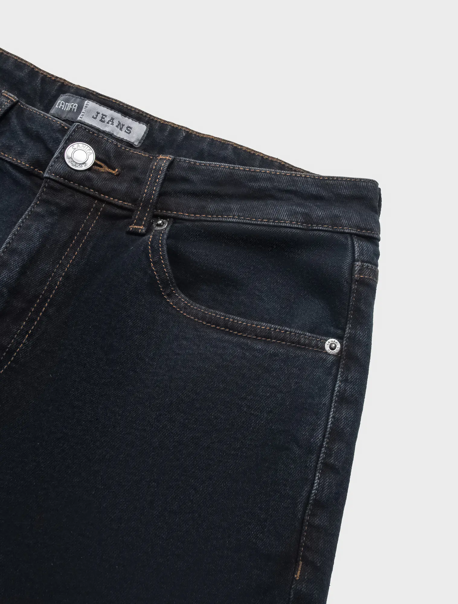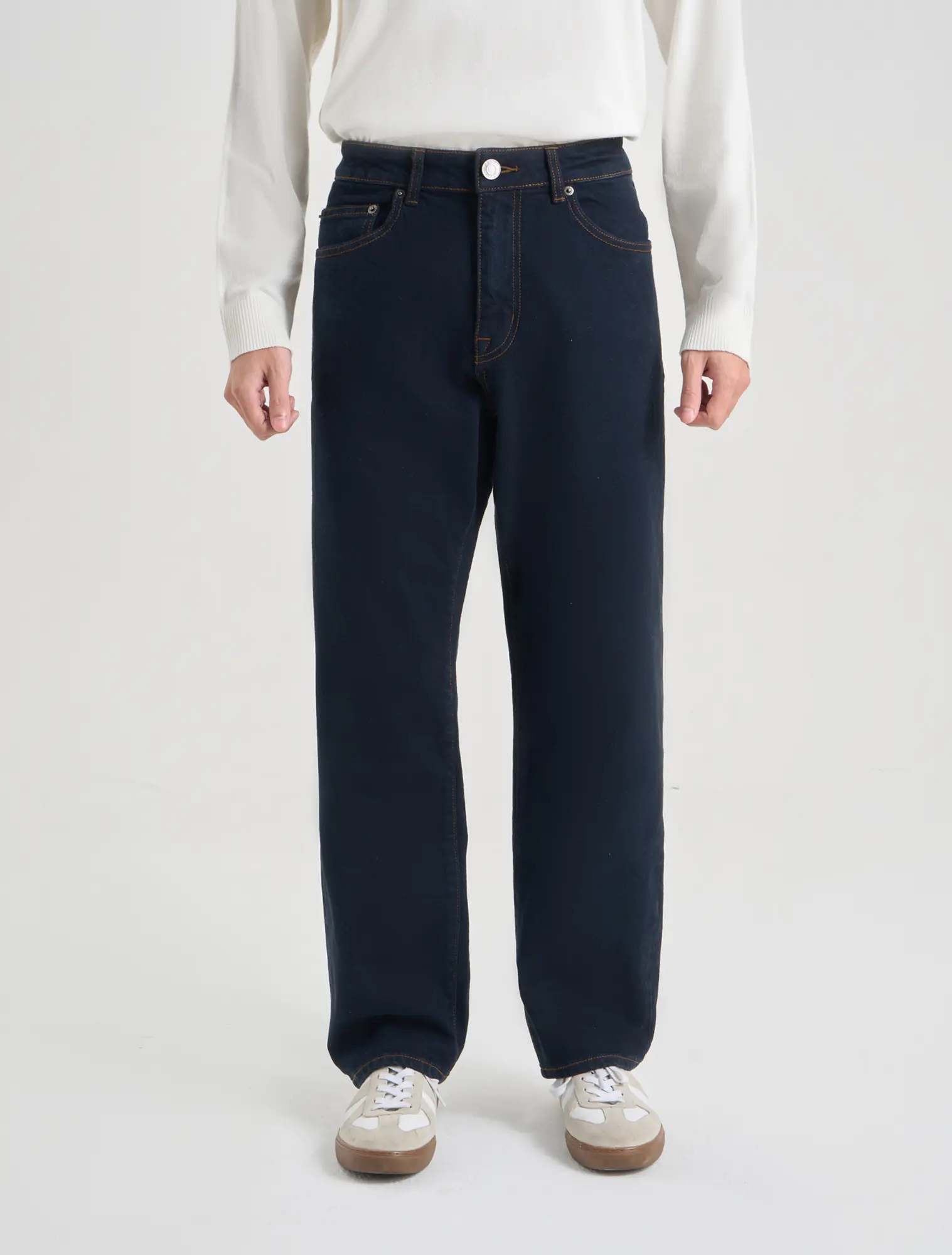 Quần jeans đen 5 túi, phom straight, được thiết kế không quá ôm sát chân và ống quần kiểu suông thẳng đứng. Quần jeans ống suông là loại quần cổ điển và rất phổ biến với thiết kế thoải mái, rộng vừa. Đặc điểm của quần này chính là có phần mông, đùi và ống rộng trung bình mang đến sự thoái mái và tiện dụng cho người mặc.