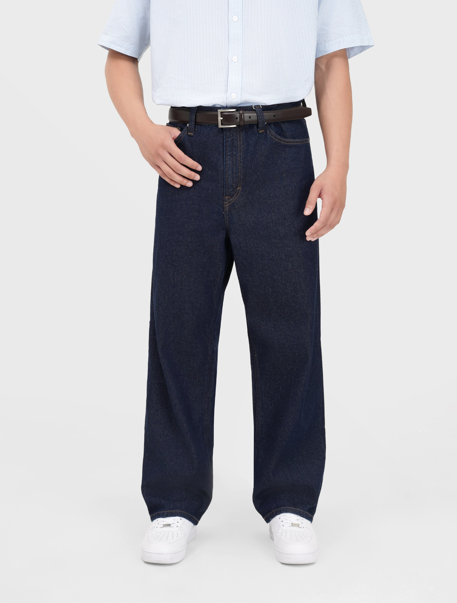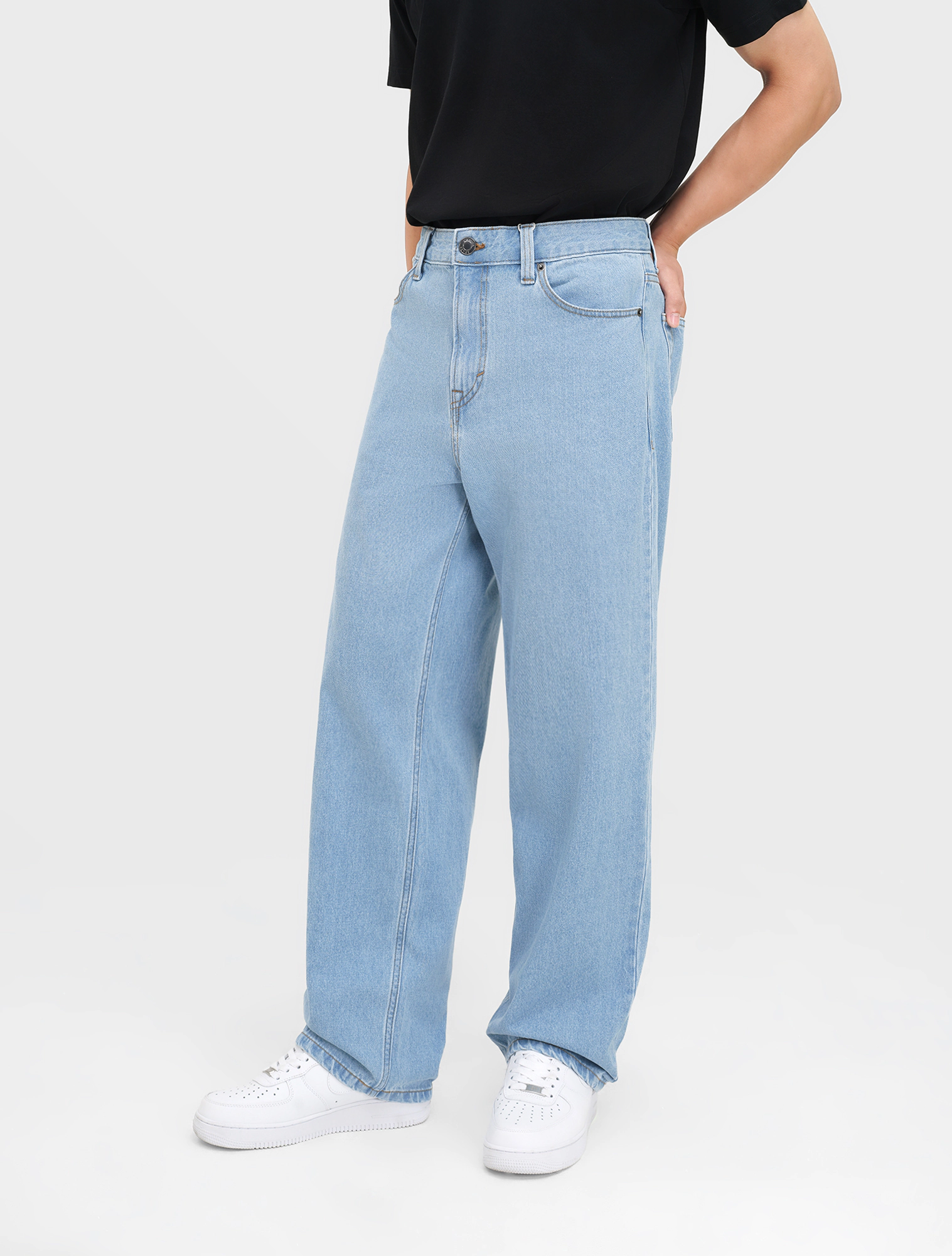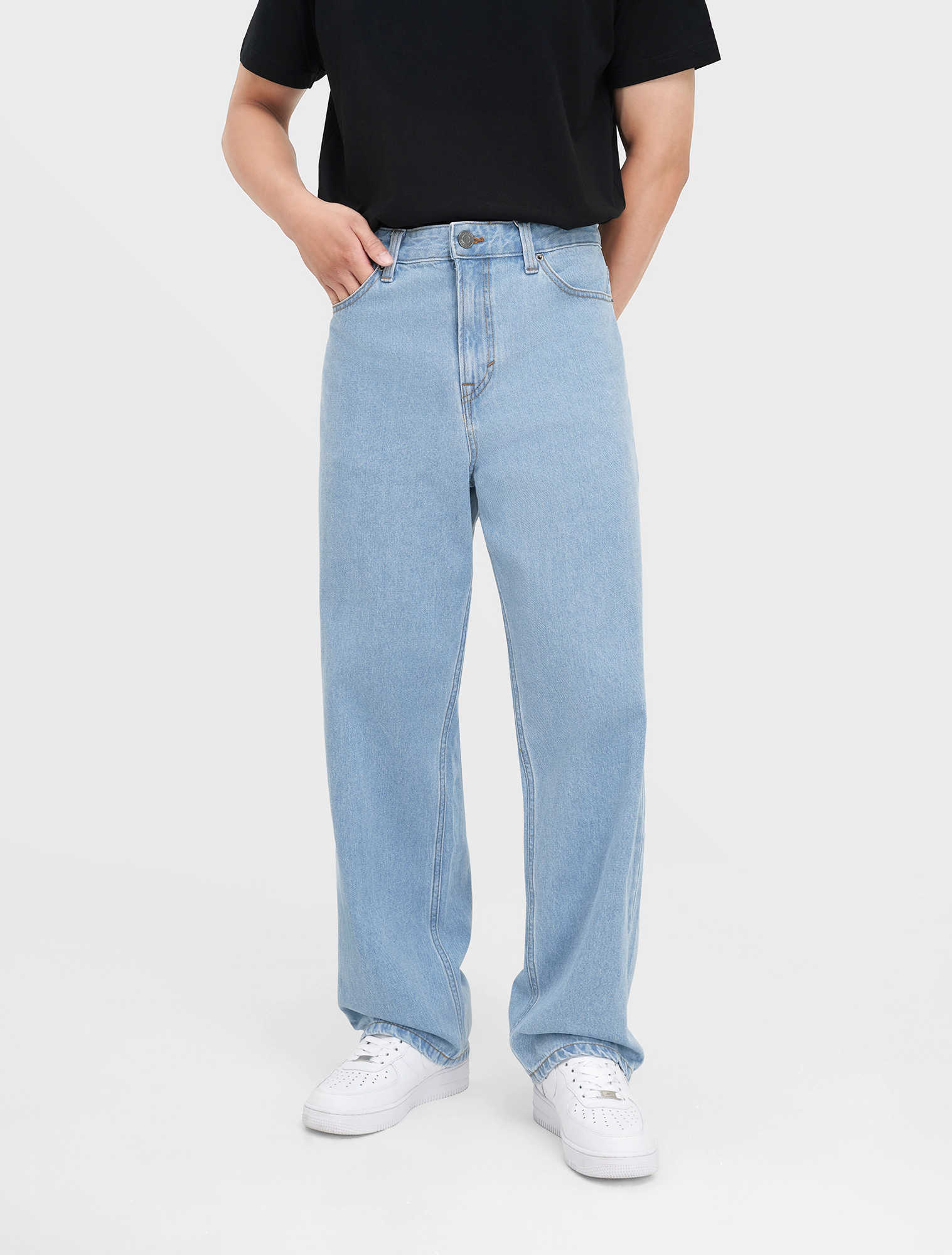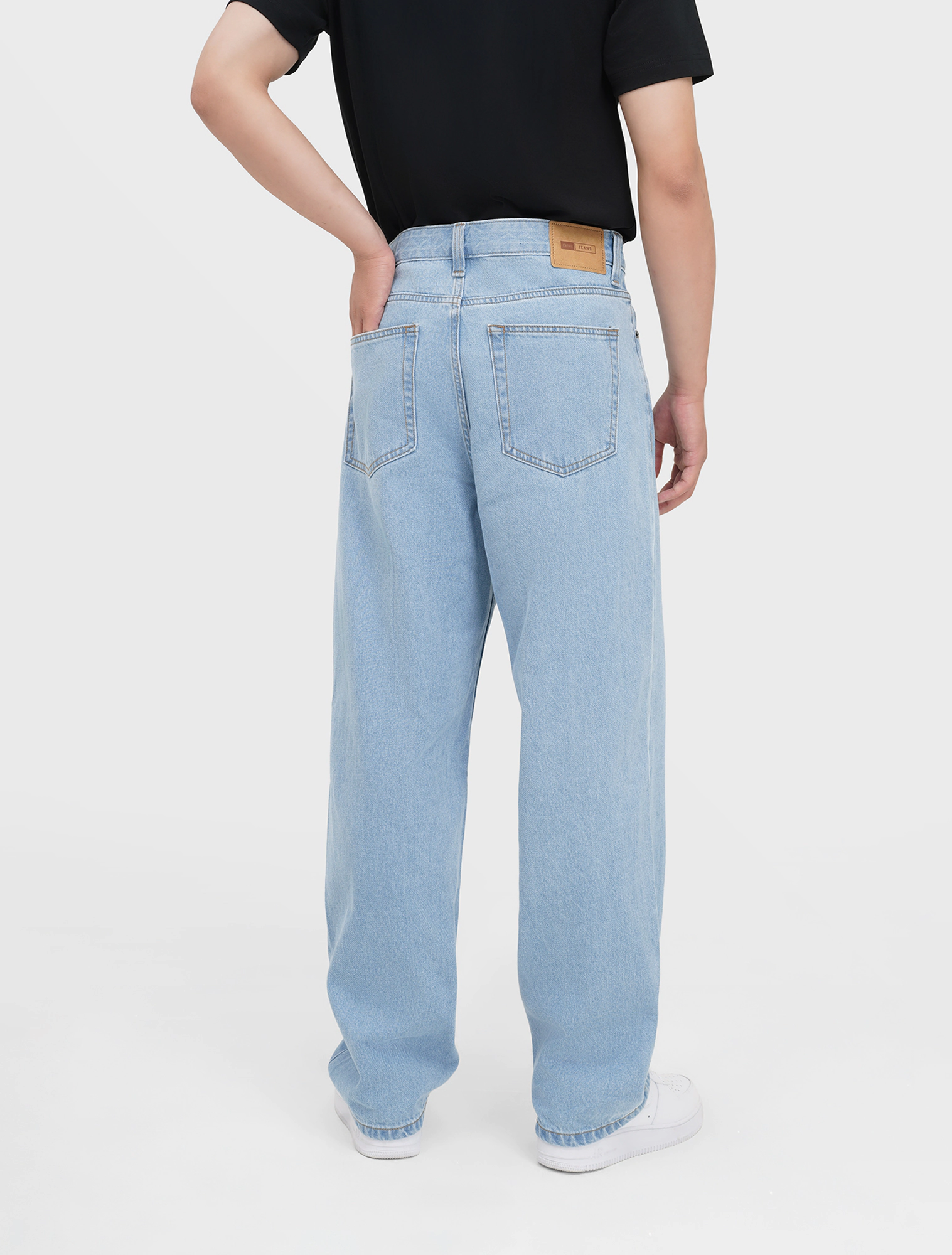 Quần jean nam cotton dáng suông với chất liệu denim dày dặn, cứng cáp, thấm hút tốt.