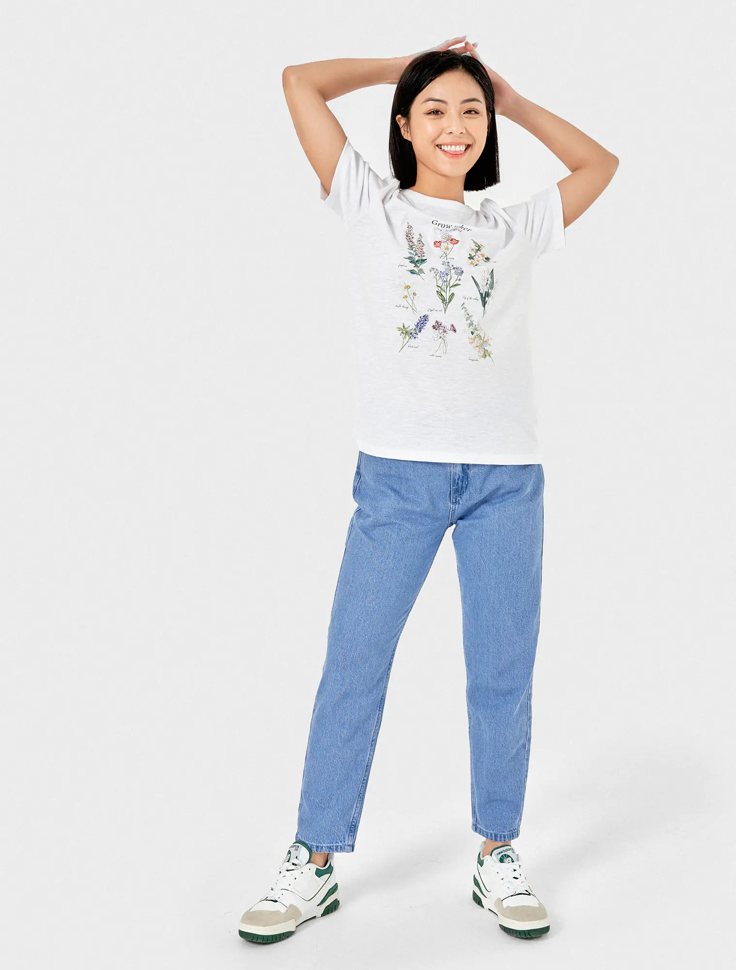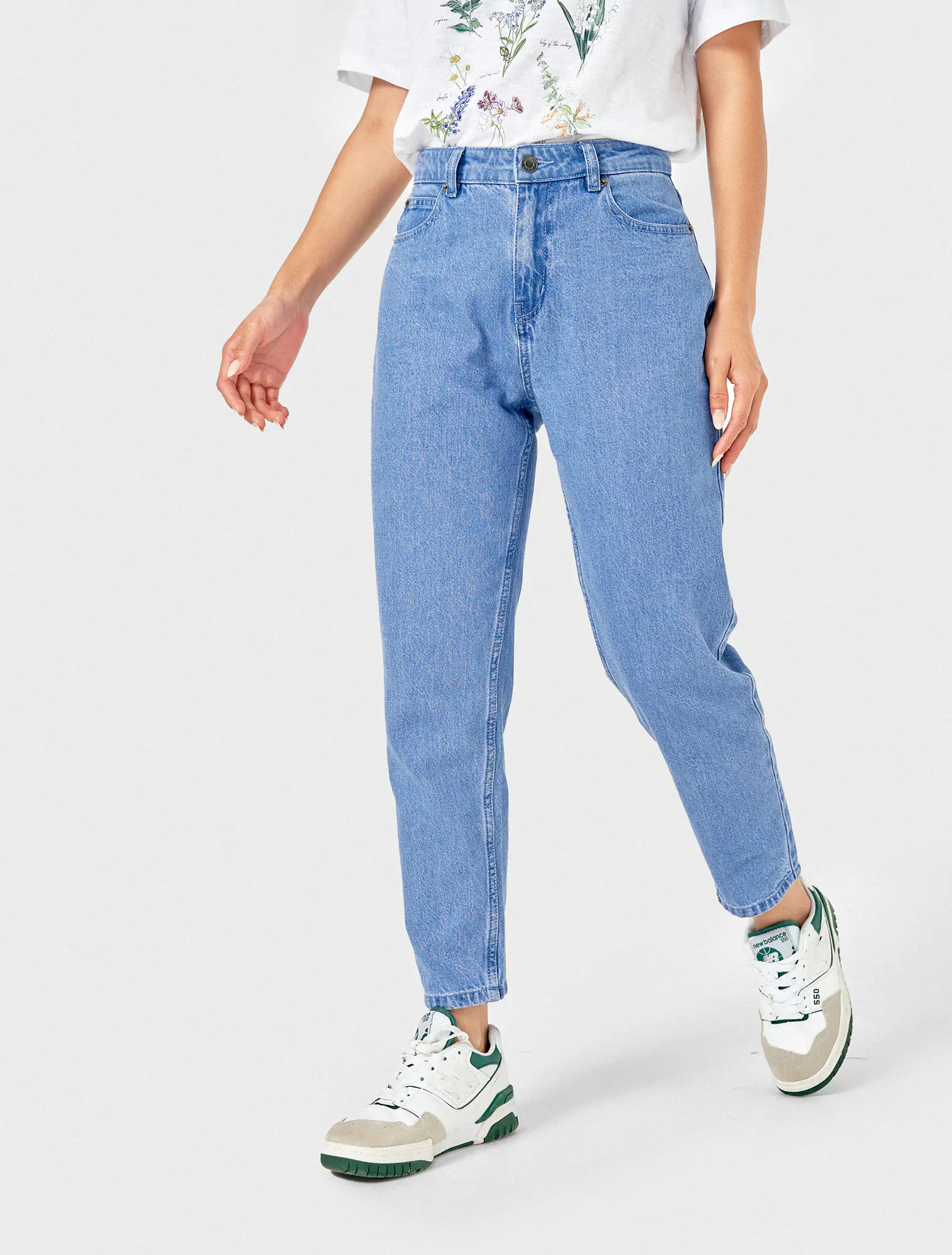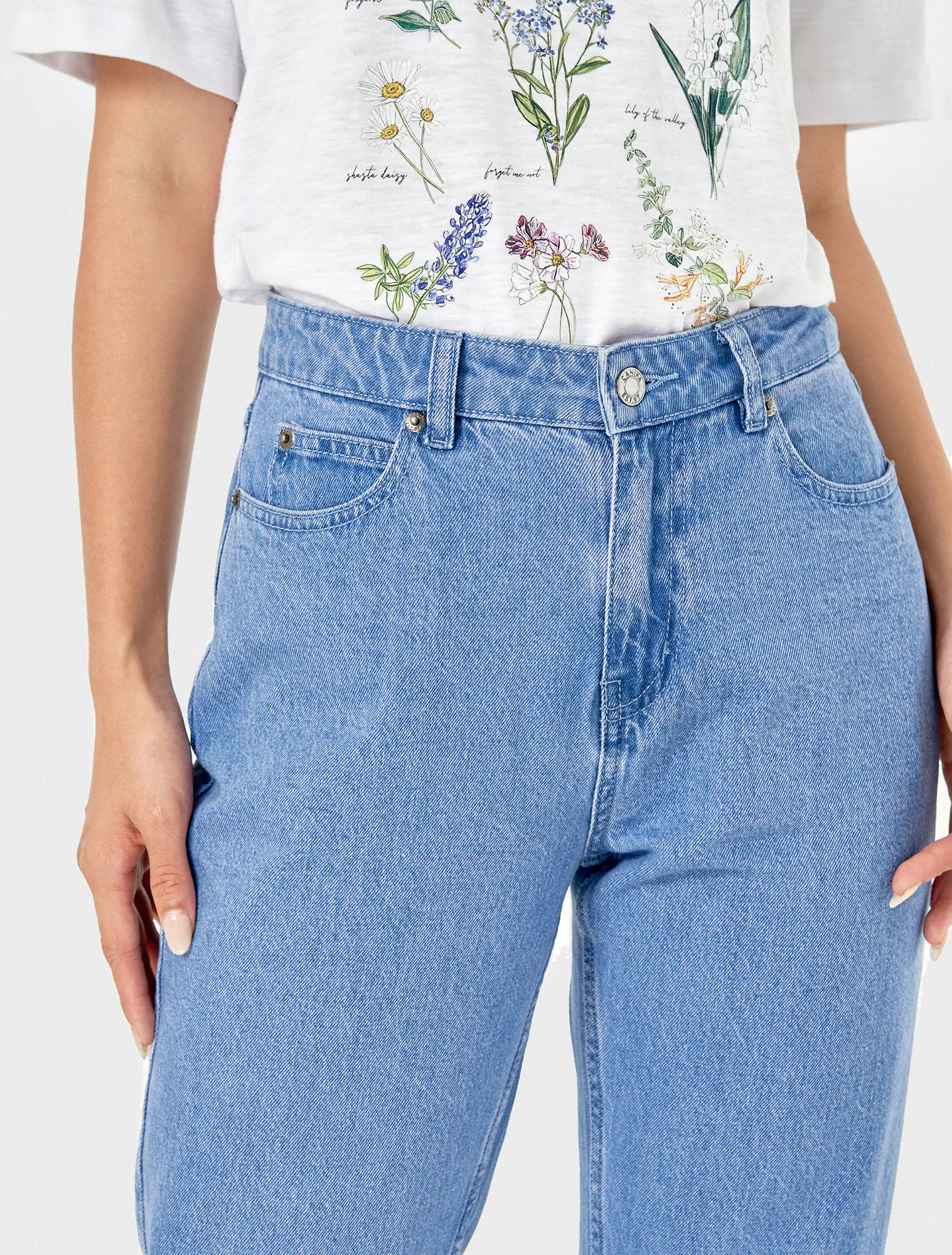 Quần jeans chất liệu 100% cotton, cạp thường cài cúc, có khoá, dáng boyfriend.
