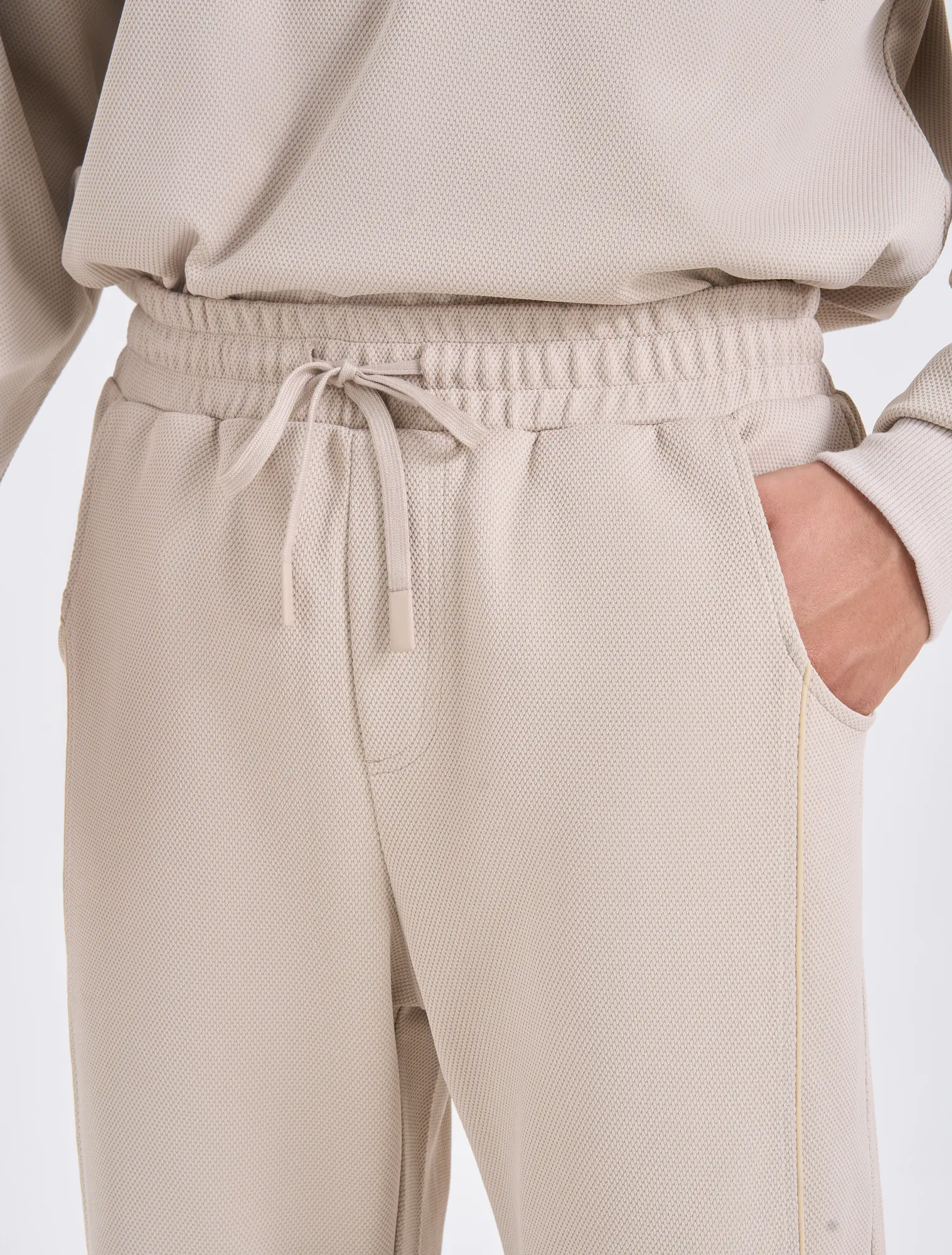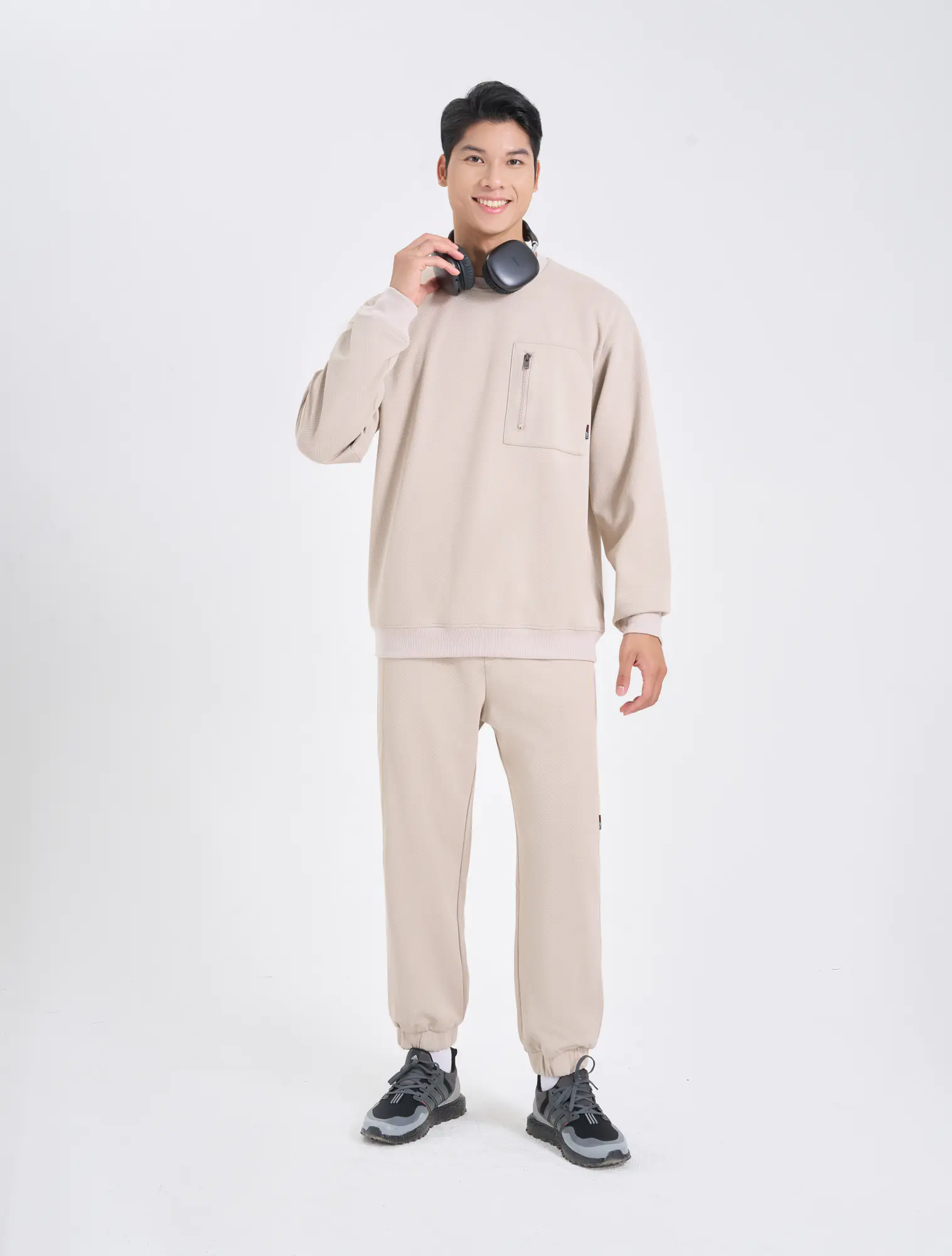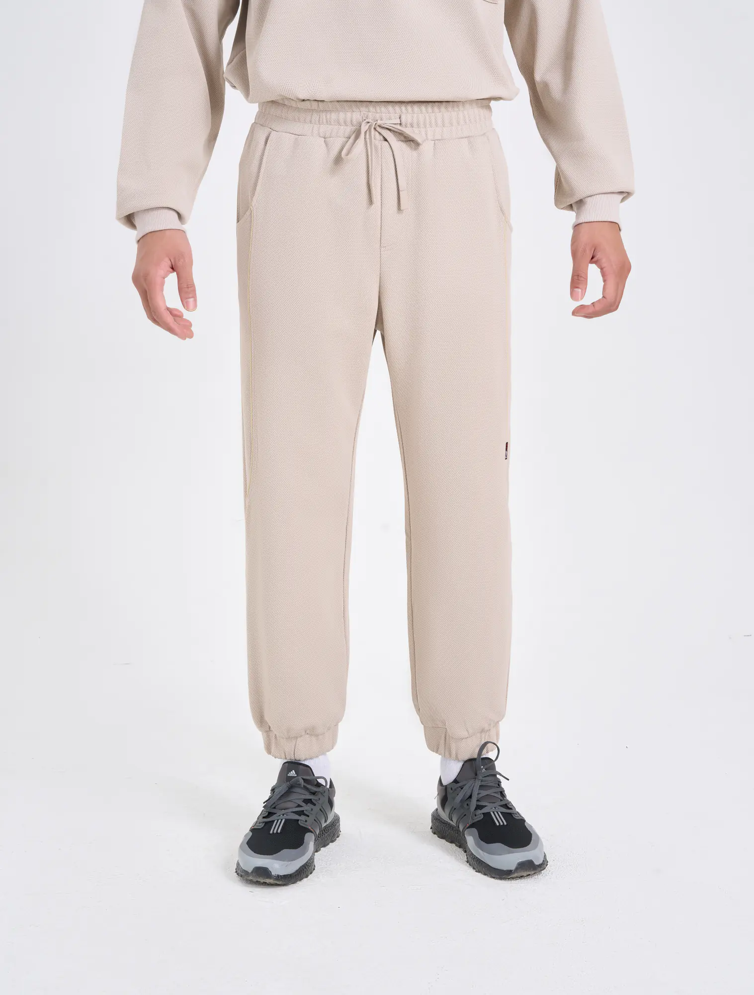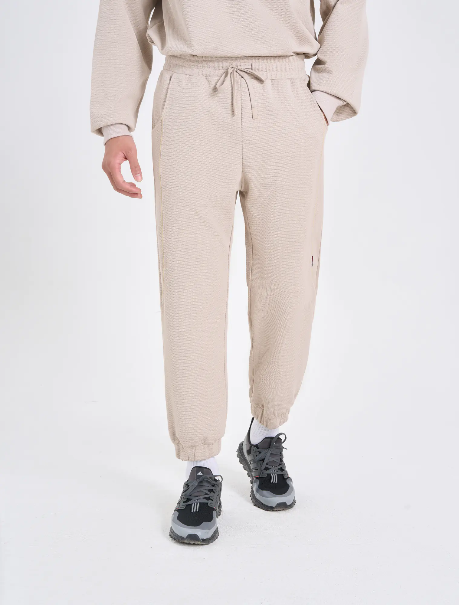 Quần nỉ jogger với phần bo ống ở gấu quần, kiểu dáng khỏe khoắn và nam tính. Độ dày vừa phải đảm bảo sự thoải mái và tiện lợi trong mọi hoạt động. Điểm nhấn đường can có phối lé bằng vải gió tạo cảm giác trẻ trung và nổi bật.