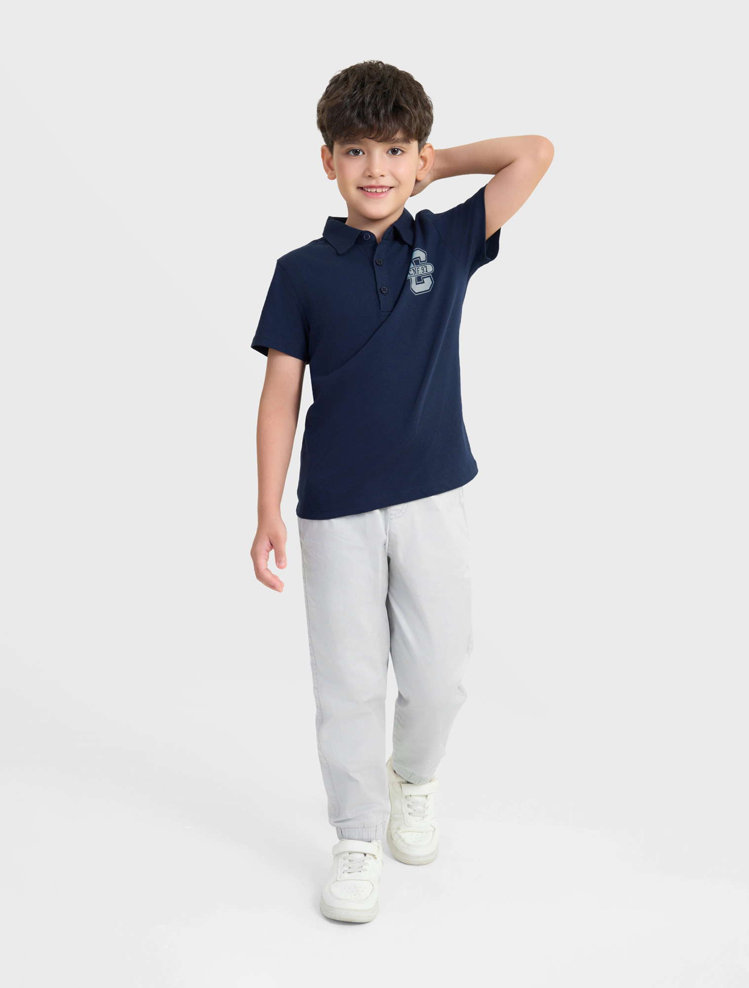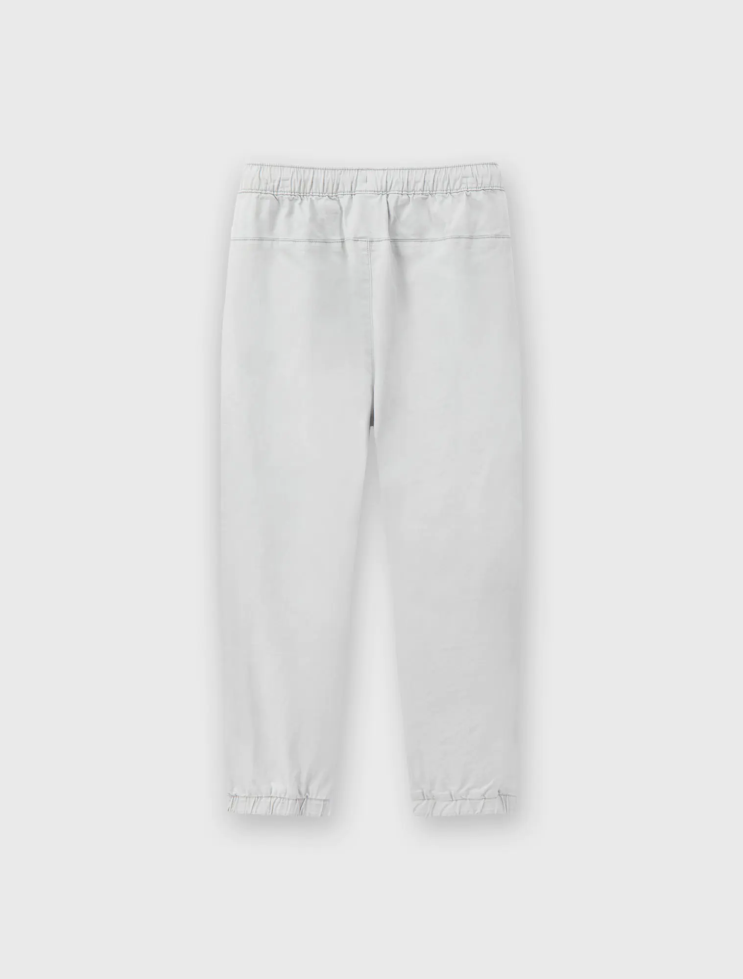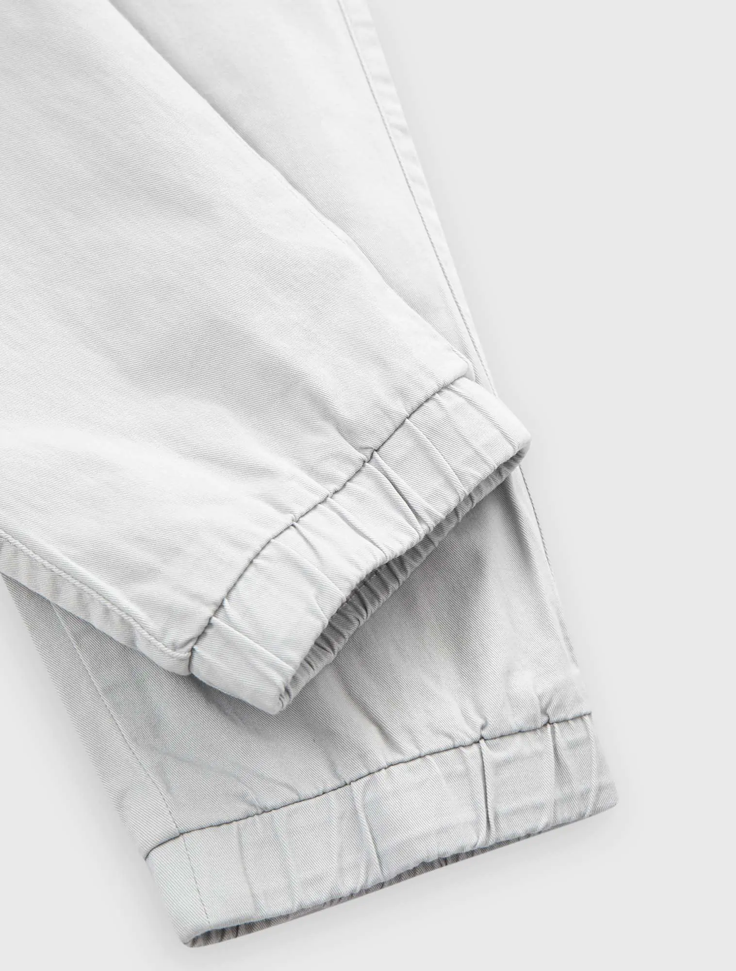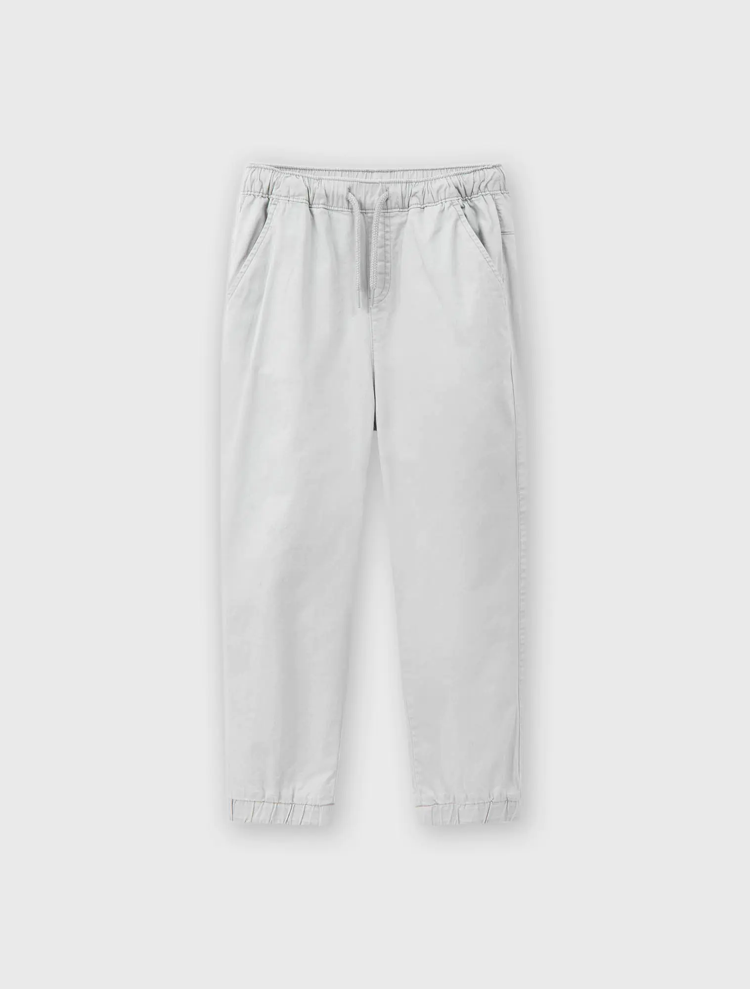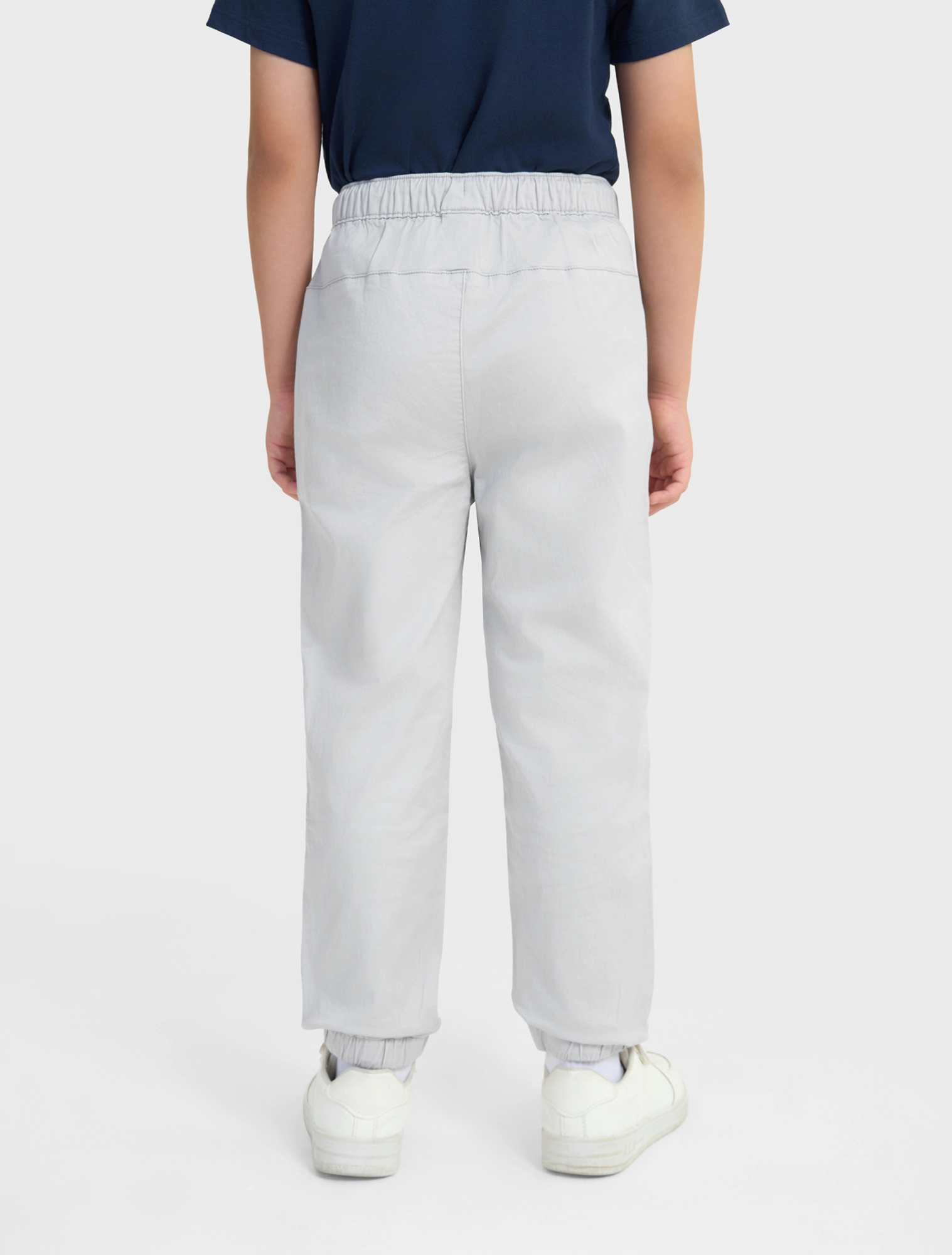 Quần khaki bé trai dáng jogger kiểu cơ bản có bo gấu và có dây rút điều chỉnh.