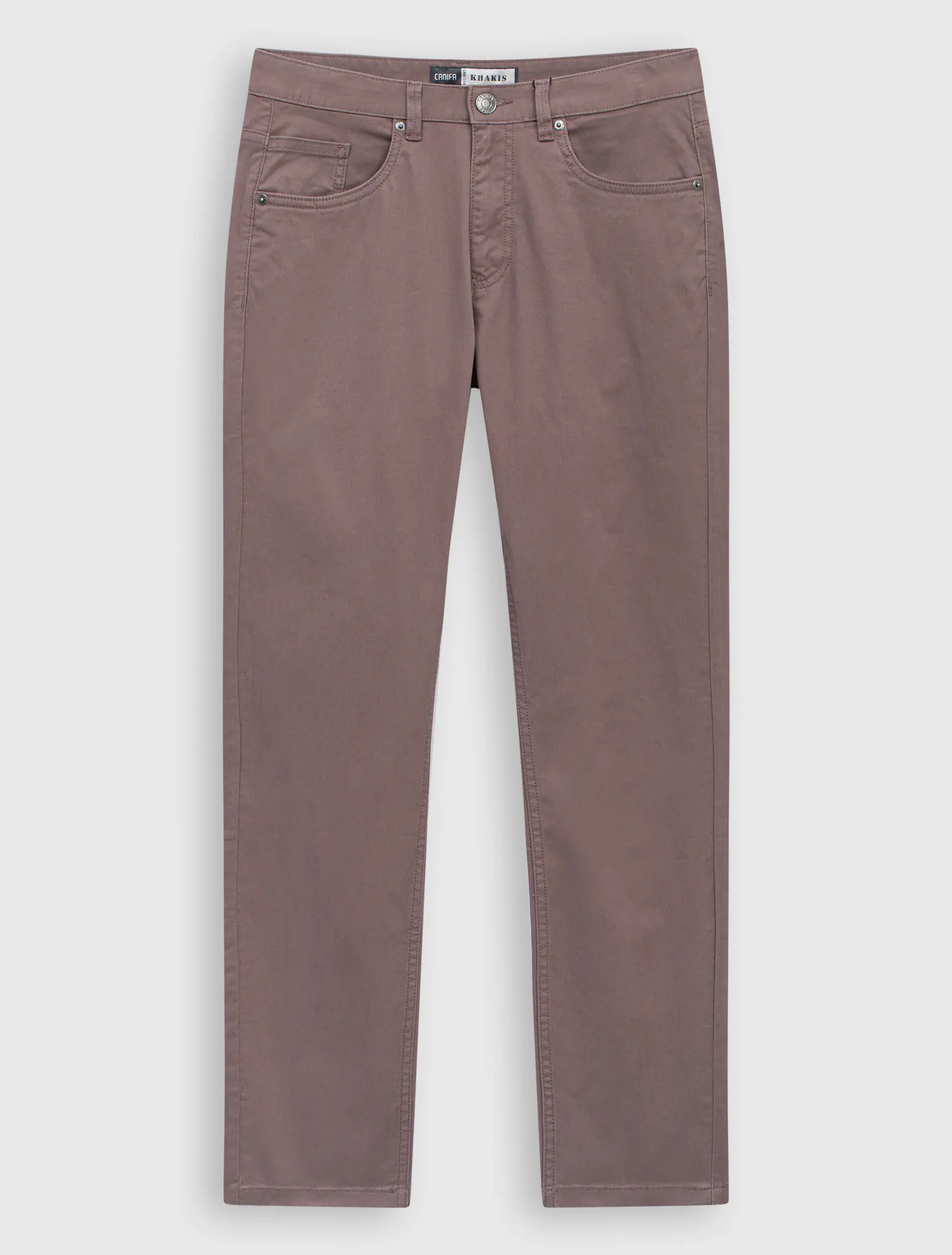 Quần khaki chất liệu cotton, cạp thường cài cúc, phom ôm.