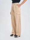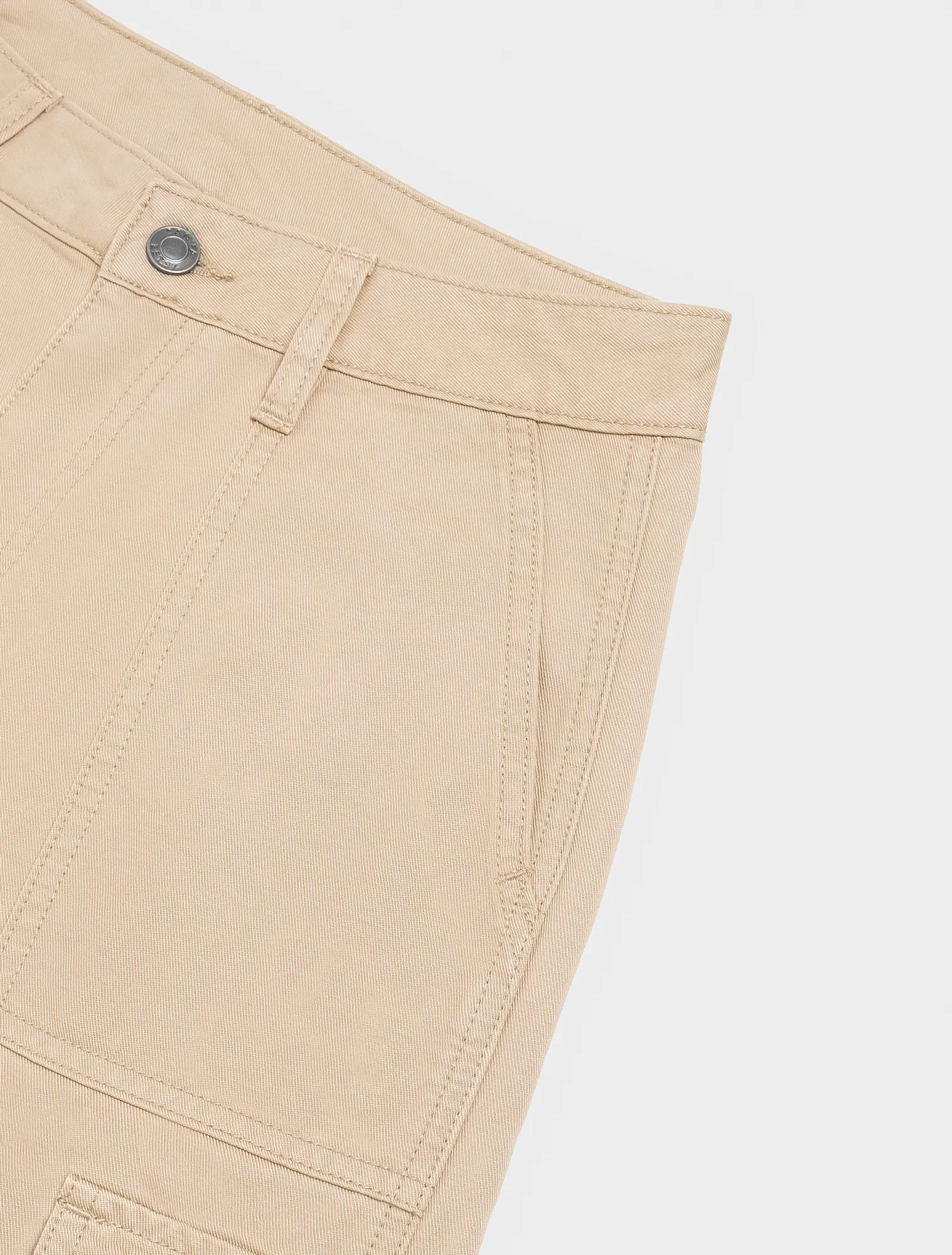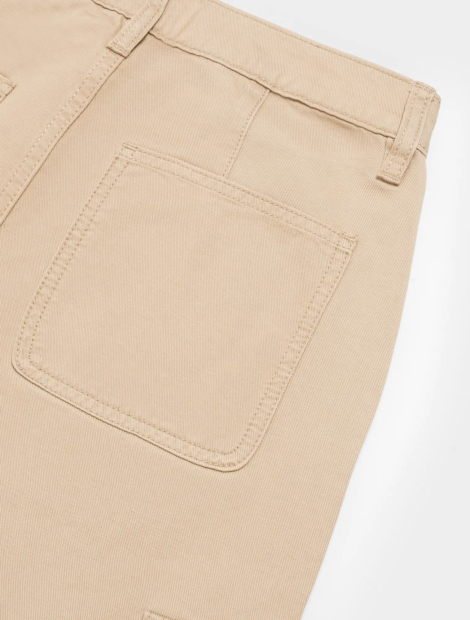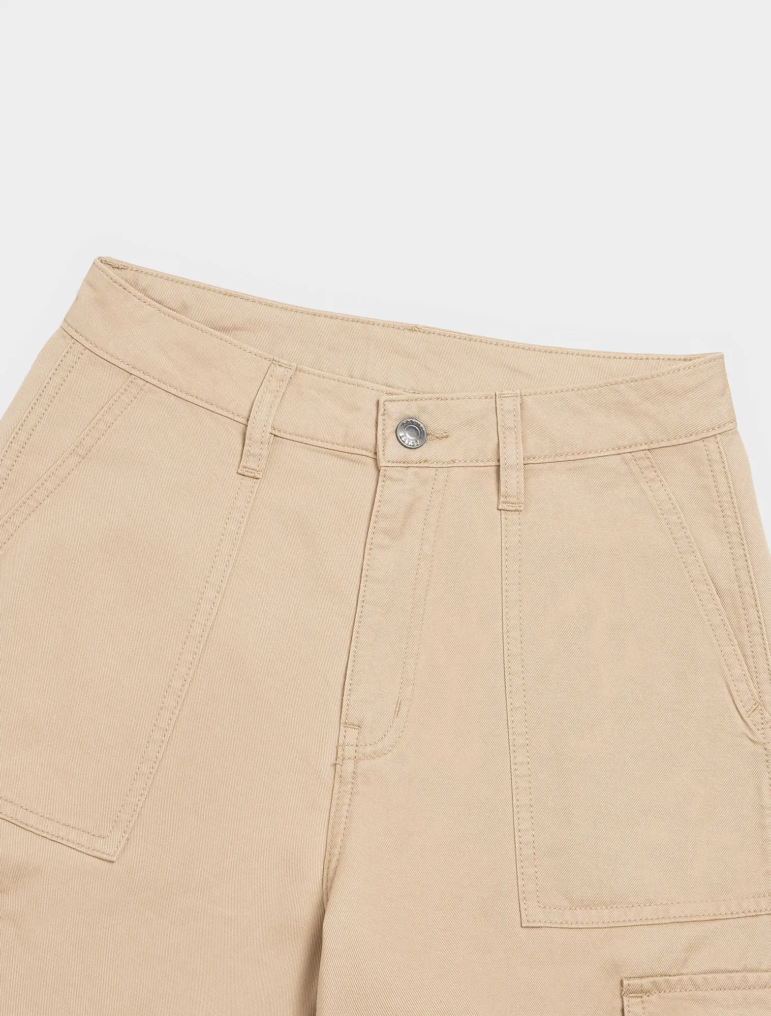 Quần dài khaki nữ dáng suông, với thiết kế túi hộp và điểm nhấn phối chỉ cá tính.