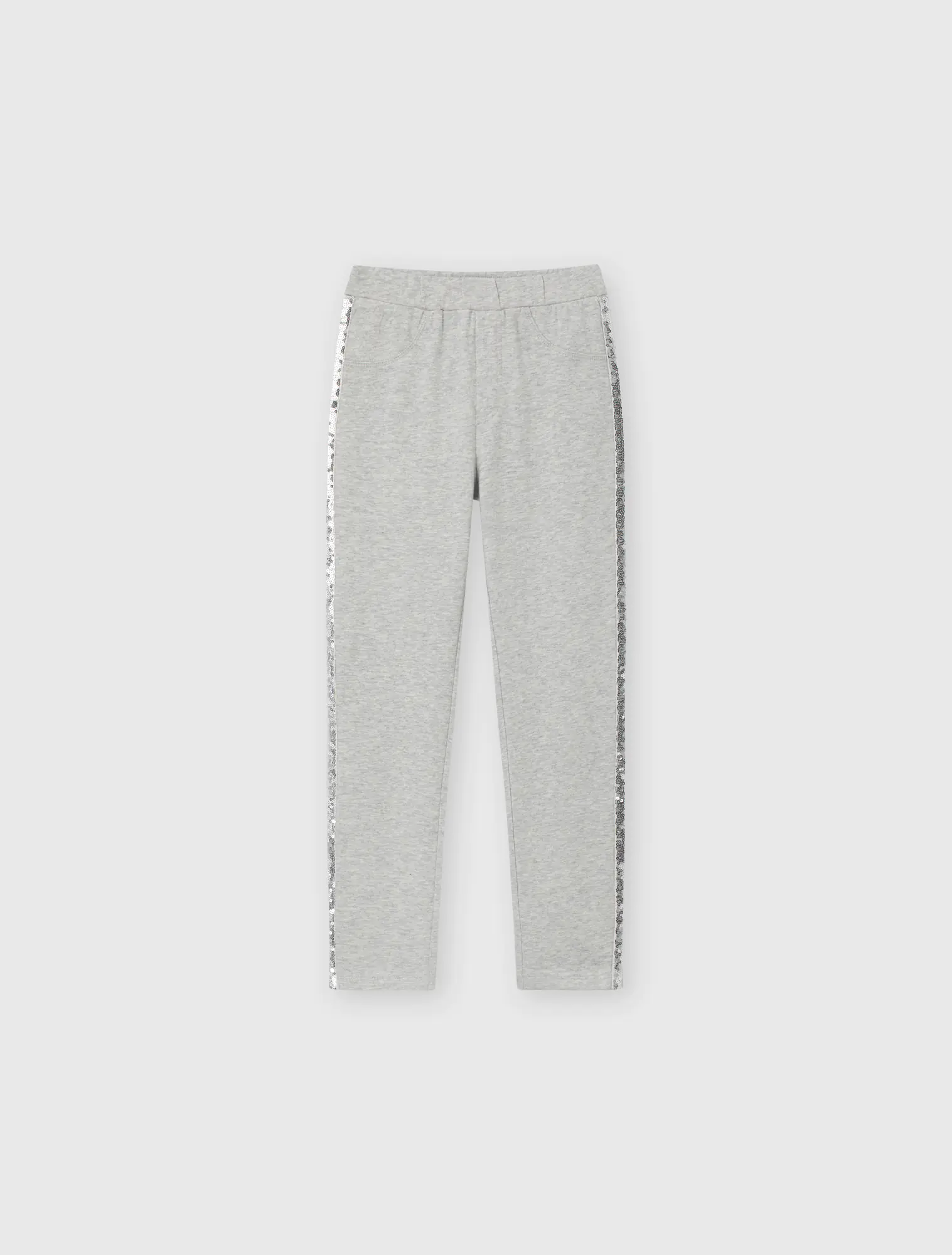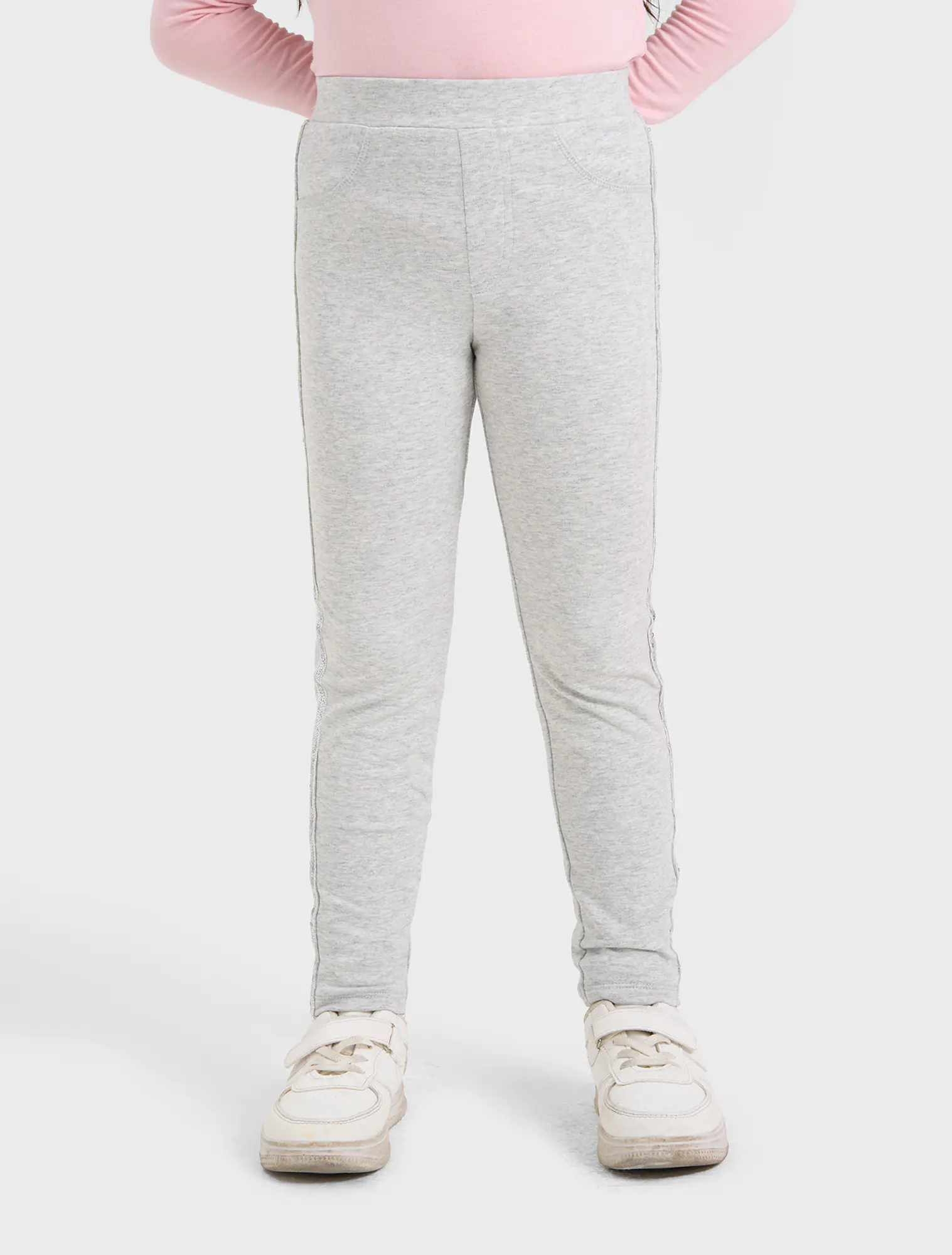 Quần legging mặt trong cà lông nhẹ ấm áp, 2 bên sườn quần trang trí dây dệt kim sa lấp lánh điệu đà.