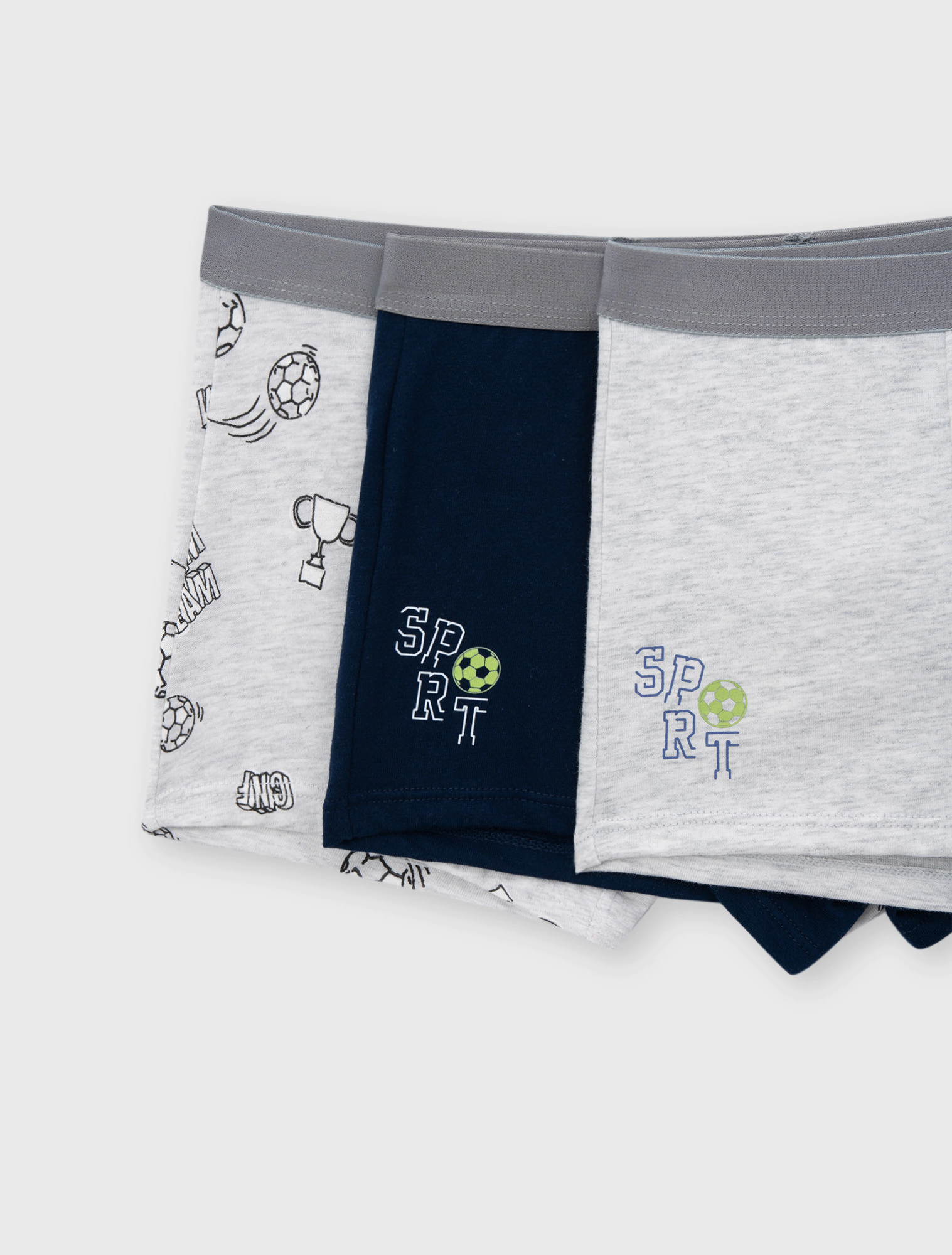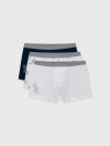 Pack 3 quần lót dáng trunk bé trai thiết kế che phủ rộng, chất liệu cotton spandex mềm mại và co giãn giúp bé thoải mái vận động khám phá hàng ngày.