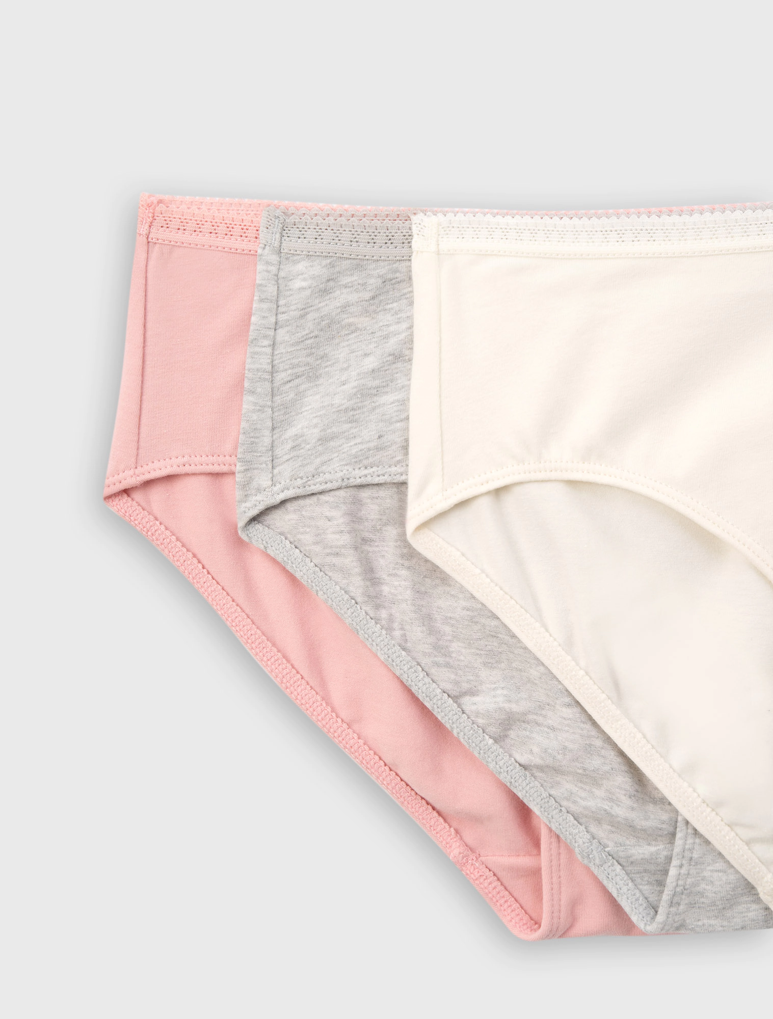 Set 3 quần lót nữ, chất liệu cotton co dãn thoải mái, thấm hút và thoáng mát.