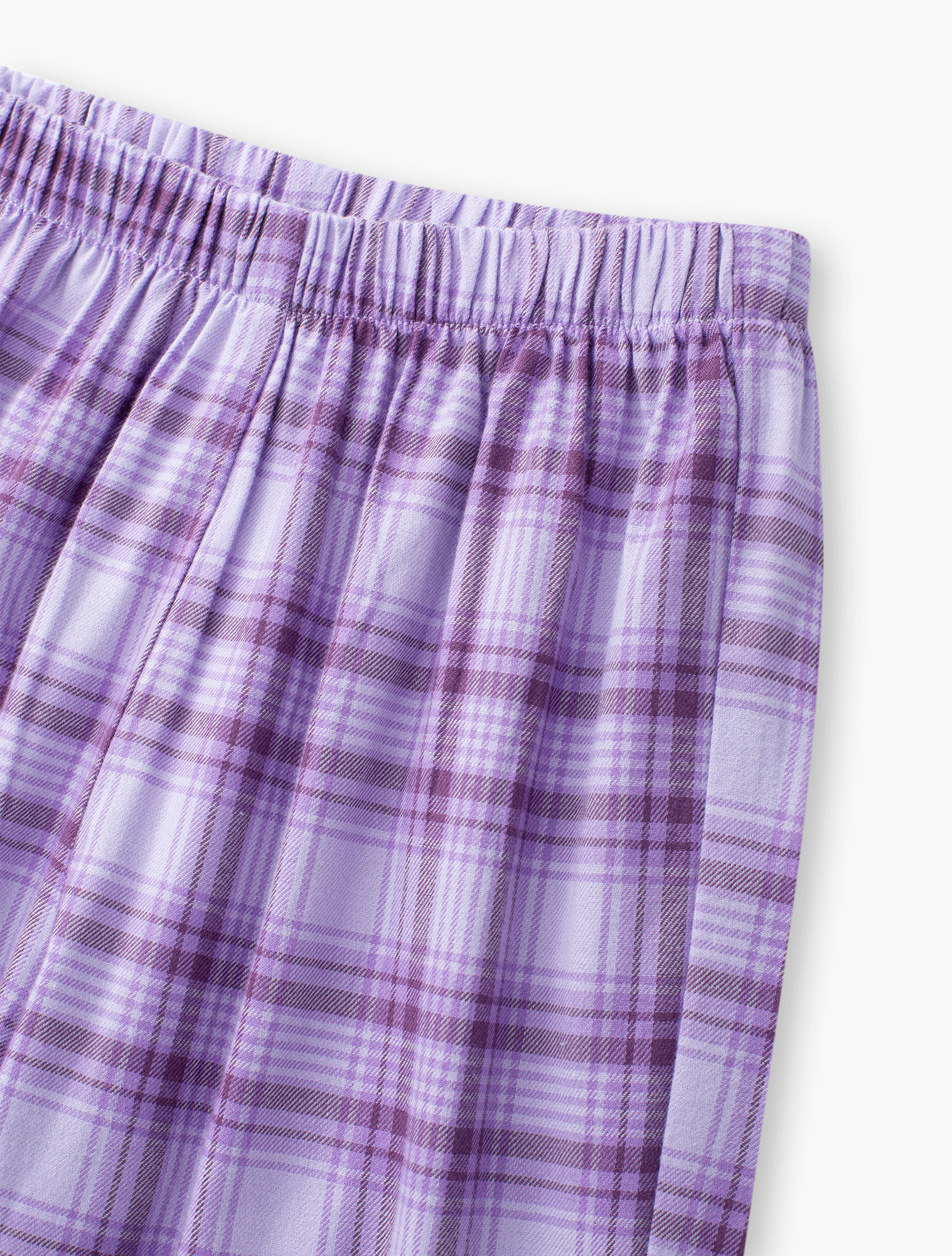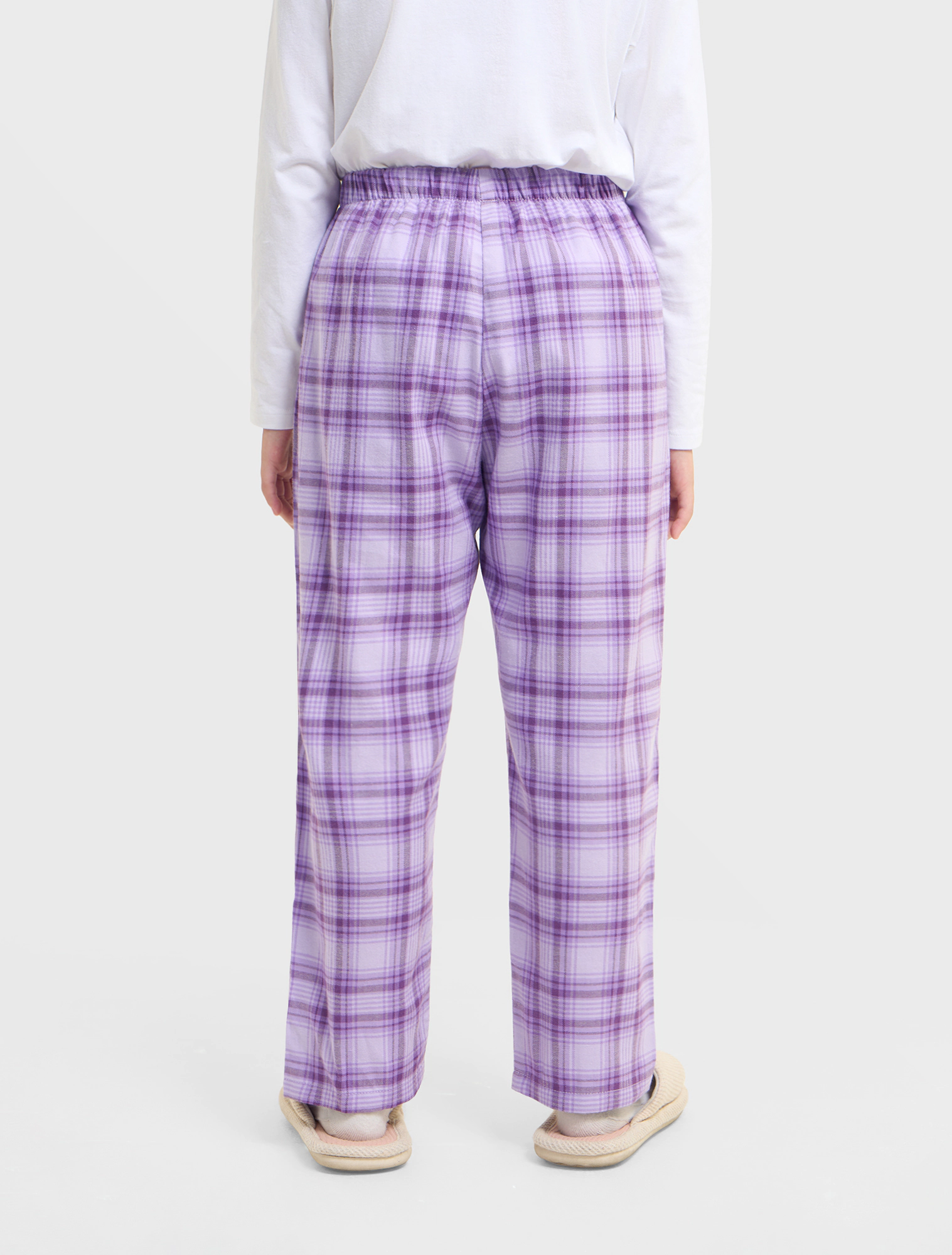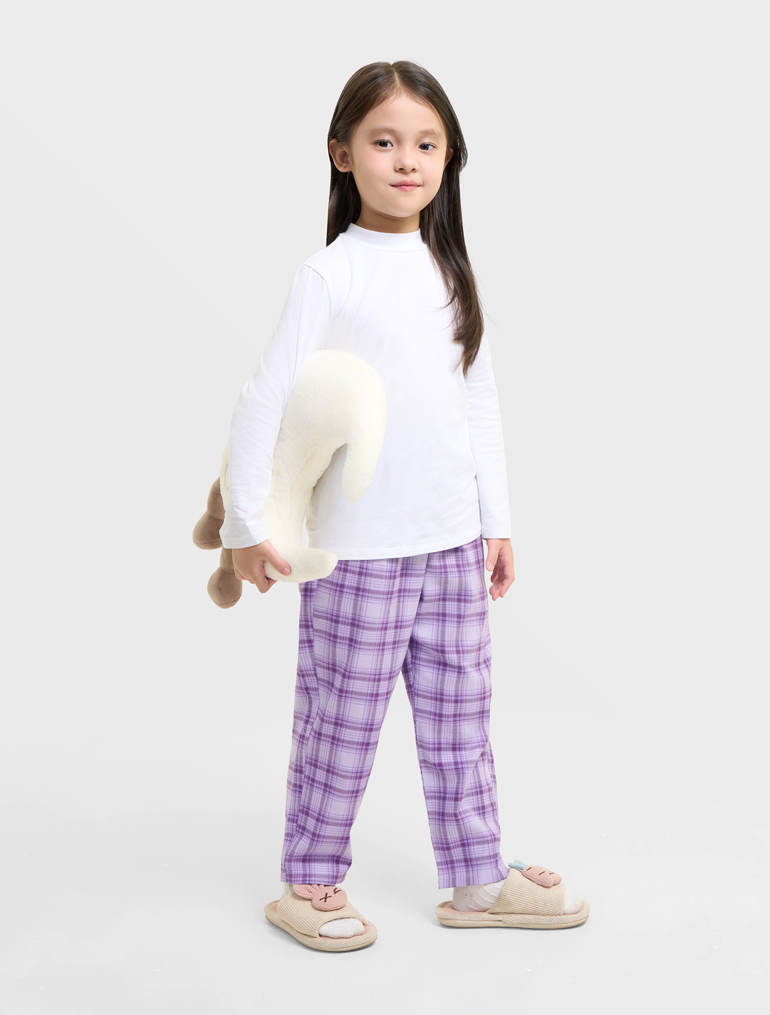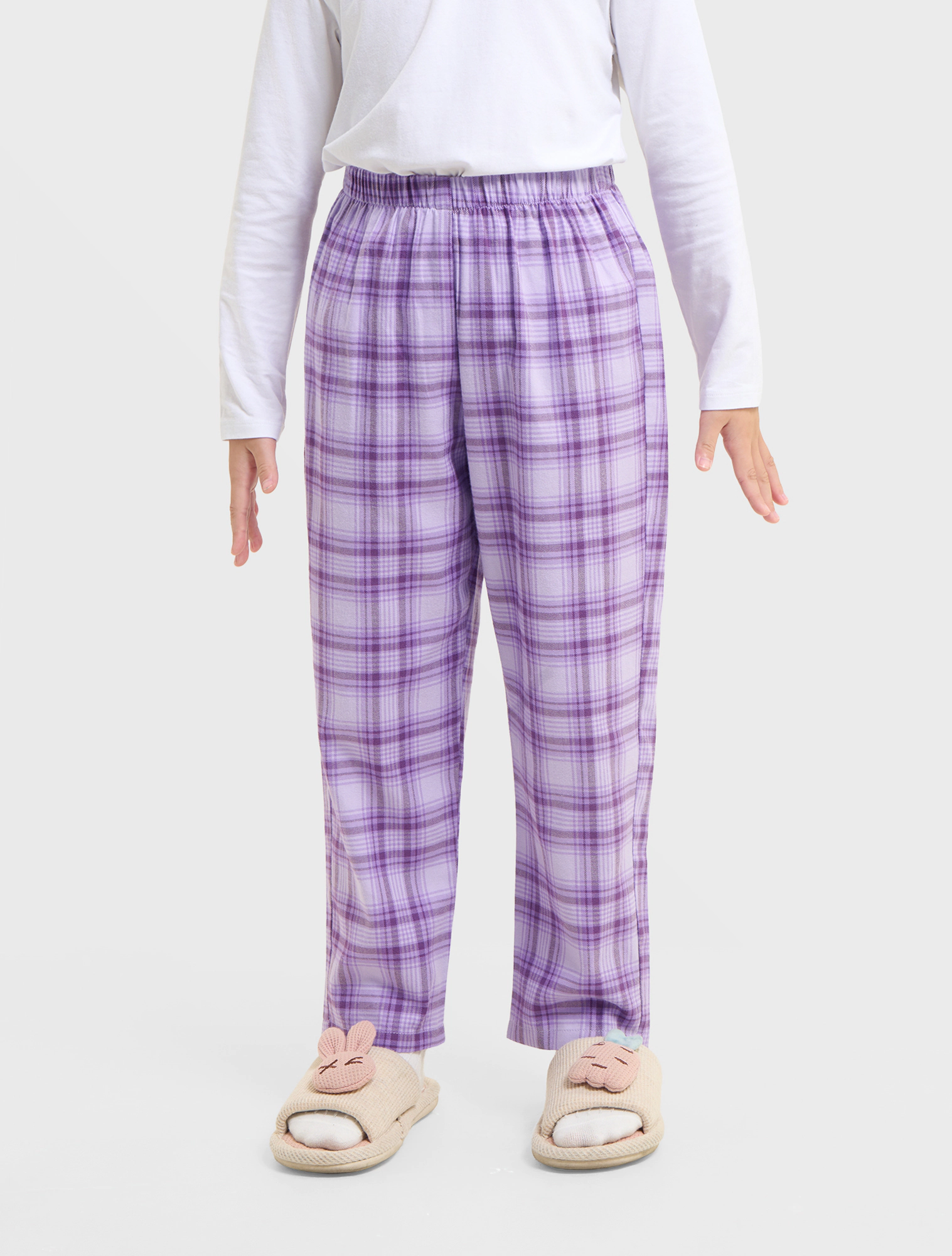 Quần mặc nhà bé gái dáng suông với họa tiết kẻ dễ thương.