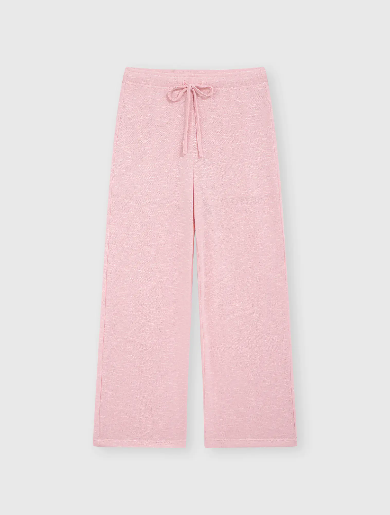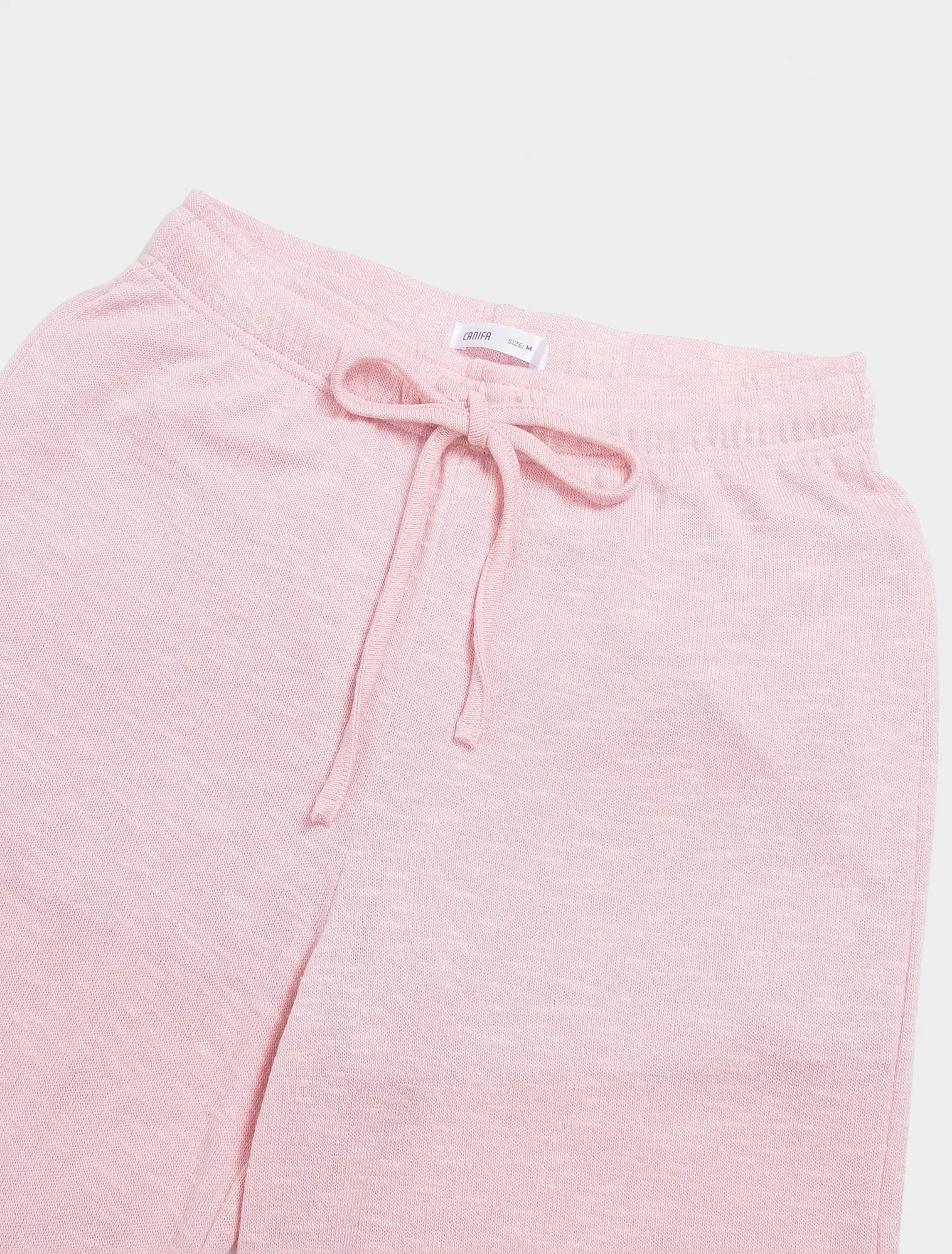 Quần mặc nhà dáng suông rủ vừa phải, gọn gàng nhưng vẫn rộng rãi thoải mái. Nguyên liệu dệt kim giả len mềm mại, ấm áp, mỏng nhẹ tạo cảm giác dễ chịu khi mặc, phù hợp các hoạt động nghỉ ngơi.