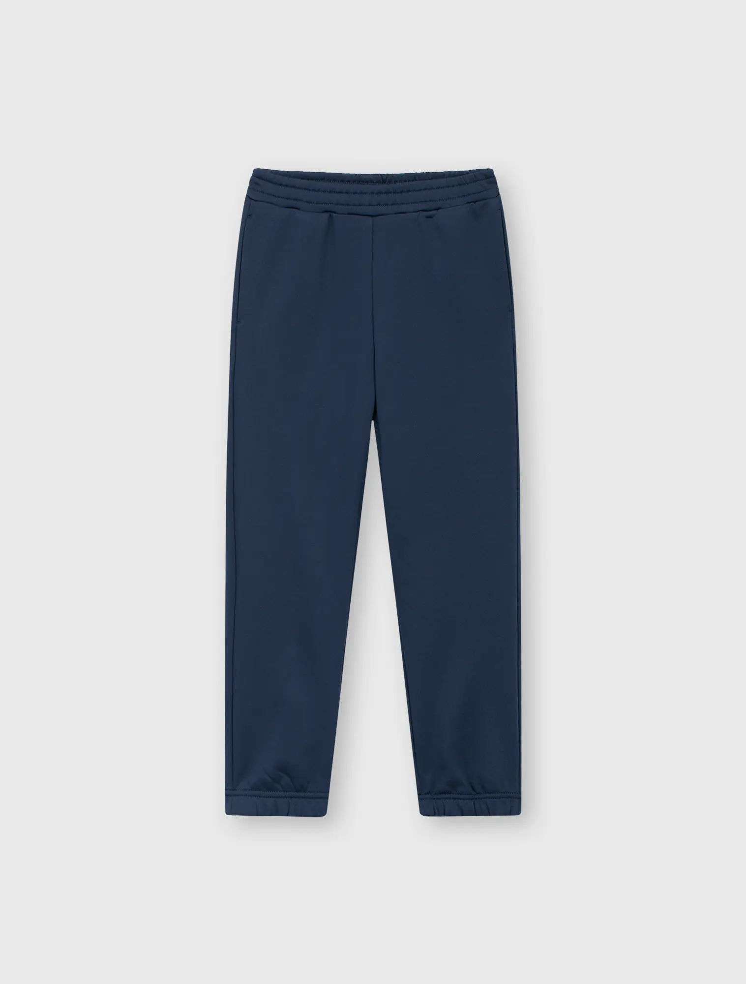 Quần nỉ bé gái phom dáng regular cơ bản, chất liệu 100% polyester tạo sự thoải mái cho trẻ vận động.