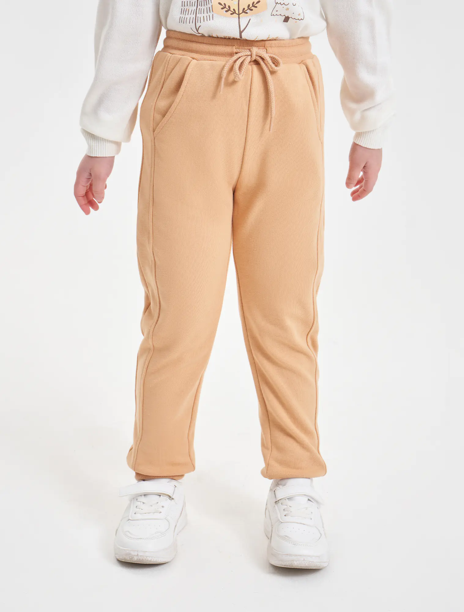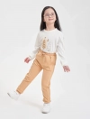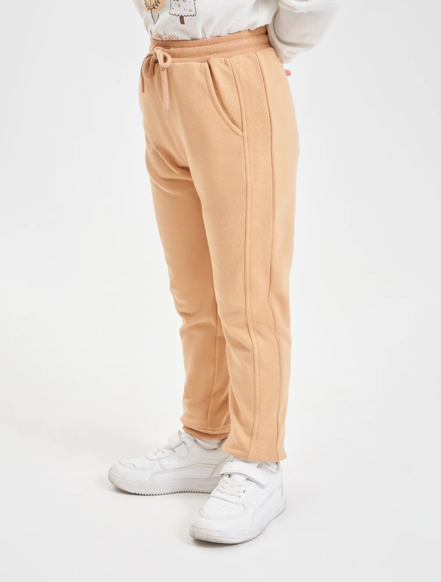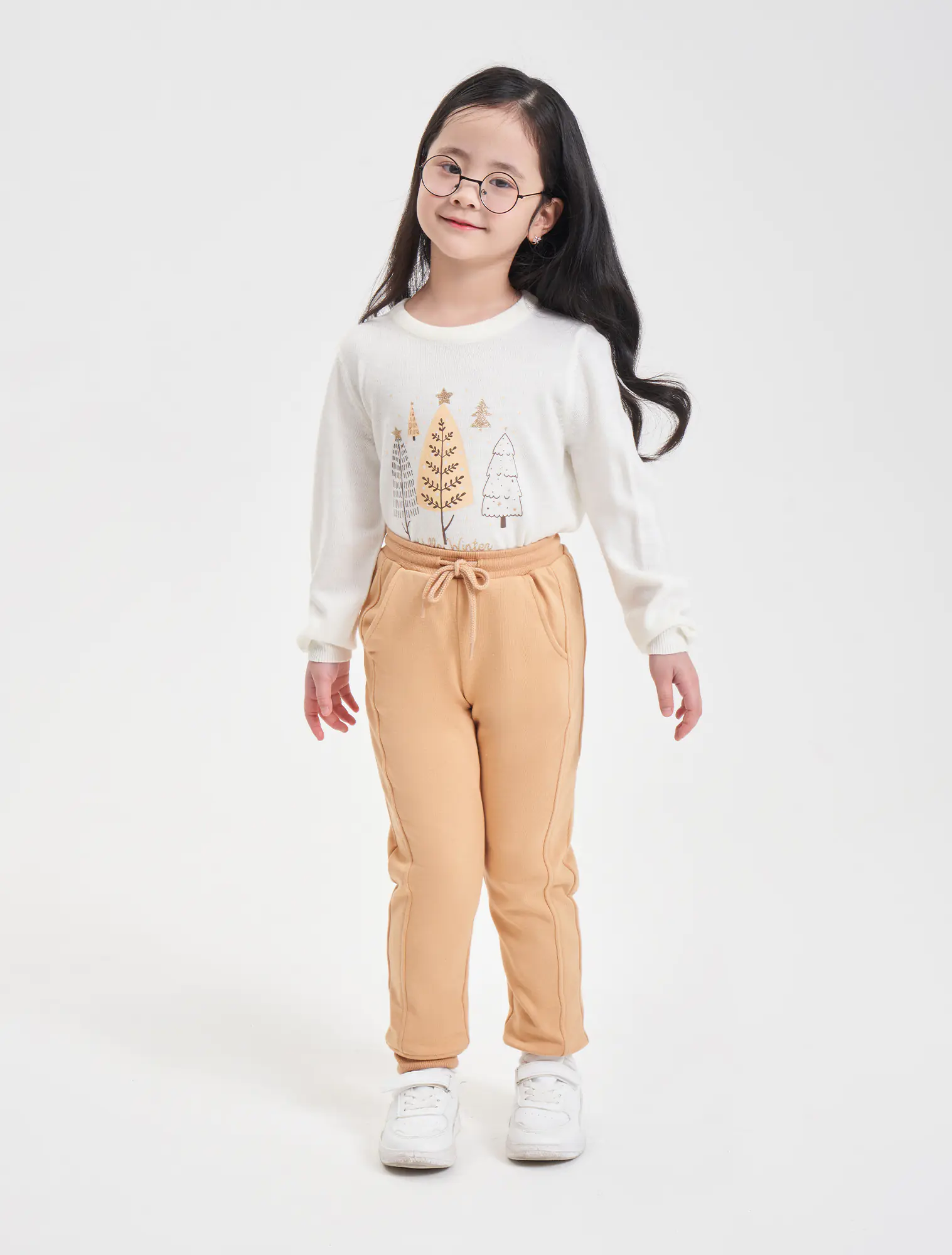 Quần nỉ bé gái bo gấu, có đường can dọc ống quần.