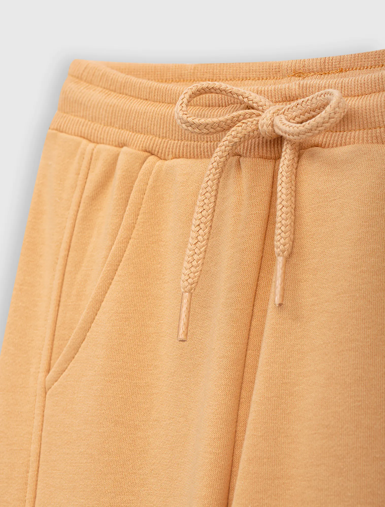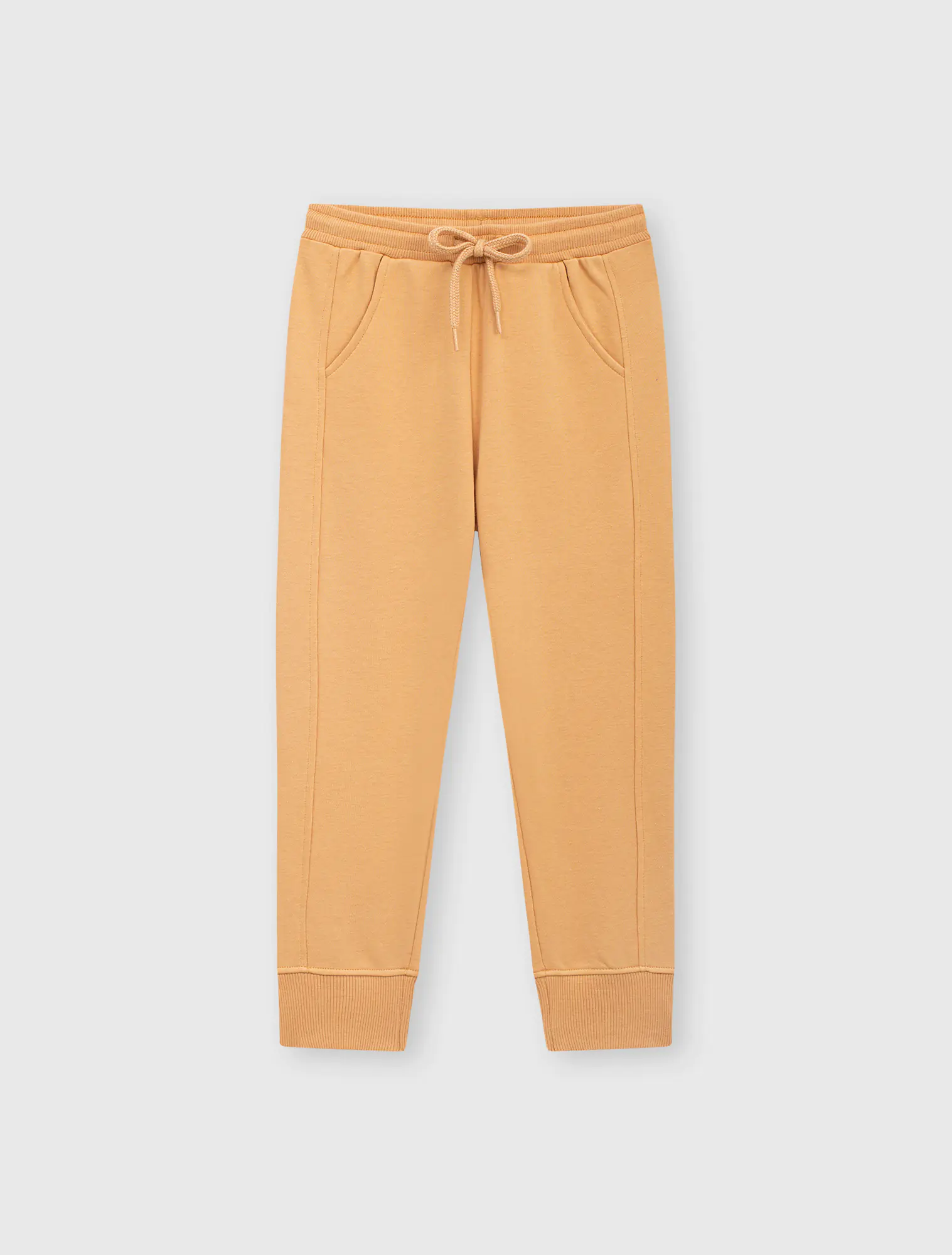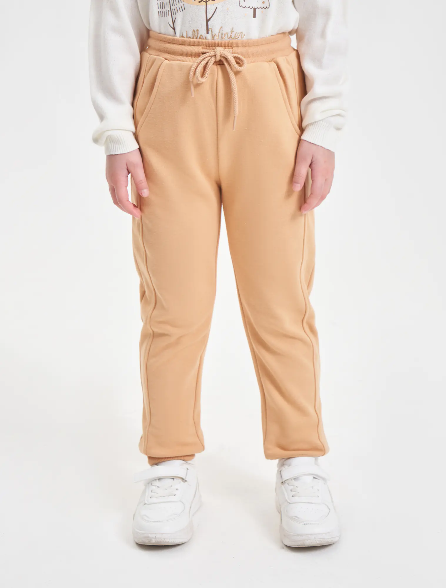 Quần nỉ bé gái bo gấu, có đường can dọc ống quần.