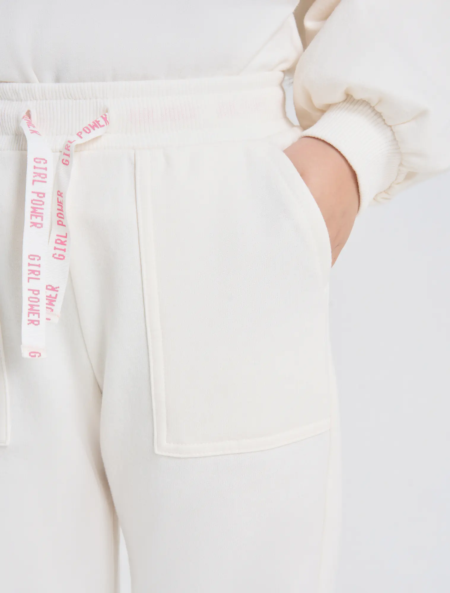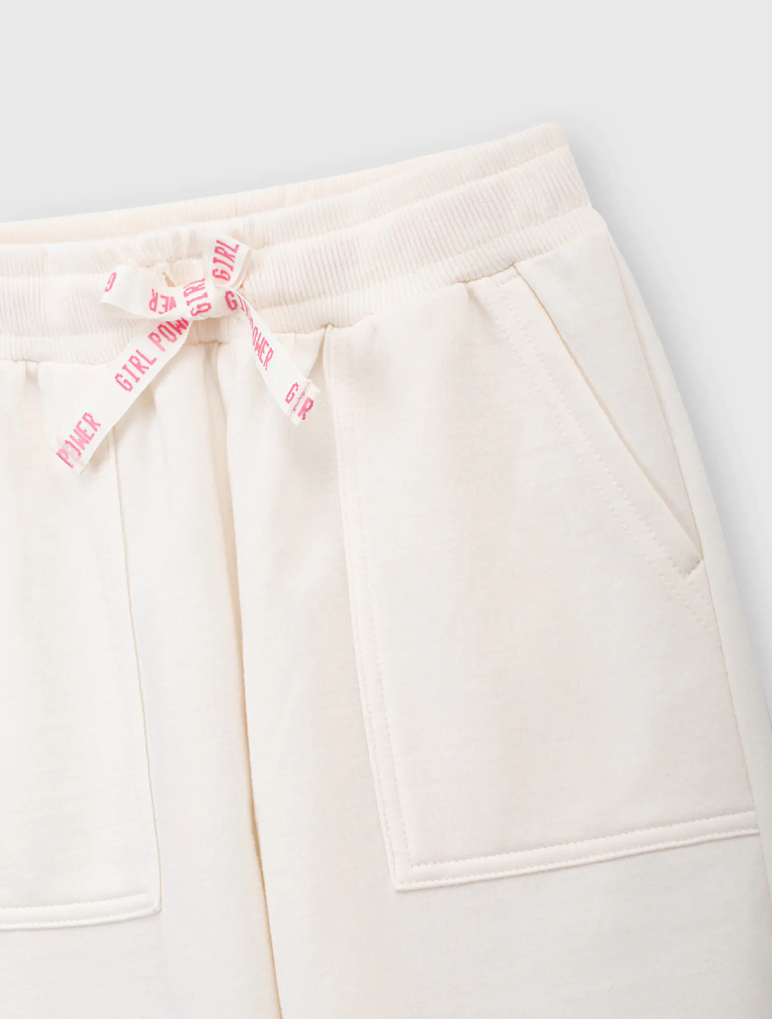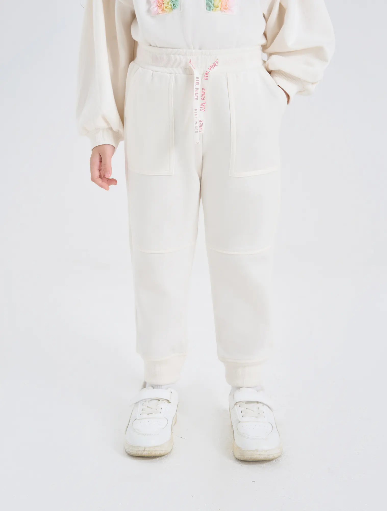 Quần dài jogger bé gái. Phom dáng cơ bản dễ kết hợp, màu sắc tươi sáng, bảng màu phong phú. Dây dệt cạp quần in chữ mới lạ, thời trang.