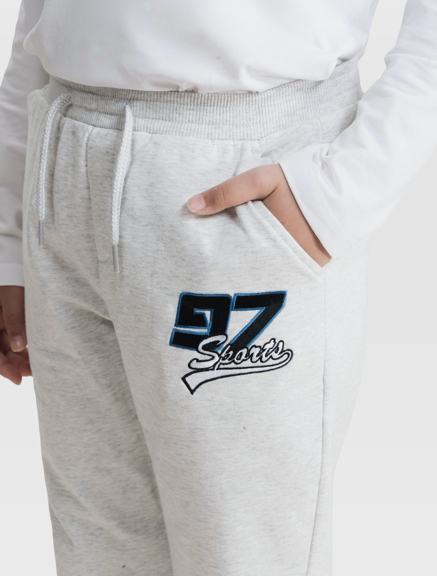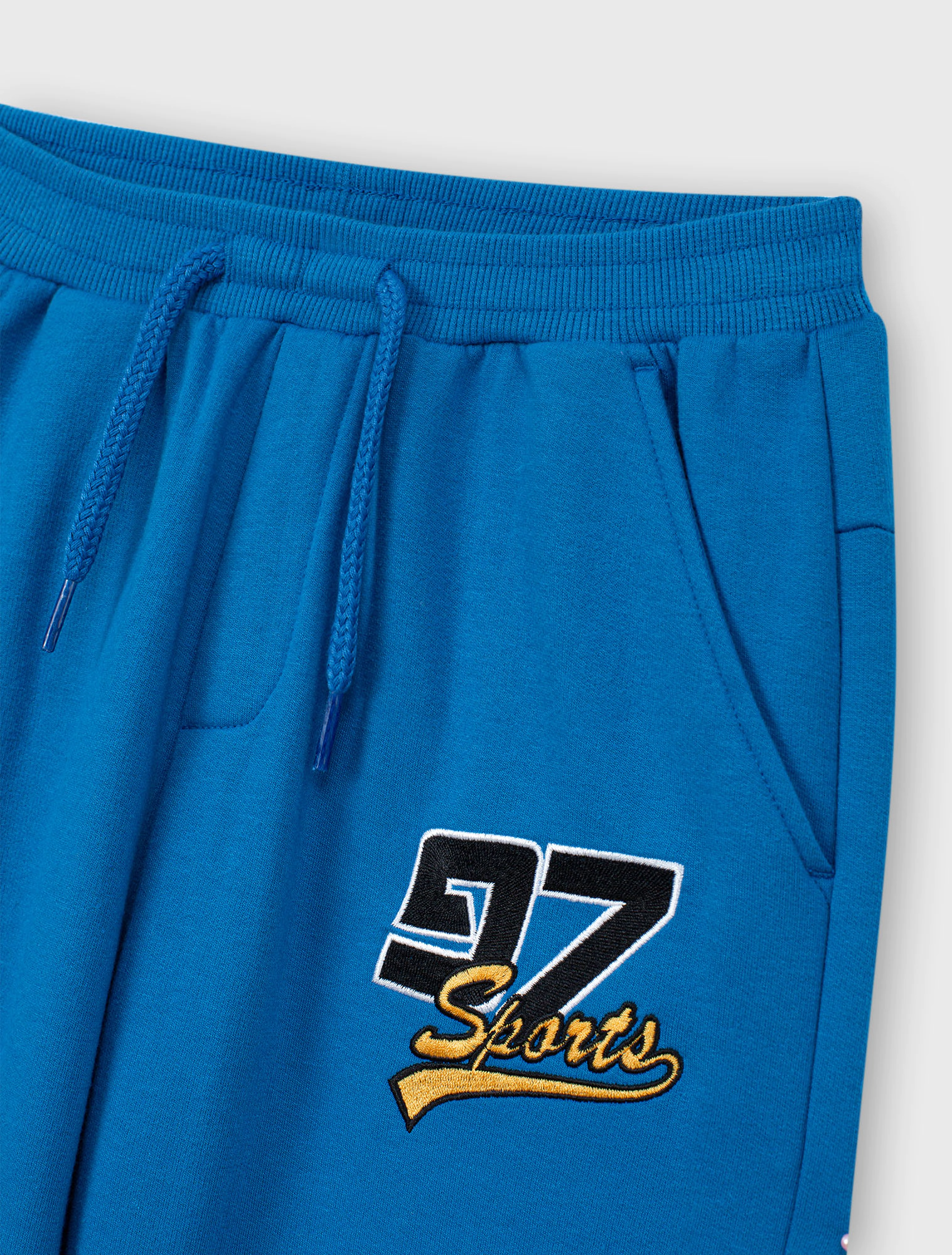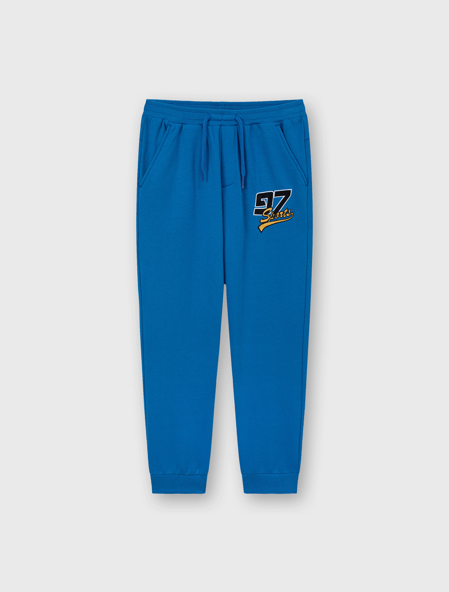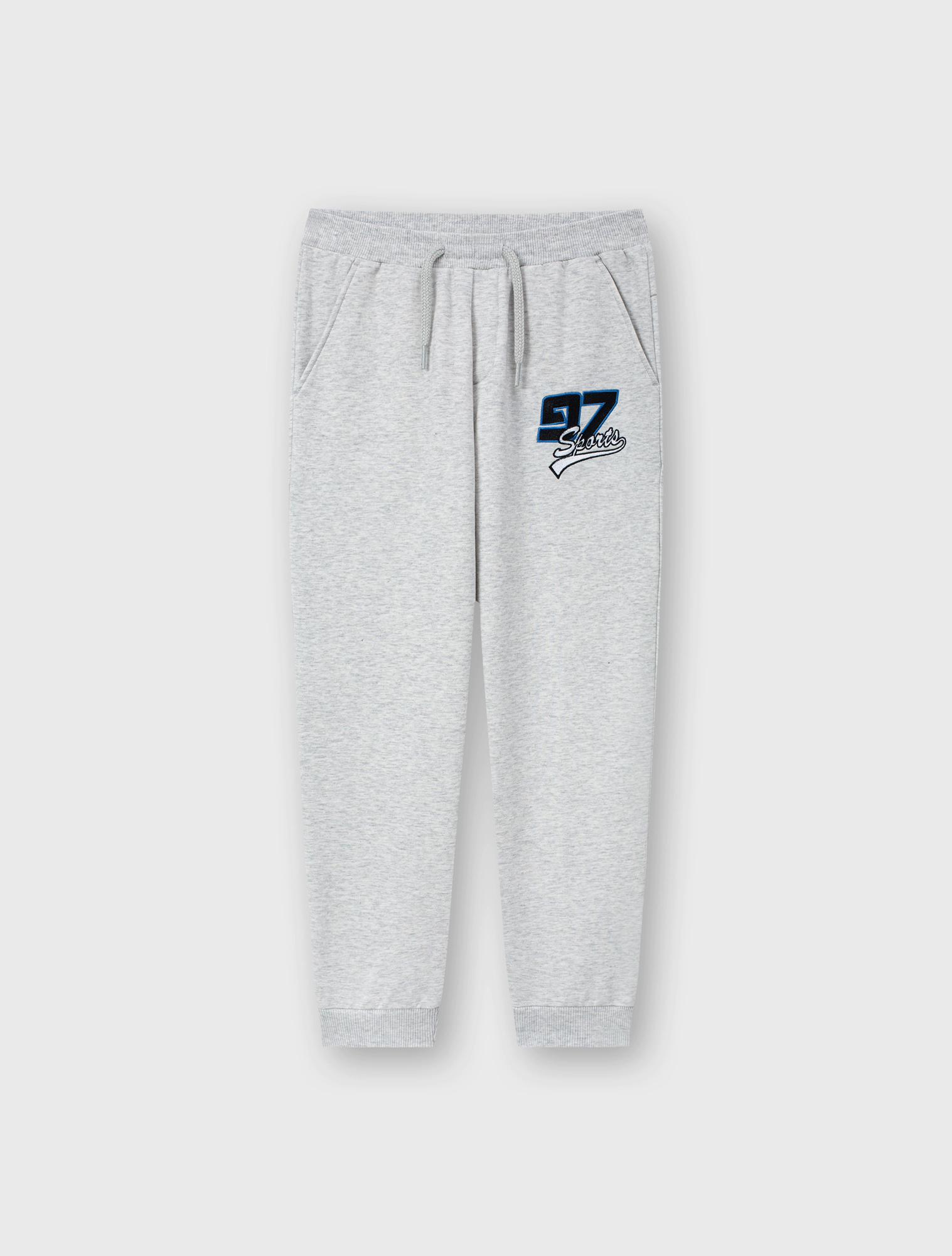 Quần dài bé trai có hình in thêu, phom dáng cơ bản, chất liệu vảy cá, hình in thêu sport khỏe khoắn cho các bé.