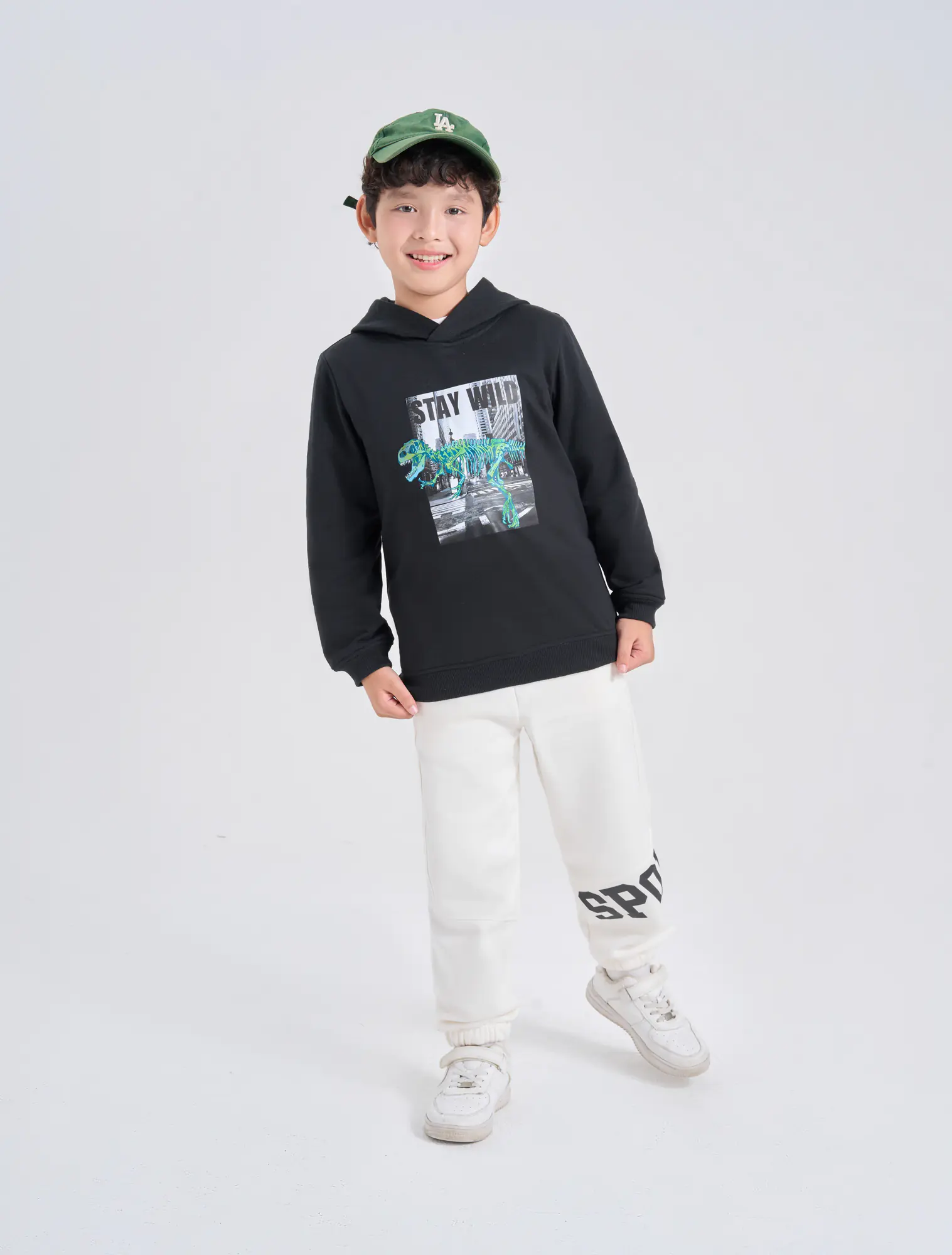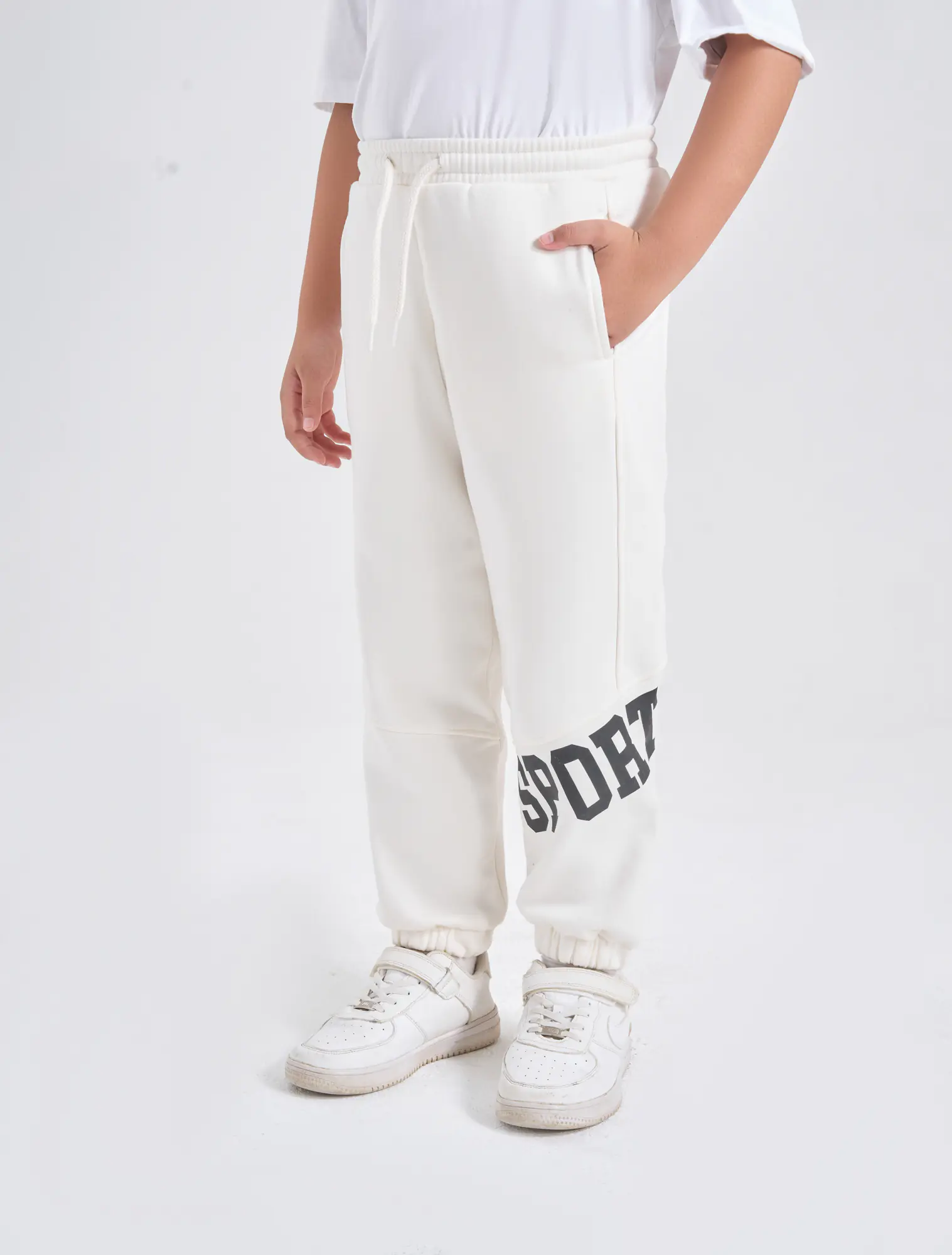 Quần nỉ bé trai, chất liệu cào bông, phom dáng relax thoải mái, hình in khỏe khoắ năng động.