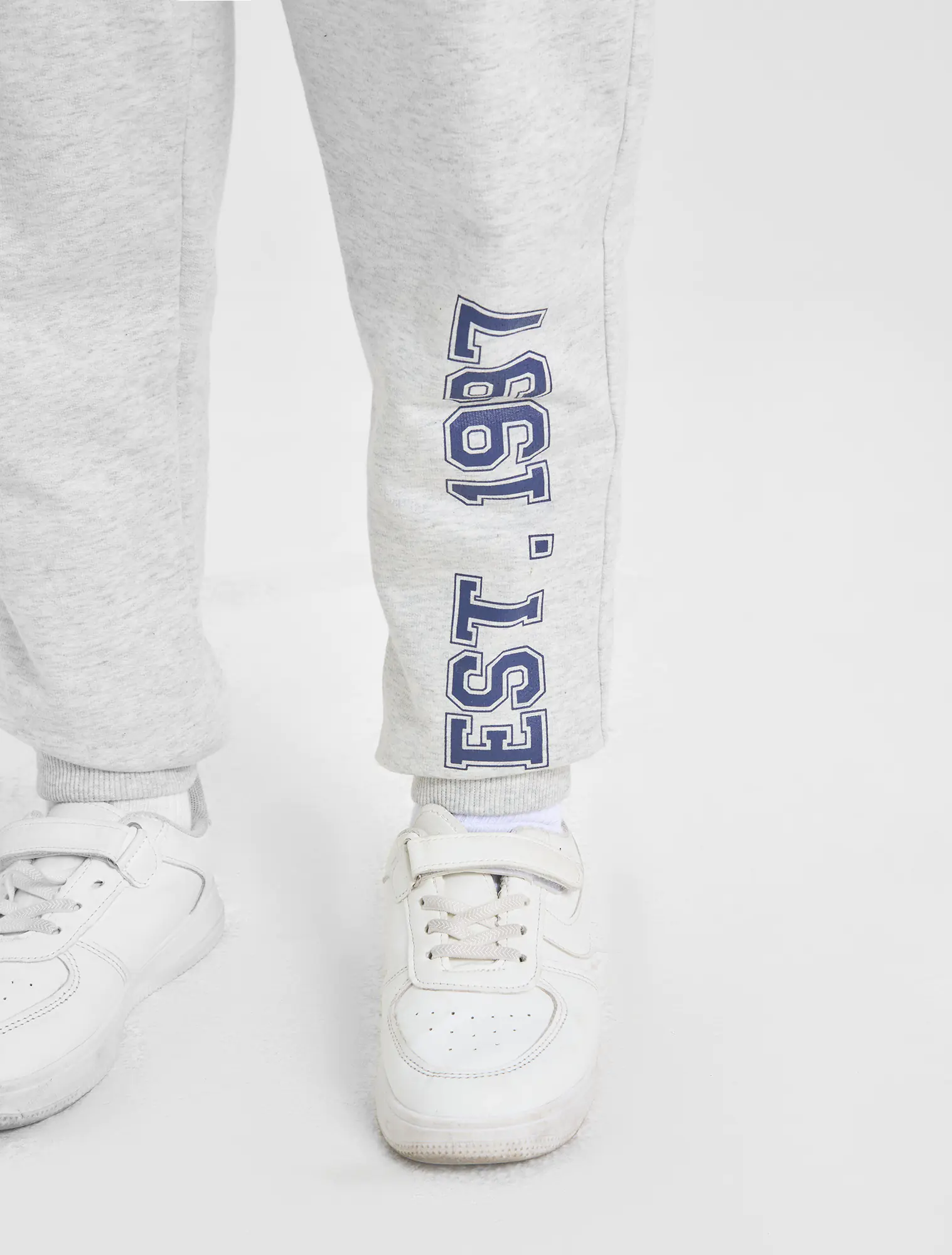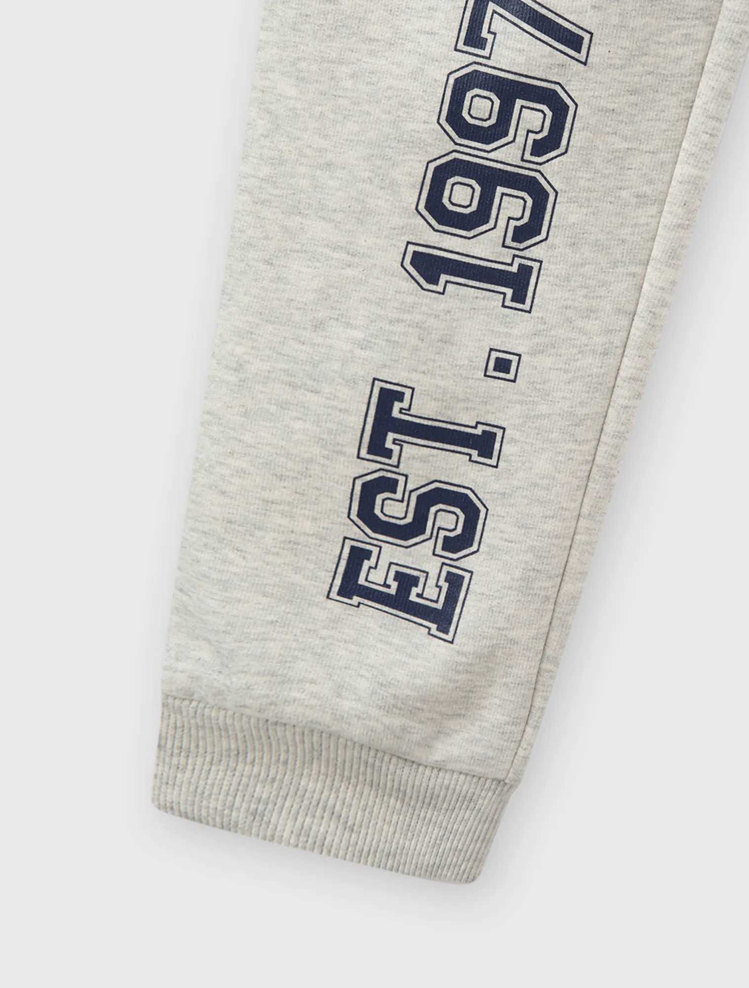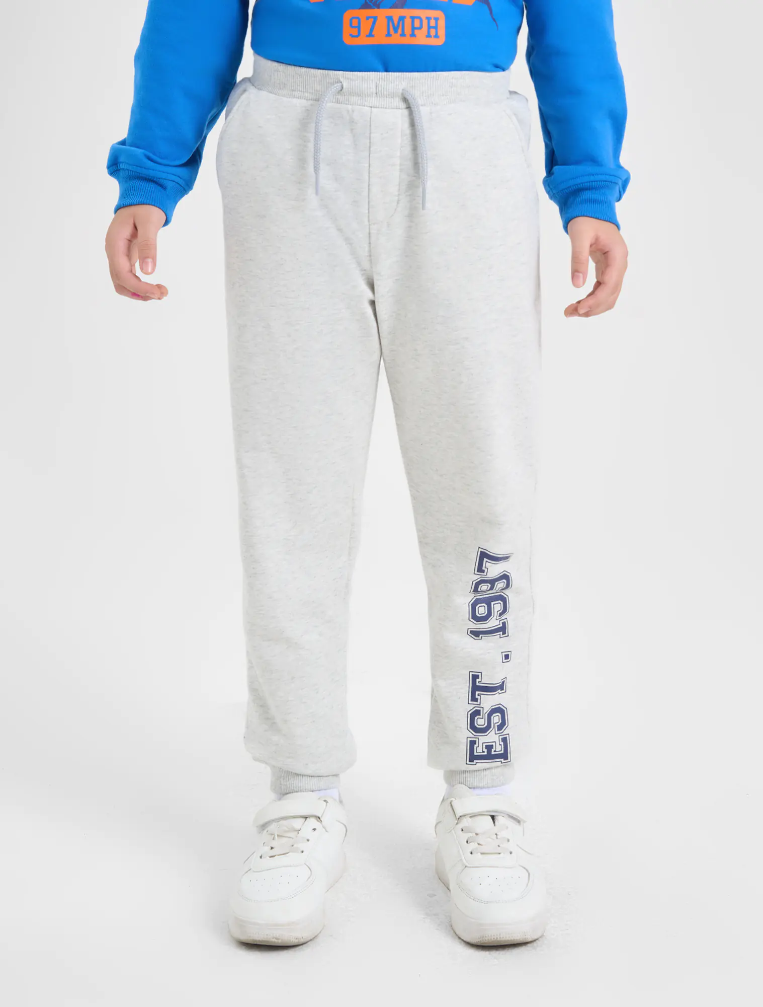 Quần dài bé trai có hình in, phom dáng cơ bản, chất liệu vảy cá, hình in sport khỏe khoắn cho các bé.