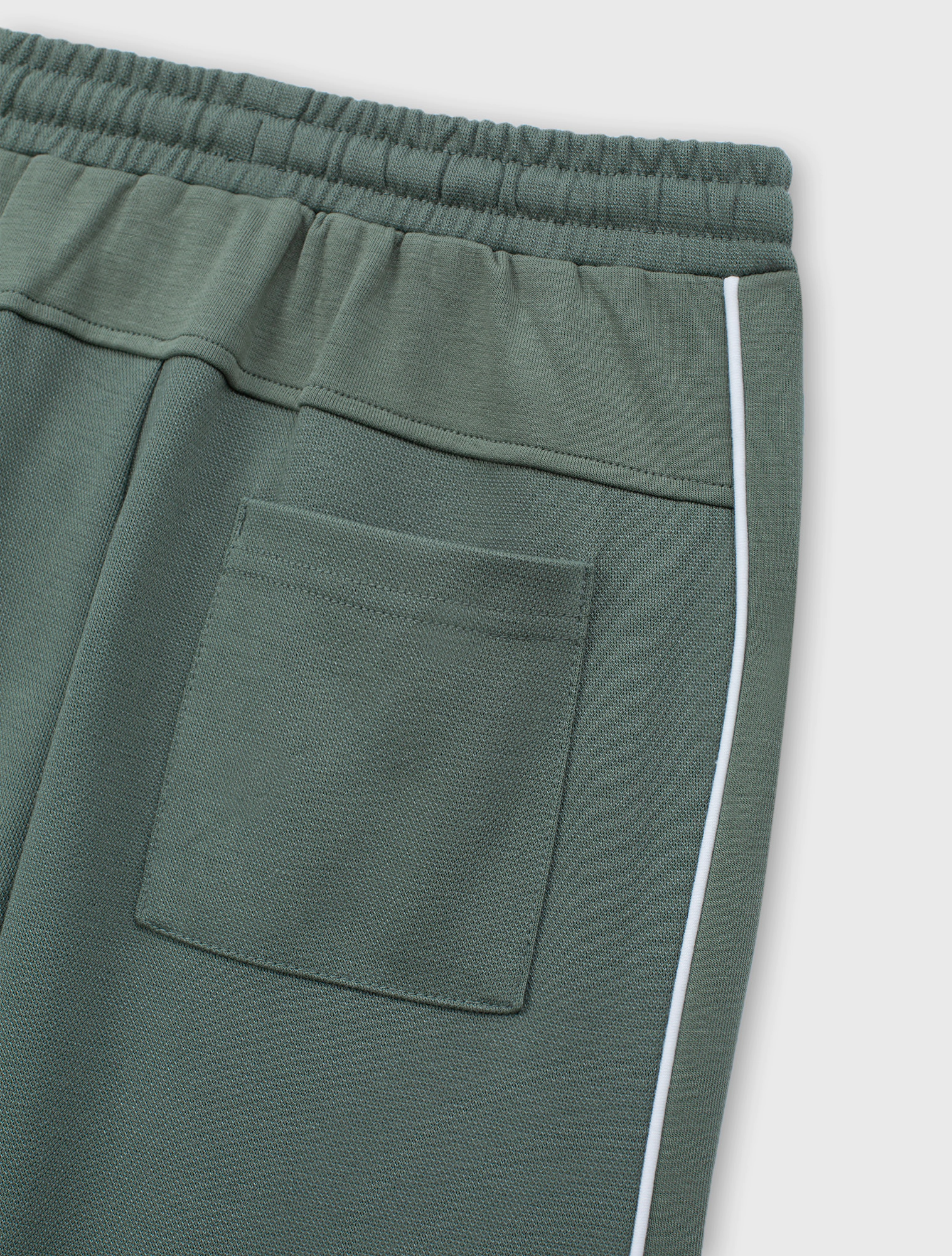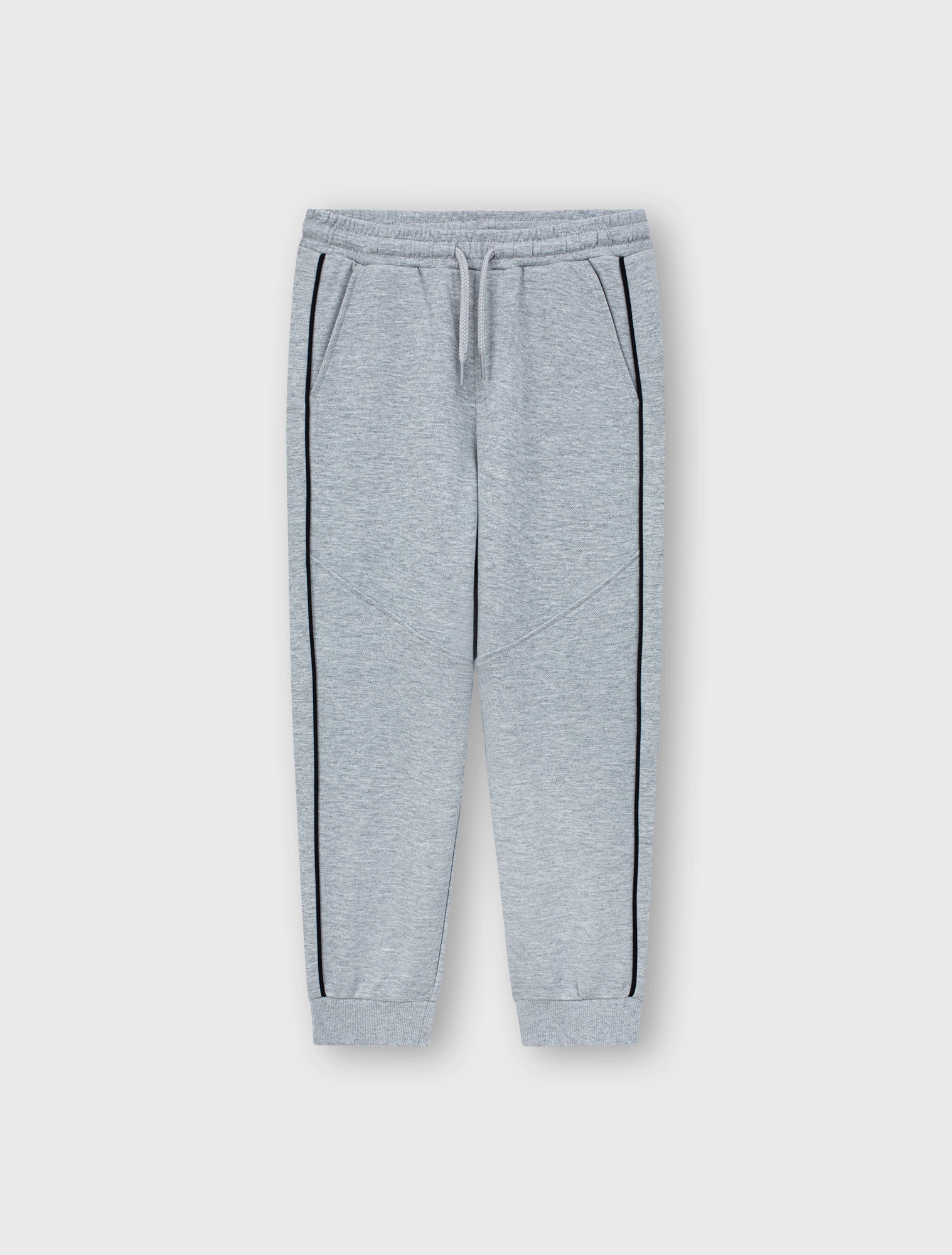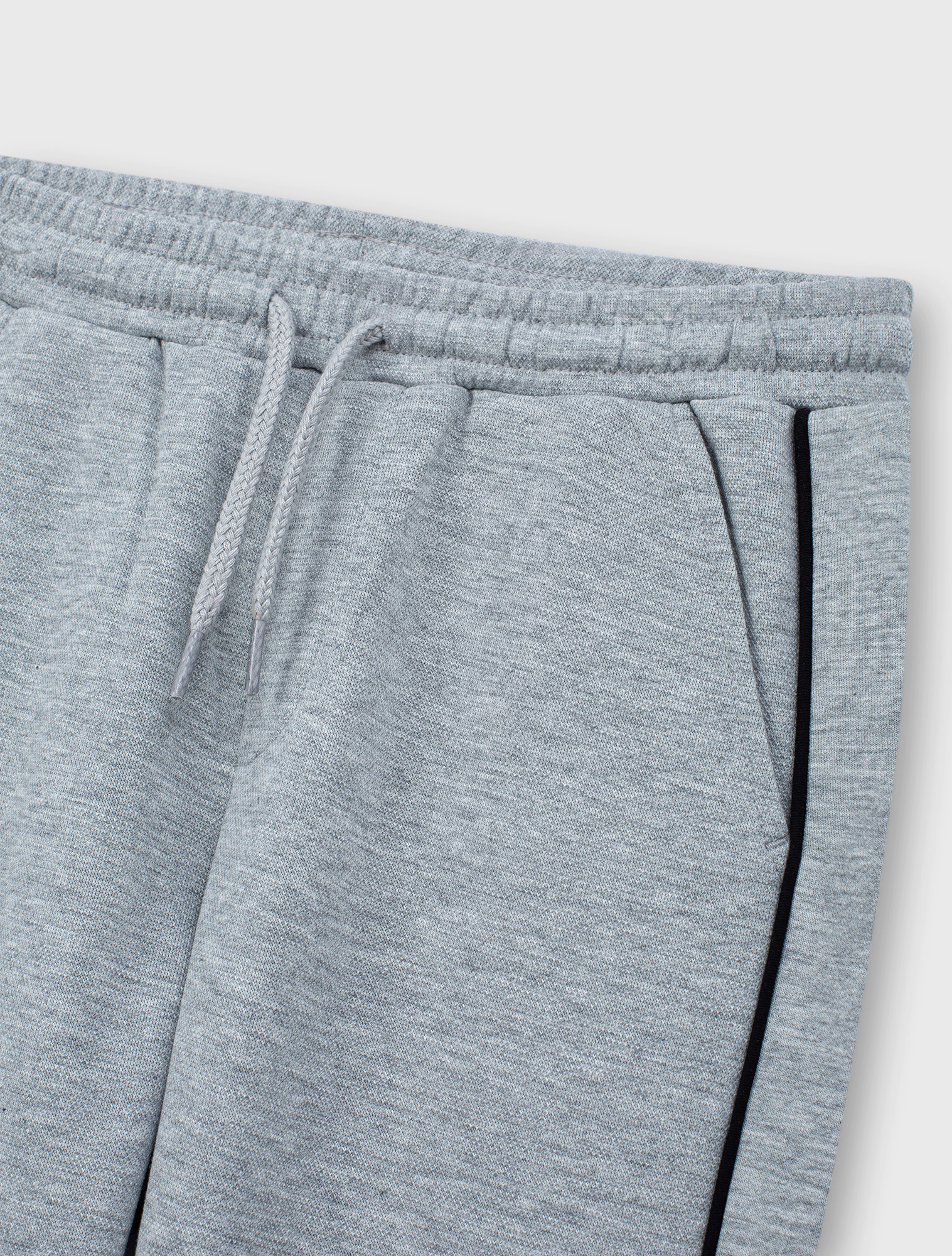 Quần nỉ bé trai chất liệu interlock, can phối gối tạo sự khỏe khoắn cho người mặc.