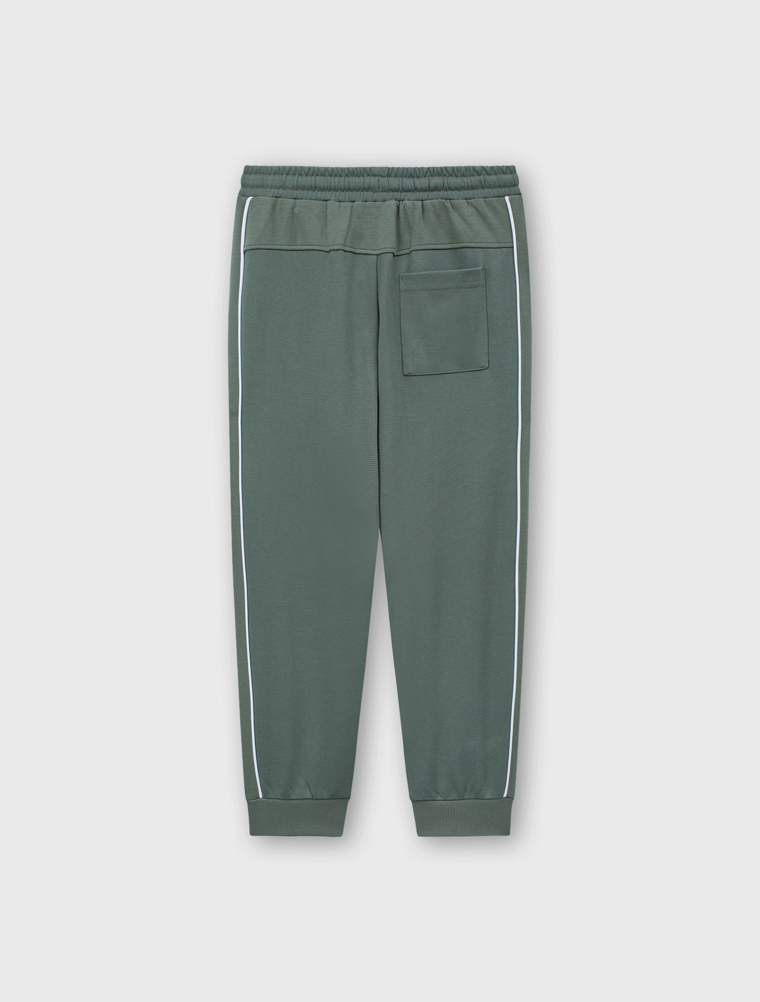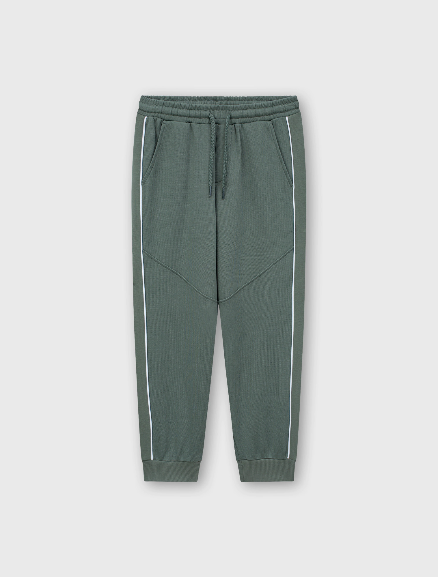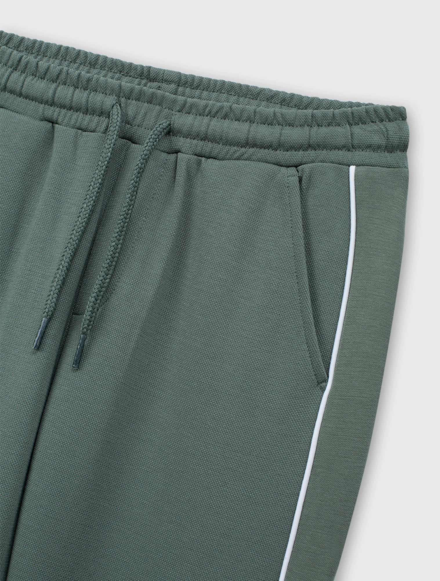 Quần nỉ bé trai chất liệu interlock, can phối gối tạo sự khỏe khoắn cho người mặc.