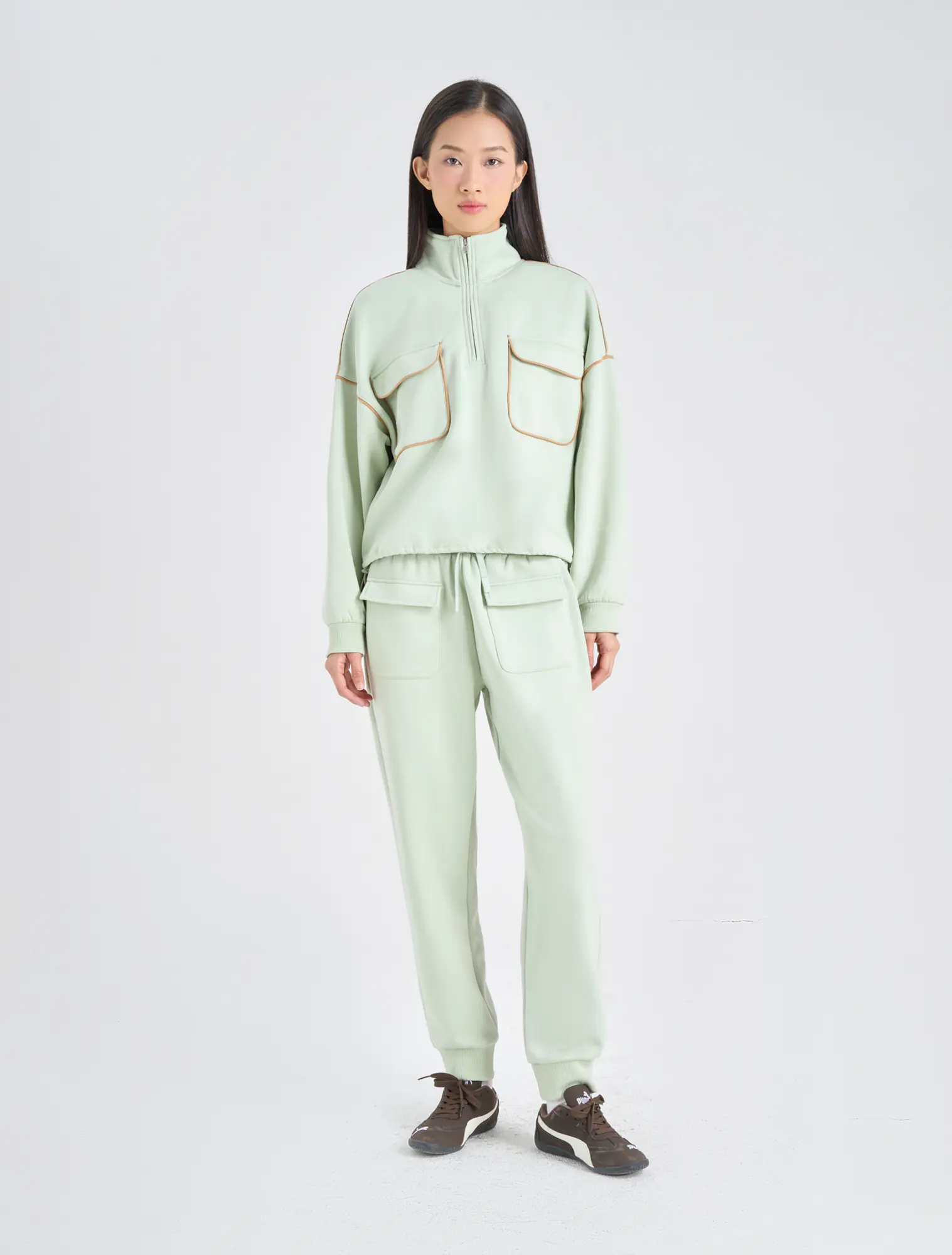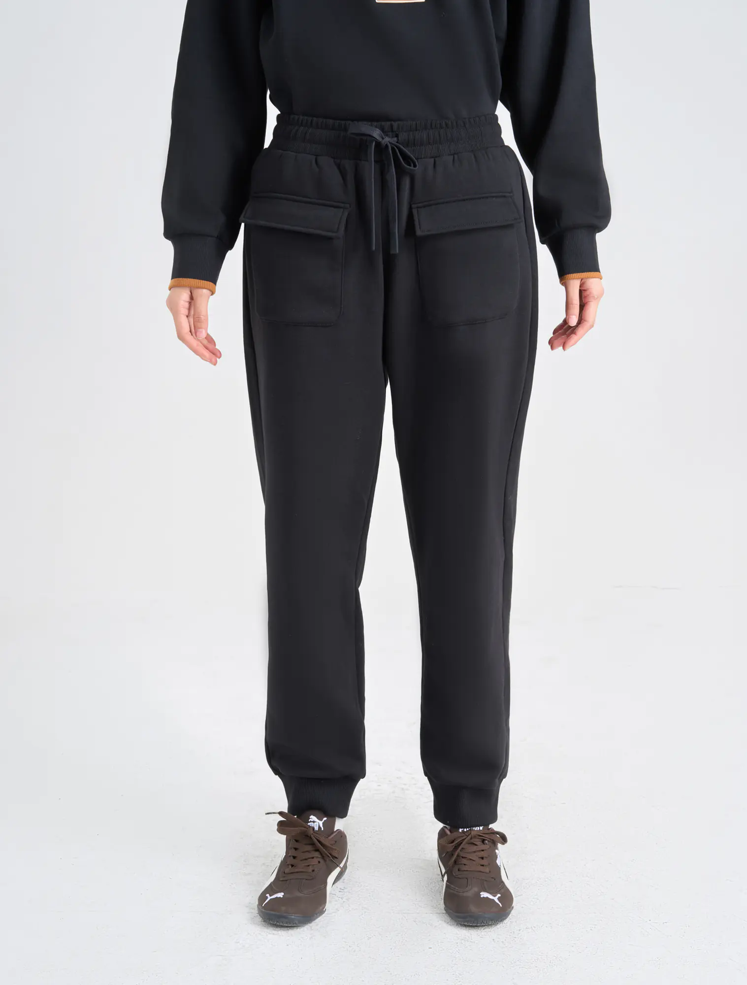 Quần nỉ nữ túi hộp dáng jogger. Chất liệu cào bông tạo cho sản phẩm giữ nhiệt tốt và giữ dáng luôn đẹp.