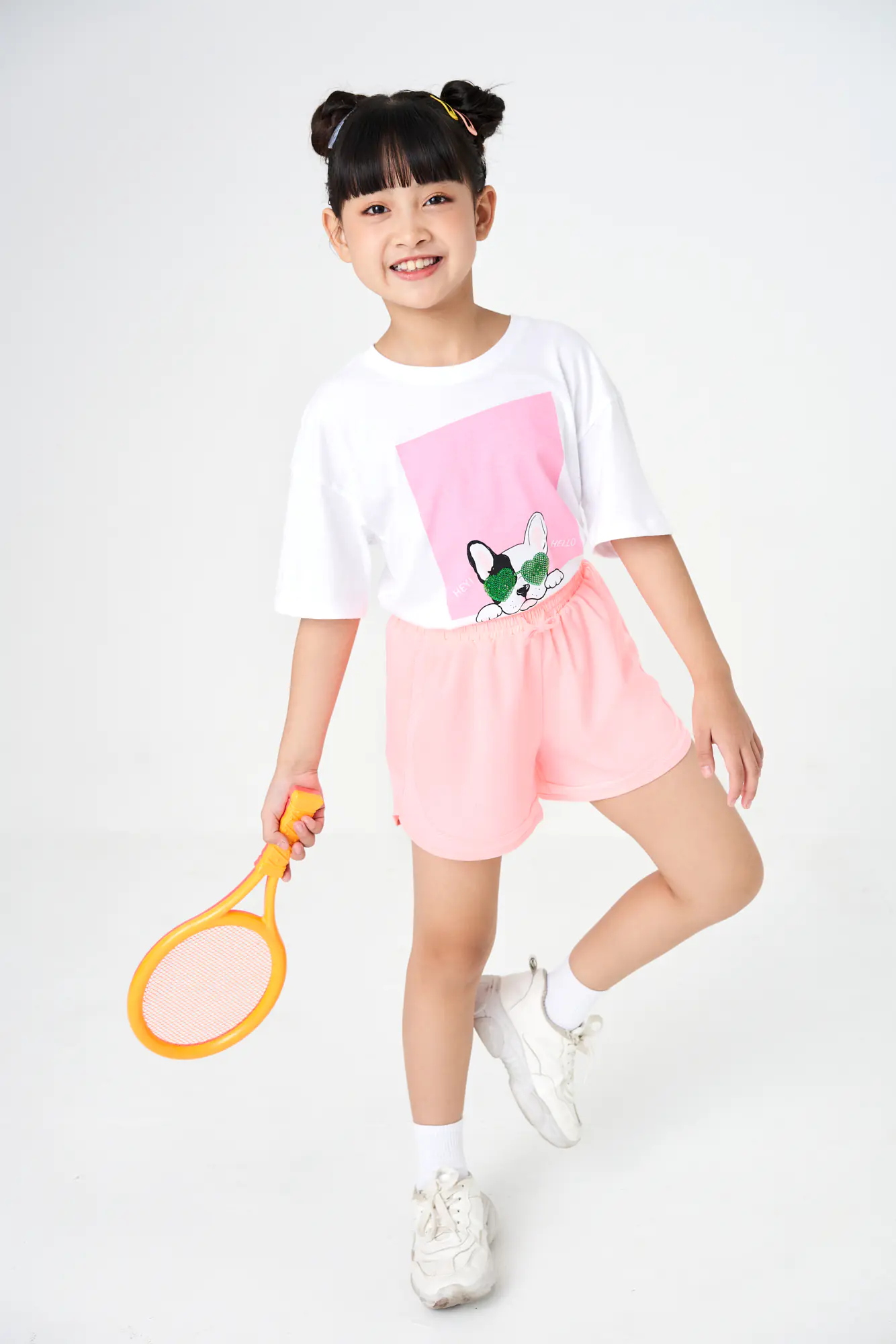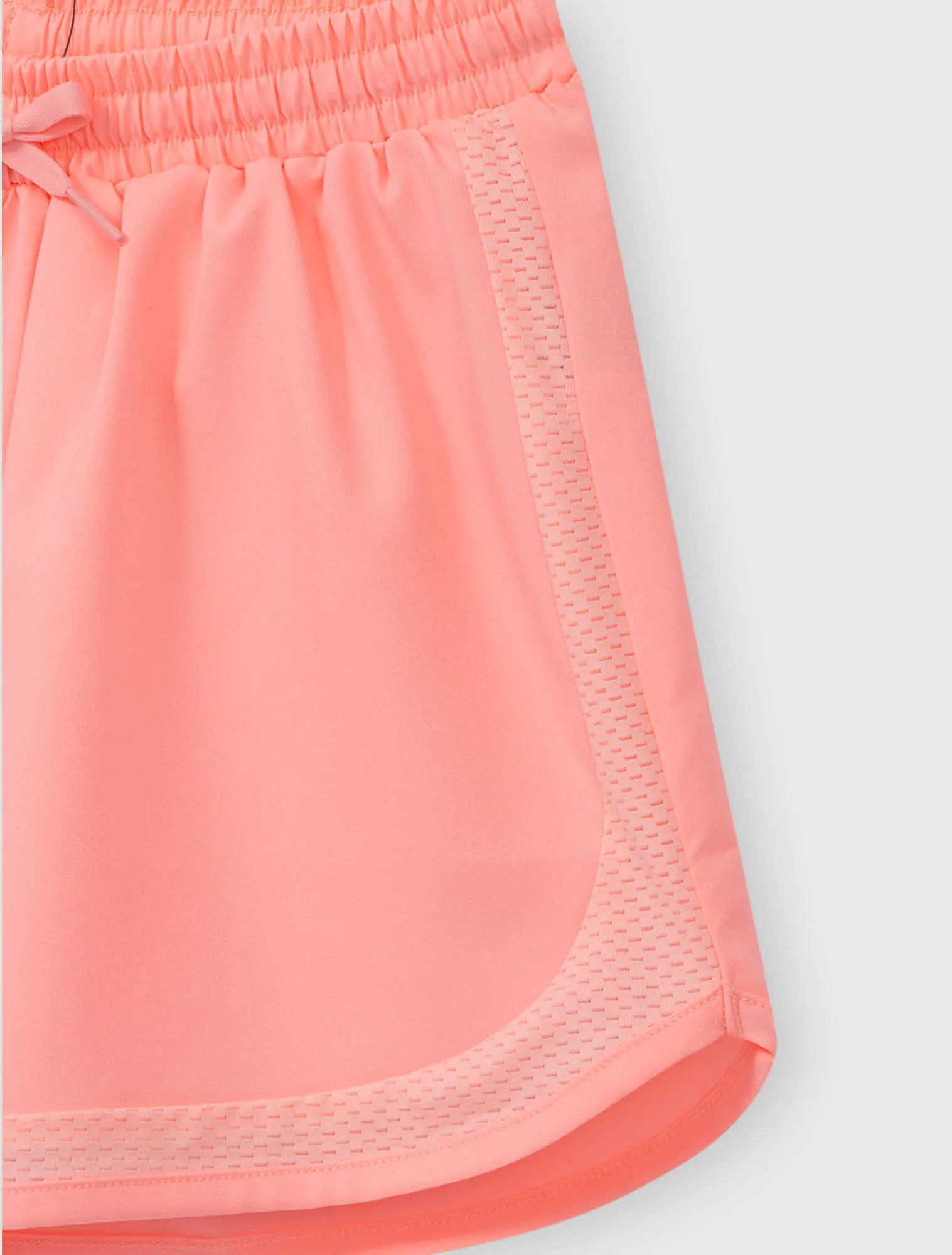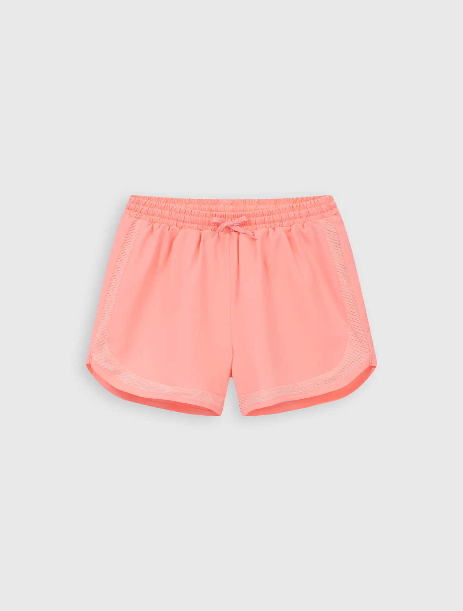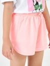 Quần soóc chất liệu polyester, cạp chun luồn dây dệt.