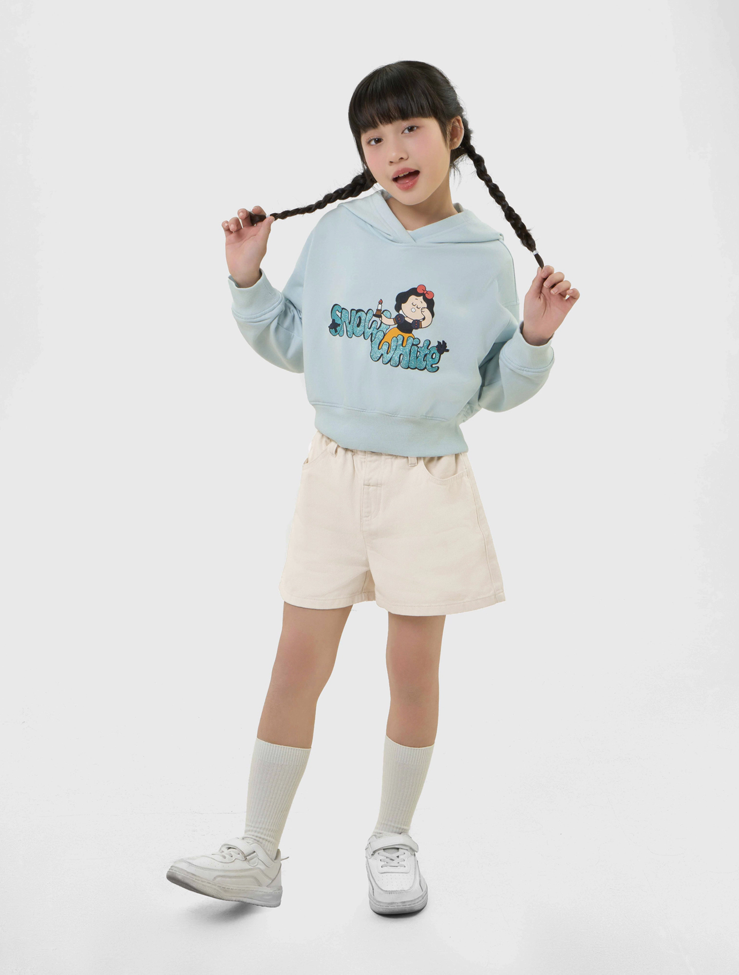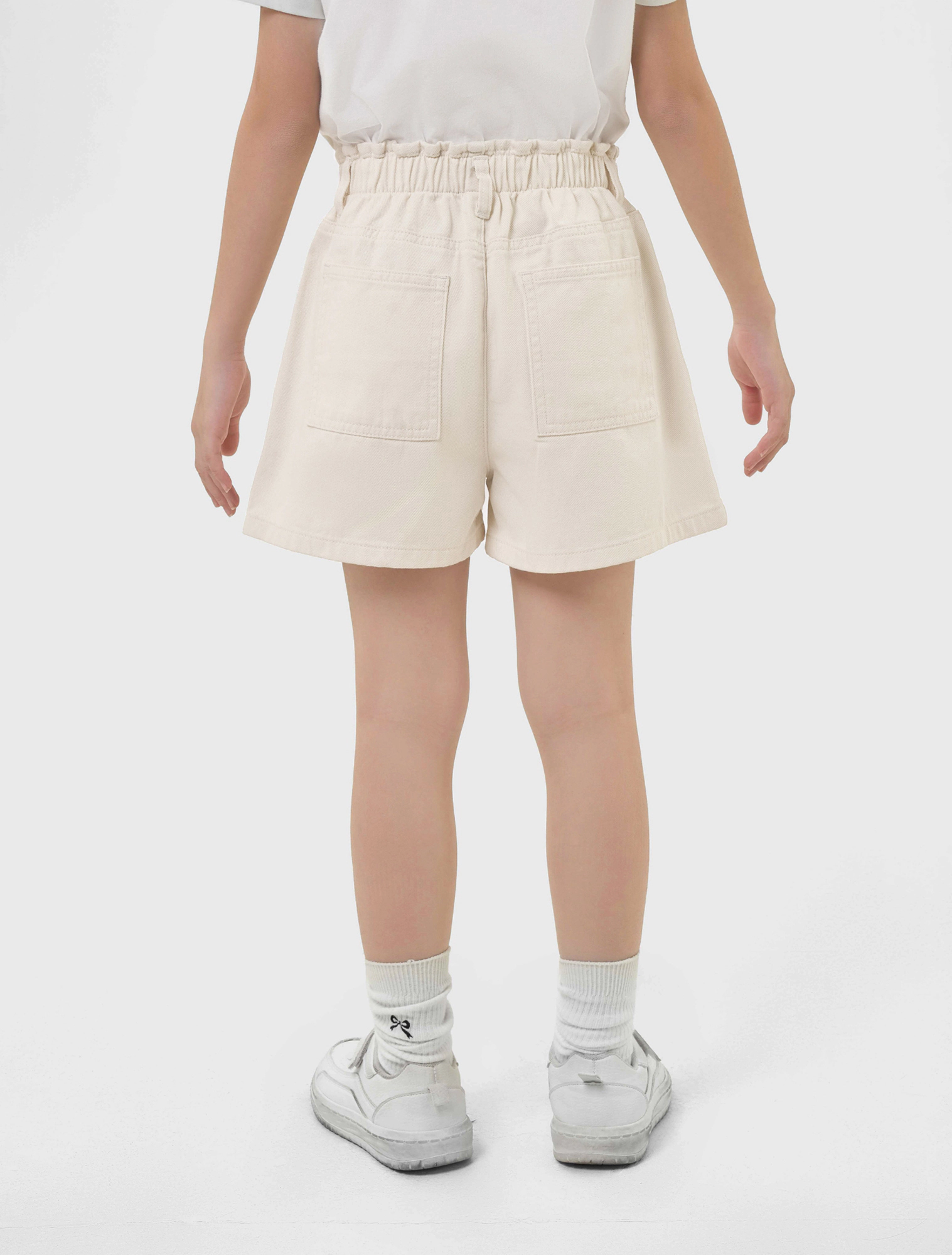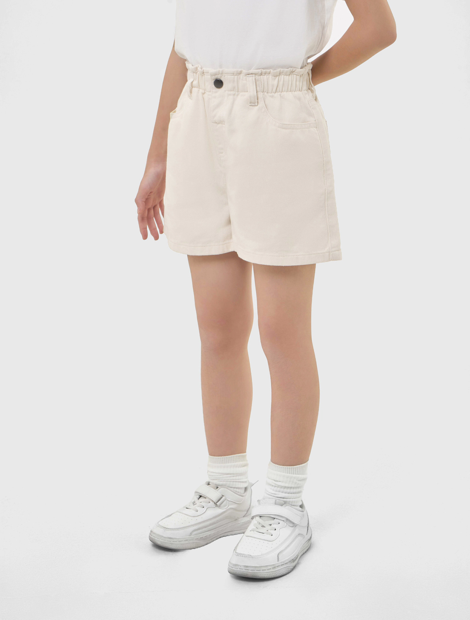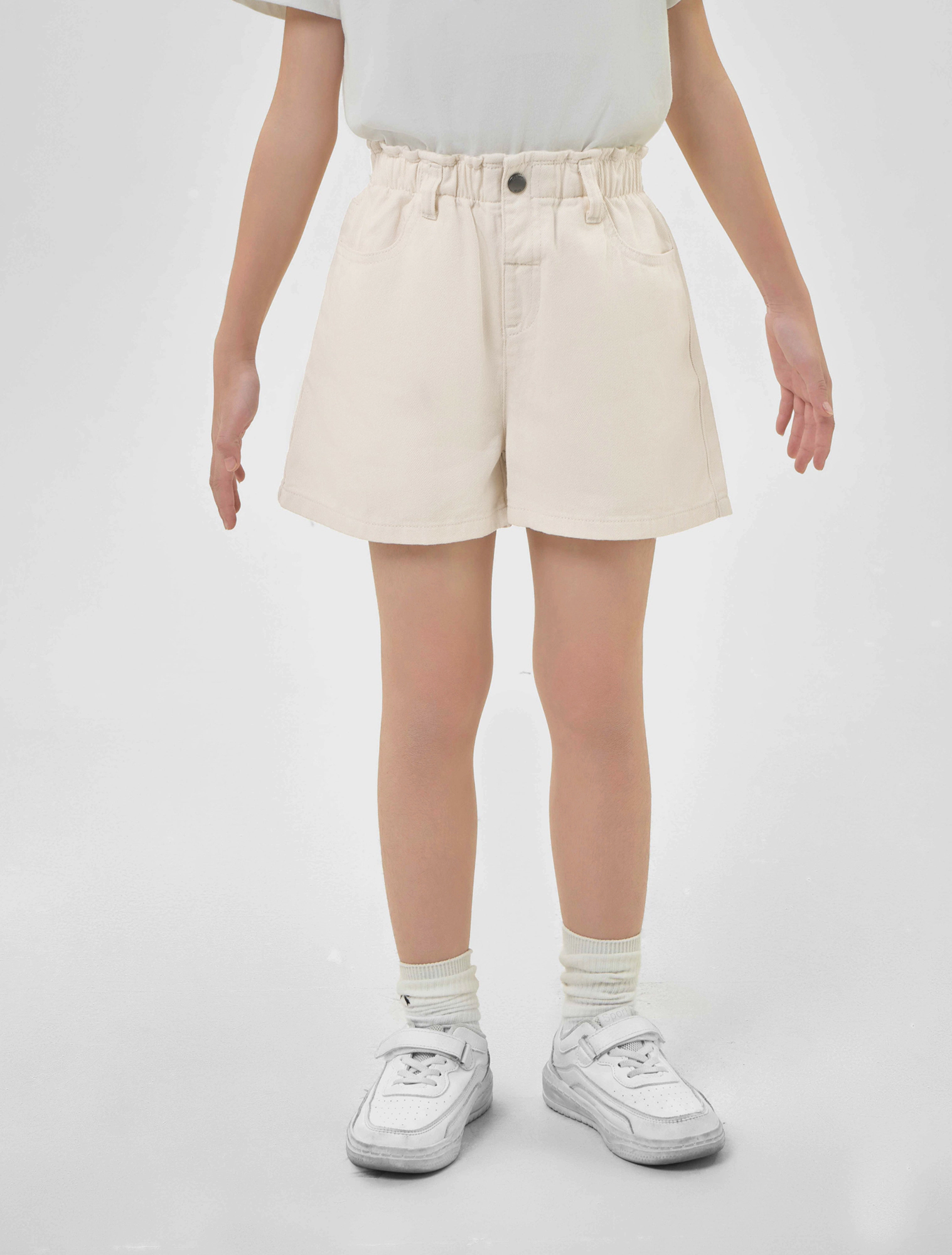 Quần soóc bé gái dáng suông, cạp chun với thiết kế đơn giản, dễ phối đồ hằng ngày.