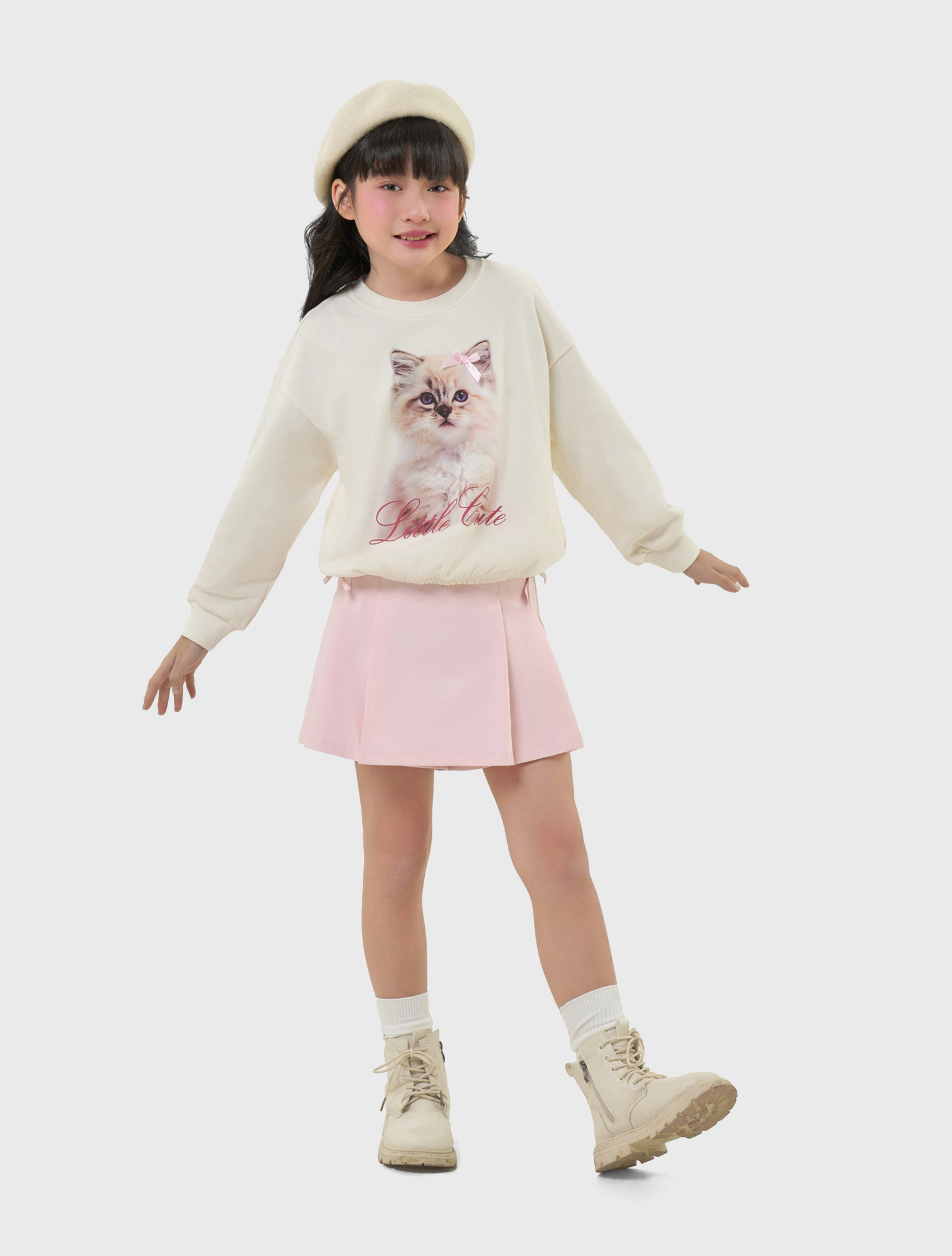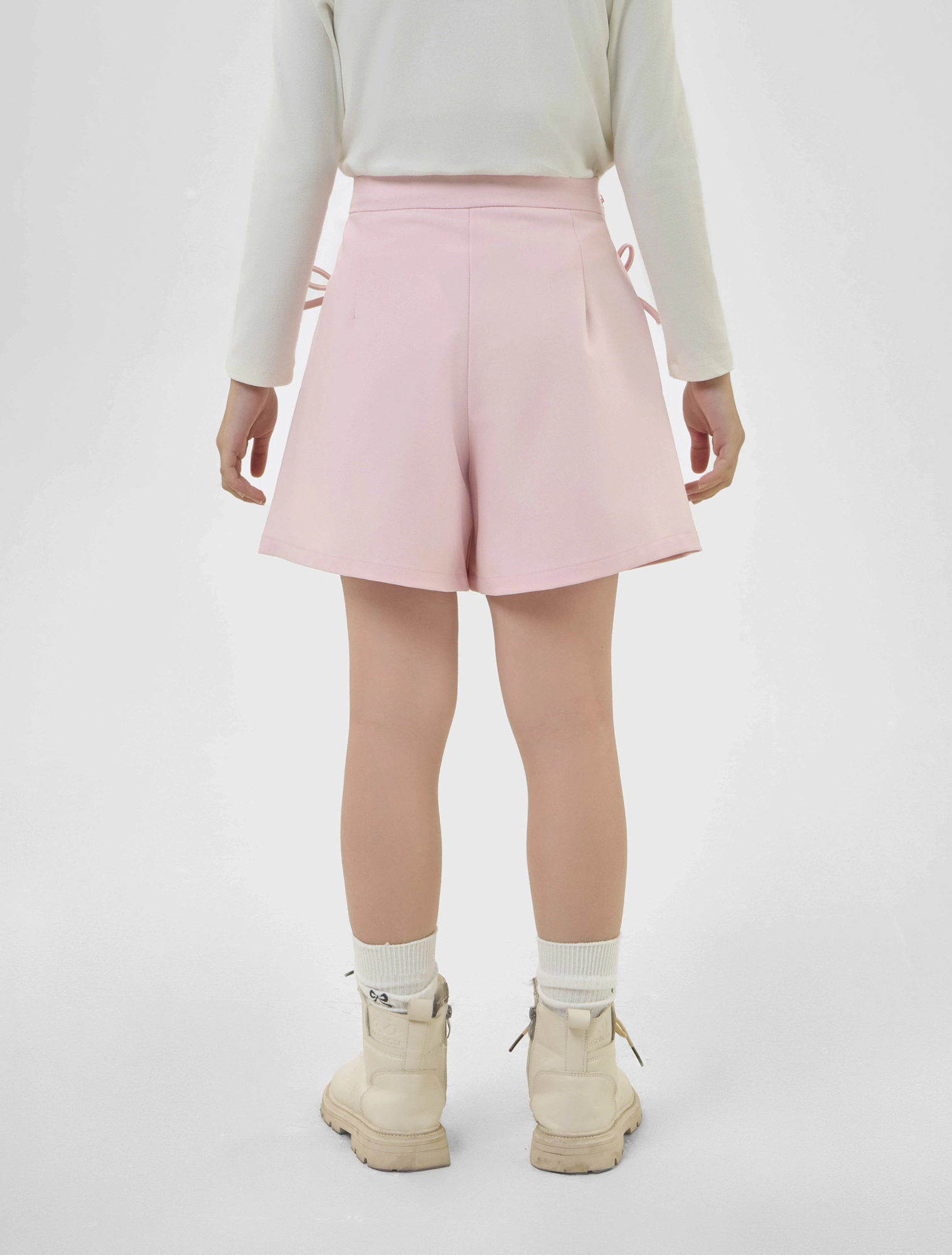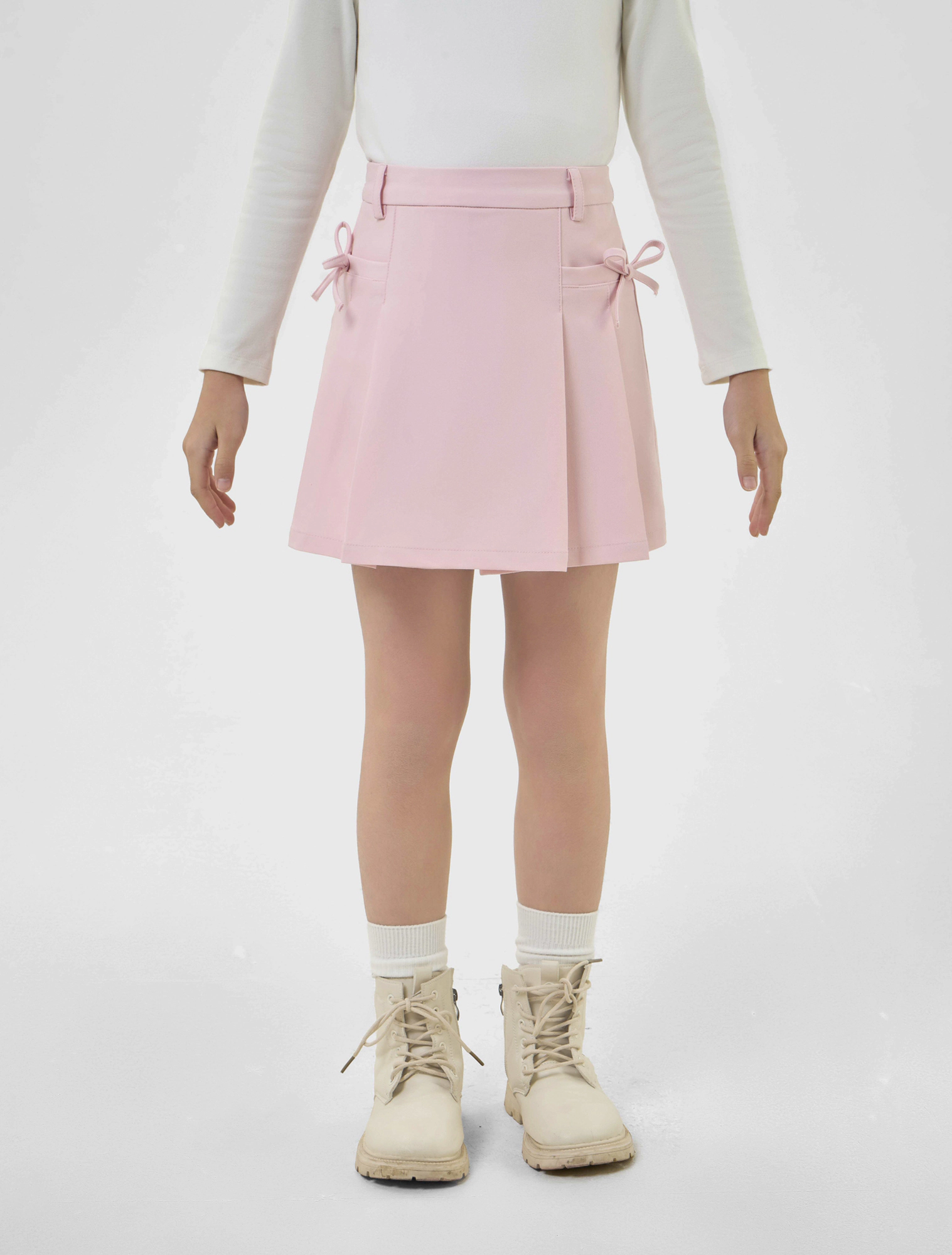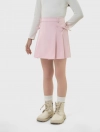 Quần giả váy bé gái. Chất liệu mềm mại, mịn mát, kiểu dáng xếp ly và đính nơ tạo nên một sản phẩm dễ dàng kết hợp với nhiều loại trang phục