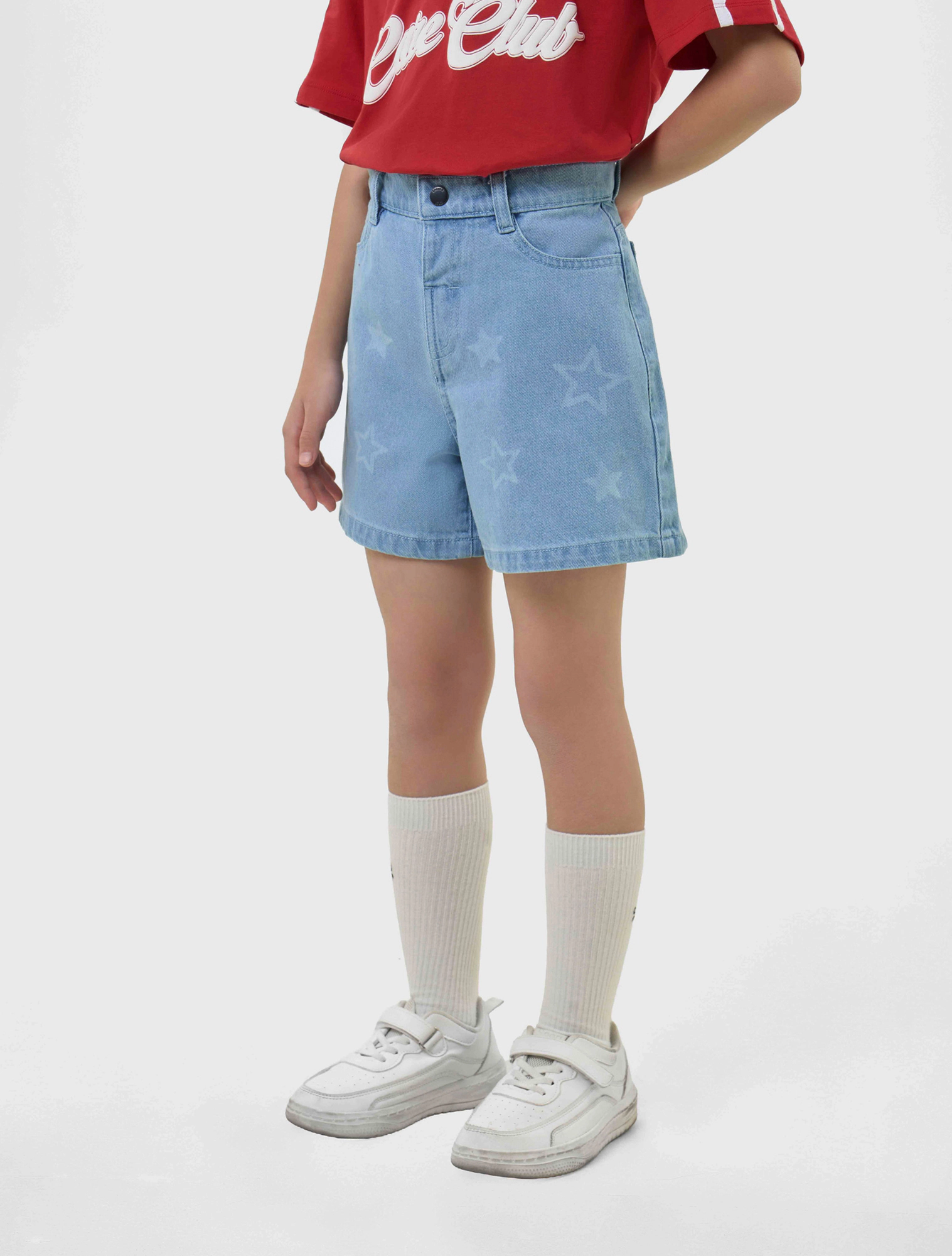 Quần soóc jeans bé gái, có hình in ngôi sao thân trước quần, dễ dàng kết hợp với các trang phục khác và dễ dàng vận động.
