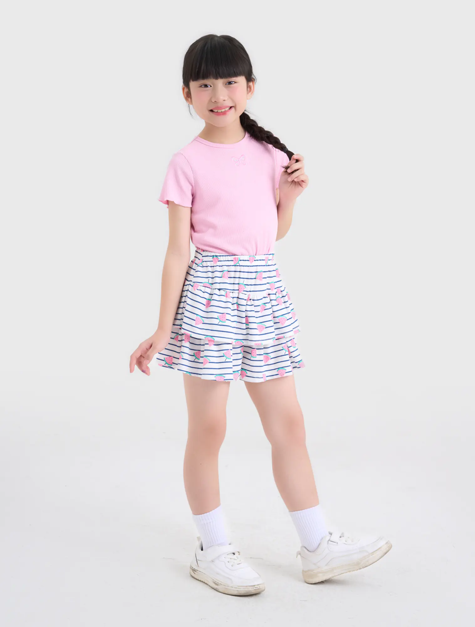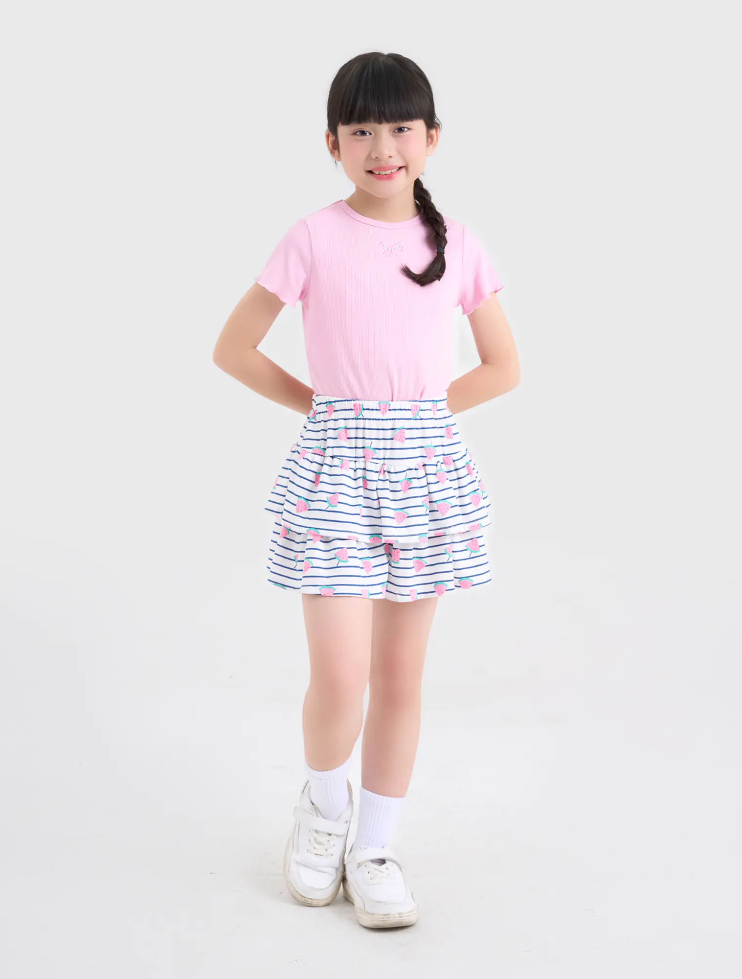 Quần soóc bé gái bèo tầng, nữ tính, dễ kết hợp với các trang phục khác nhau tạo vẻ nữ tính và năng động.