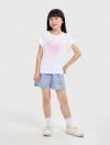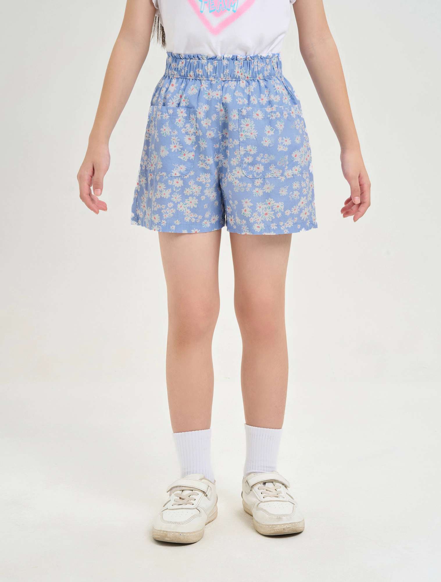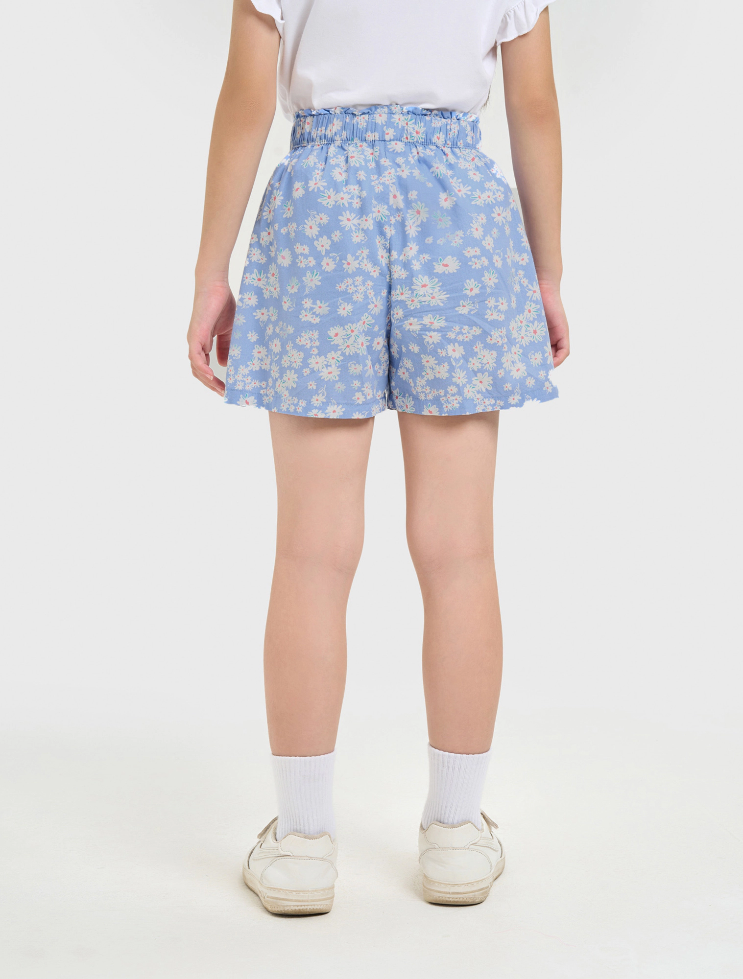 Quần soóc bé gái hoạ tiết, chi tiết cạp bèo nữ tính, dễ kết hợp với các trang phục khác nhau tạo vẻ nữ tính và năng động.