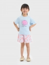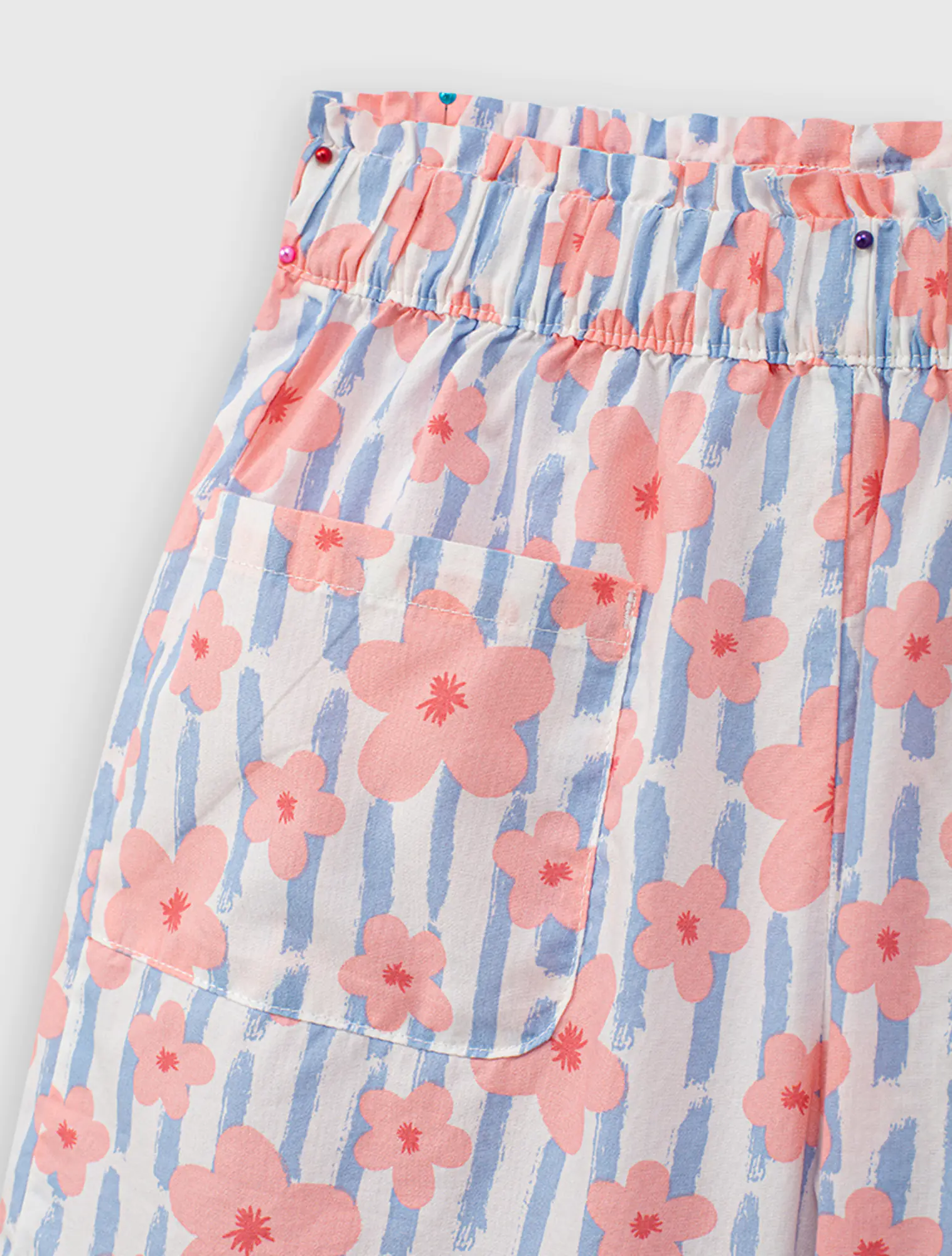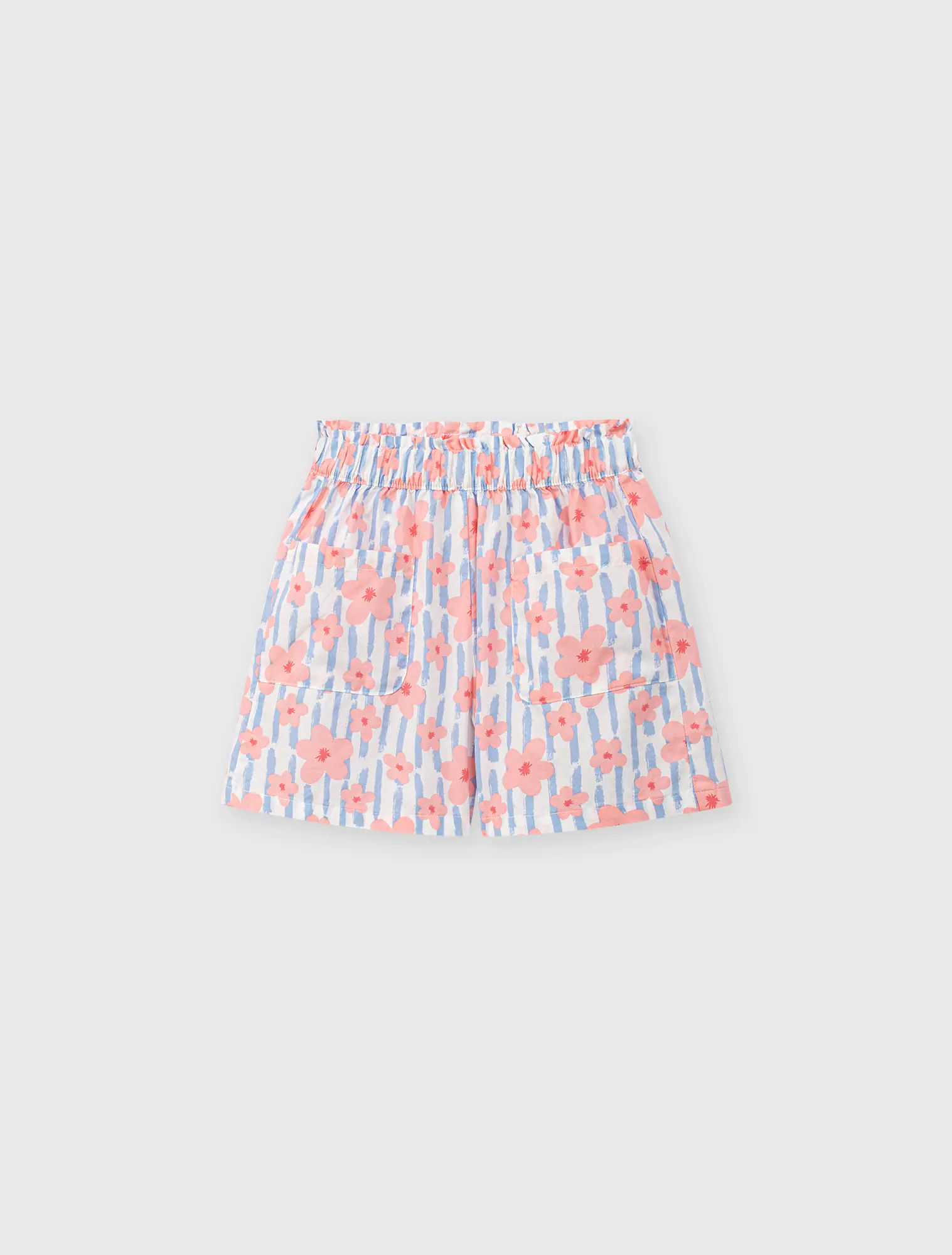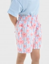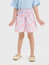 Quần soóc bé gái hoạ tiết, chi tiết cạp bèo nữ tính, dễ kết hợp với các trang phục khác nhau tạo vẻ nữ tính và năng động.
