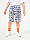 Quần soóc chất liệu cotton pha, cạp chun luồn dây dệt.