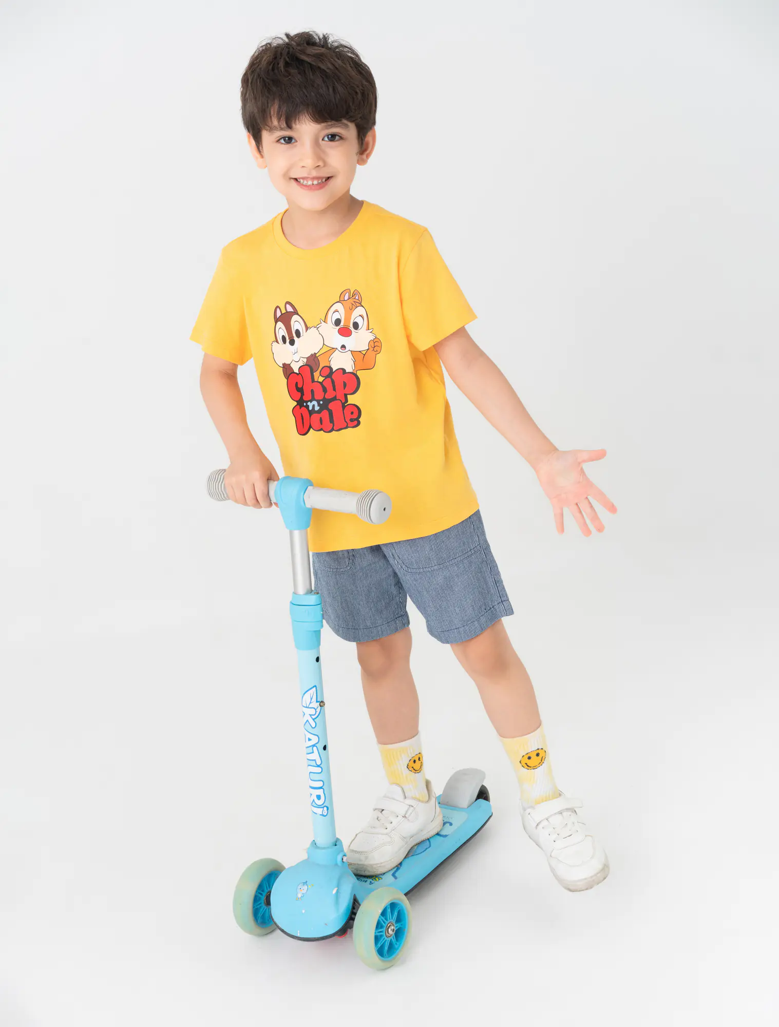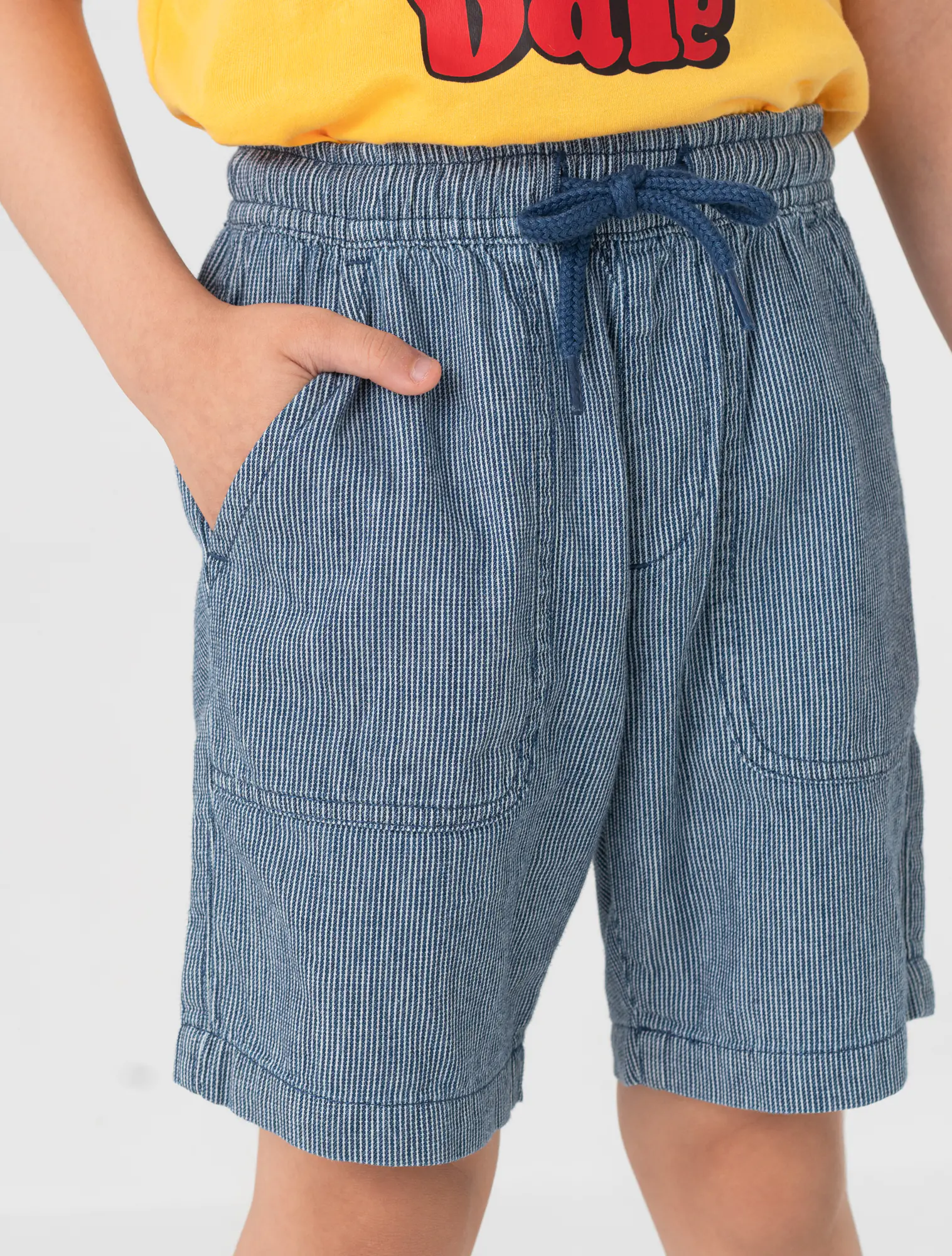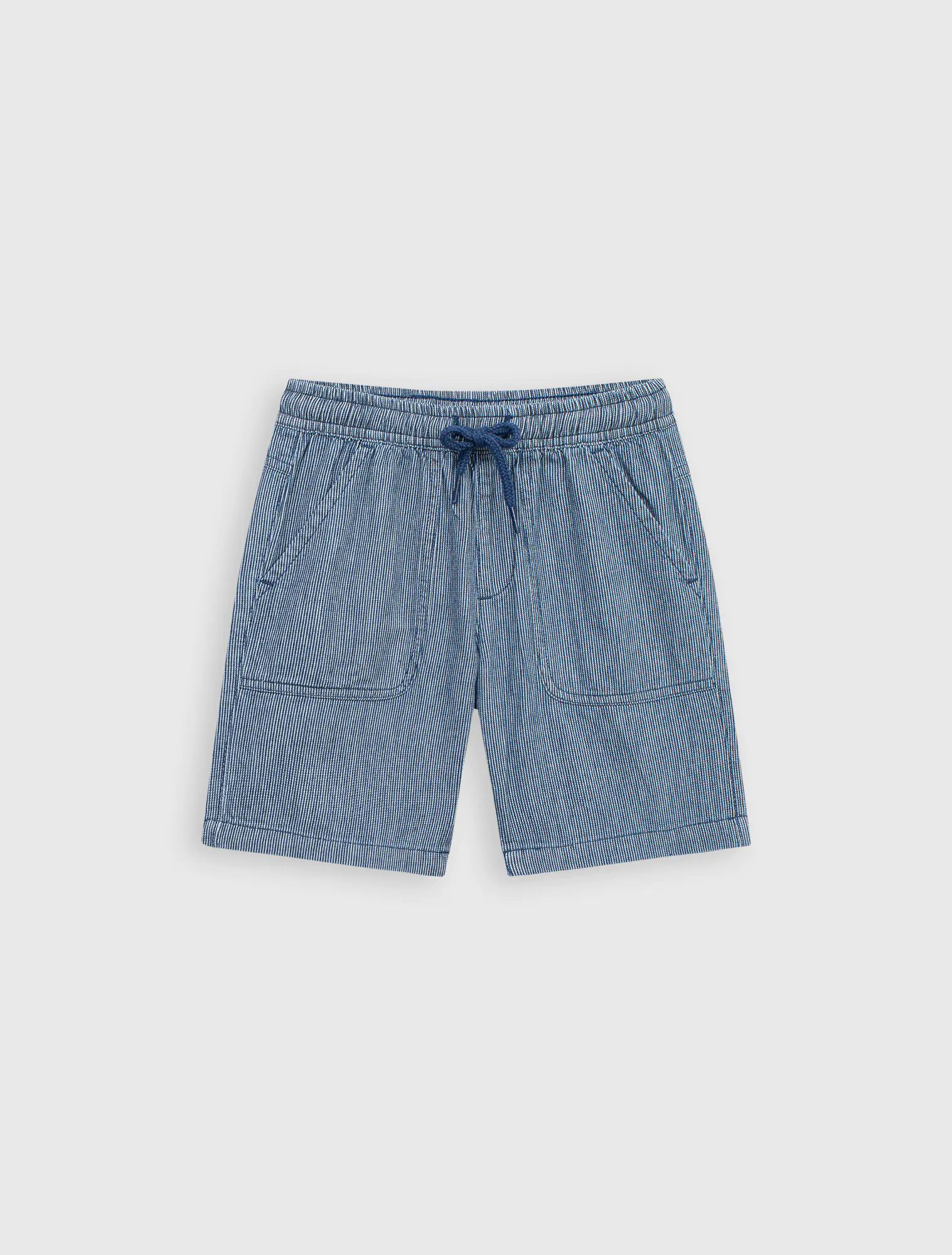 Quần soóc chất liệu 100% cotton, cạp chun luồn dây dệt, túi 2 bên.