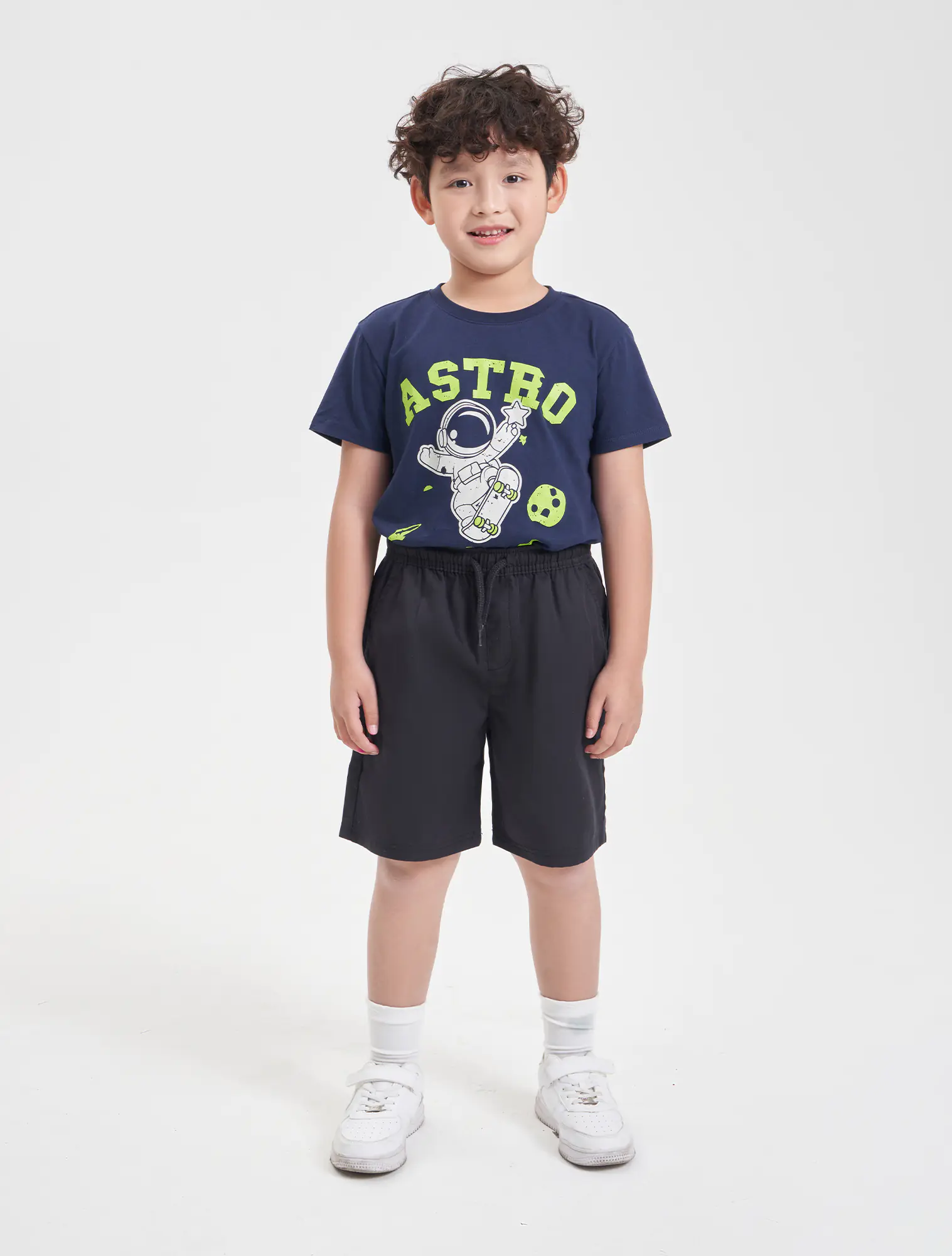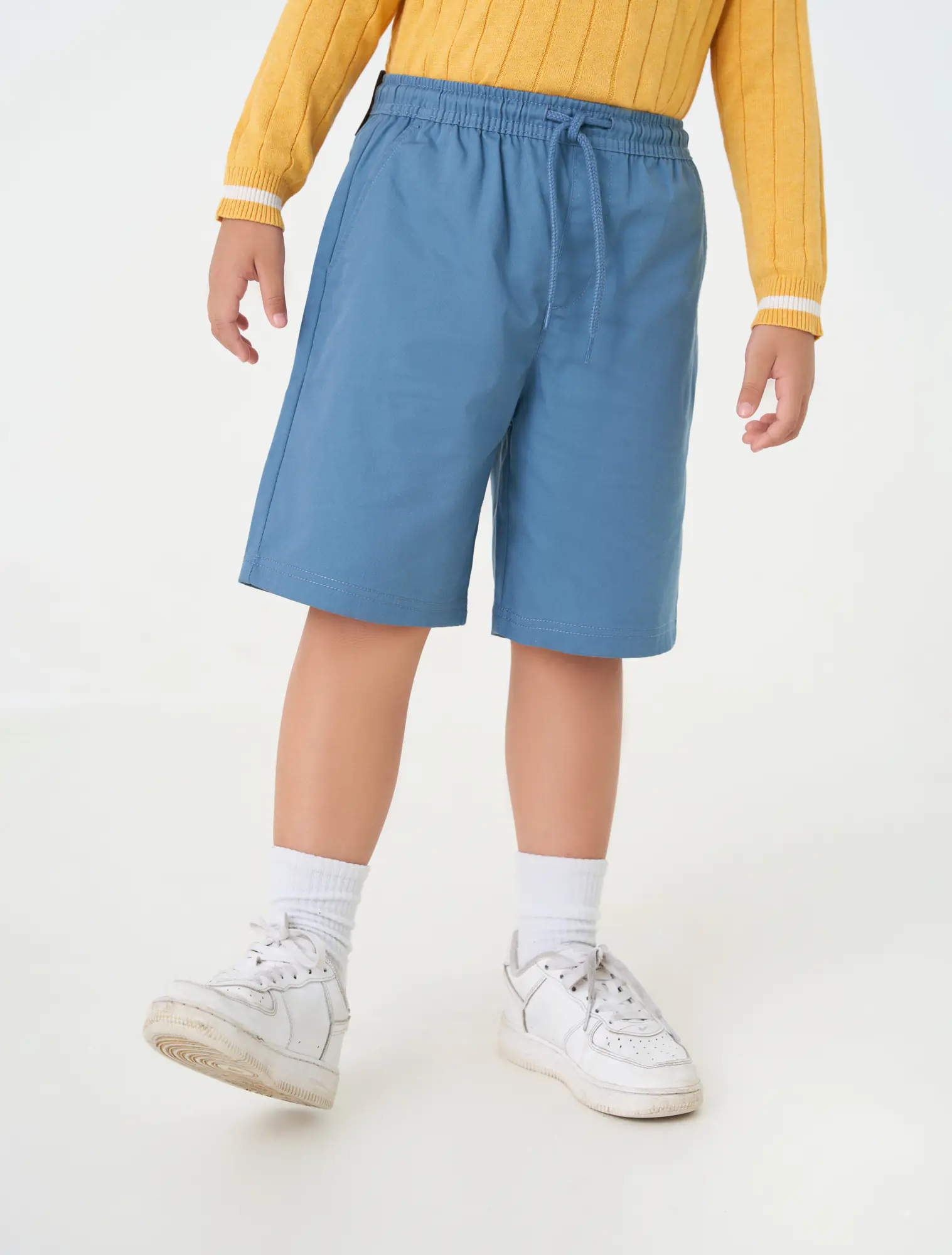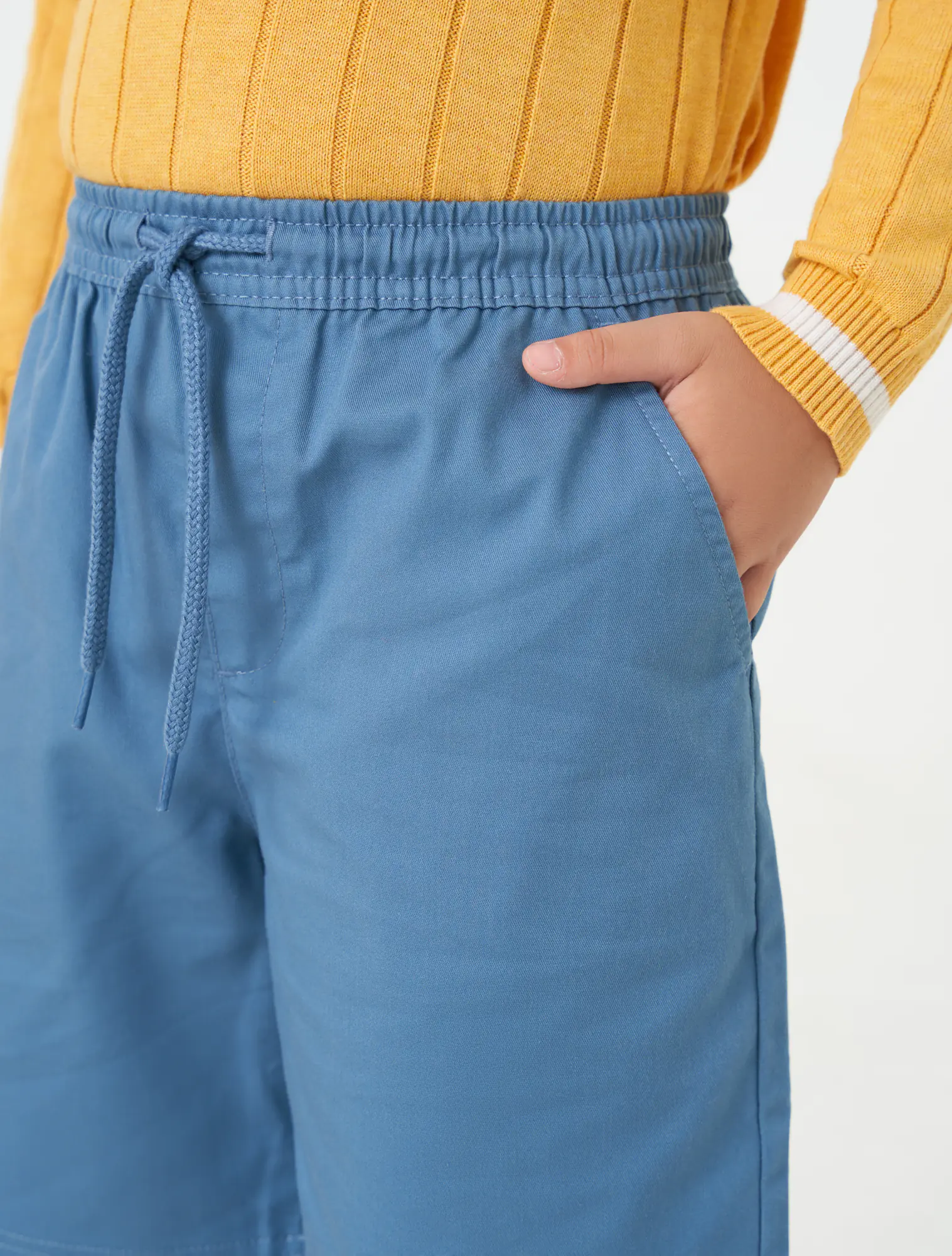 Quần soóc khaki bé trai kiểu dáng đơn giản, phom dáng regular thoải mái dễ kết hợp và phù hợp với nhiều hoàn cảnh sử dụng. Cạp chun co giãn, có dây dệt.