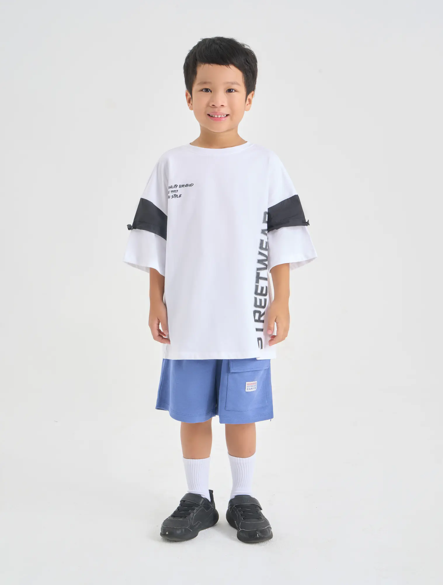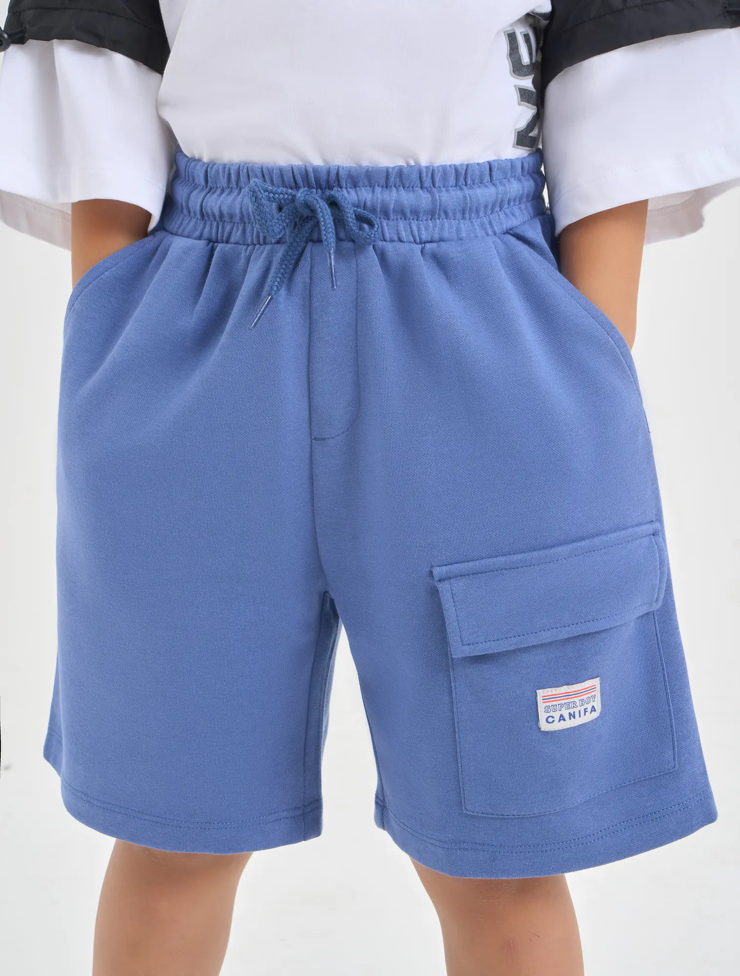 Quần soóc bé trai chất liệu cotton pha, kiểu dáng cơ bản phối túi tạo sự khỏe khoắn cho sản phẩm.